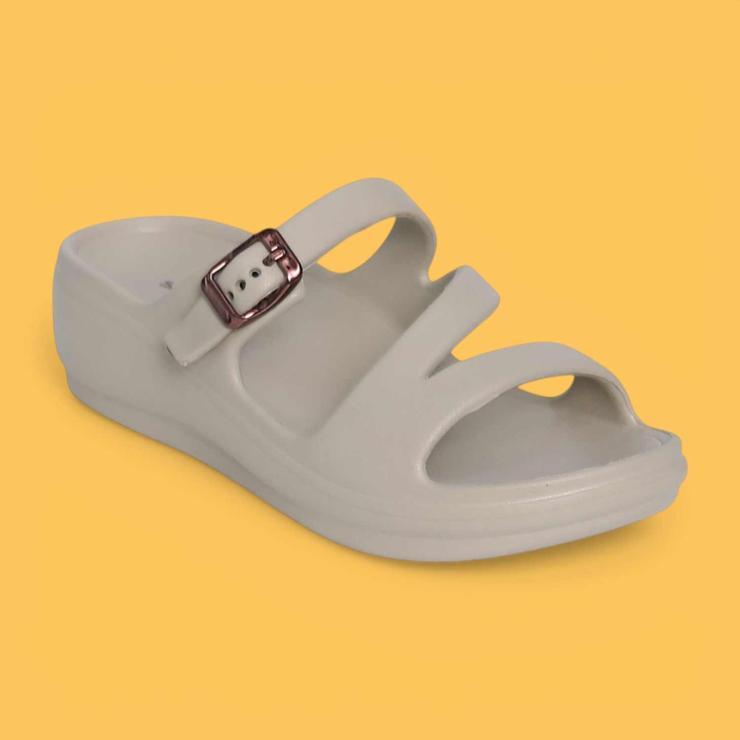 Womens Soft Pink Double Buckle Comfort Slides