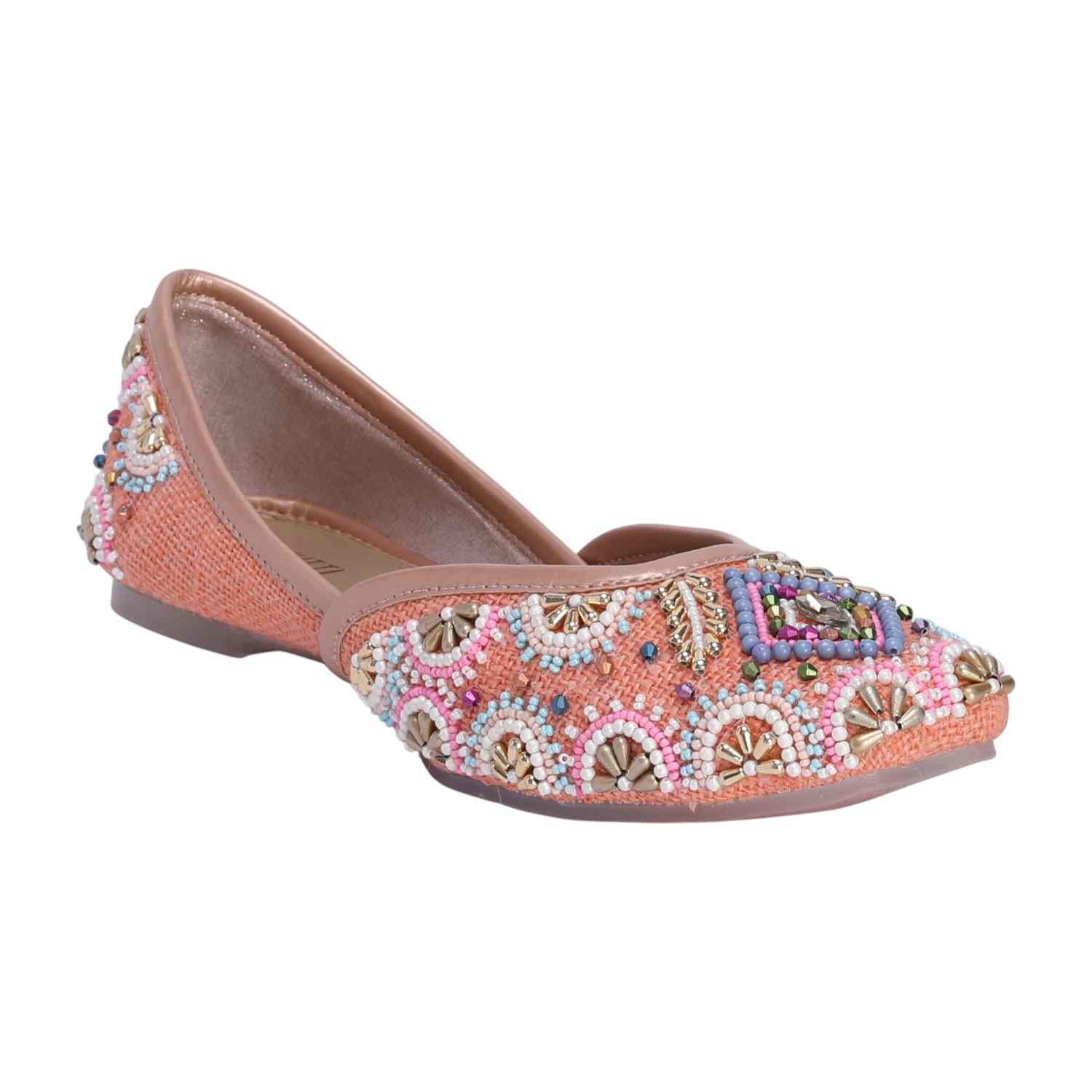 Women’s Peach Embroidered Ethnic Jutti