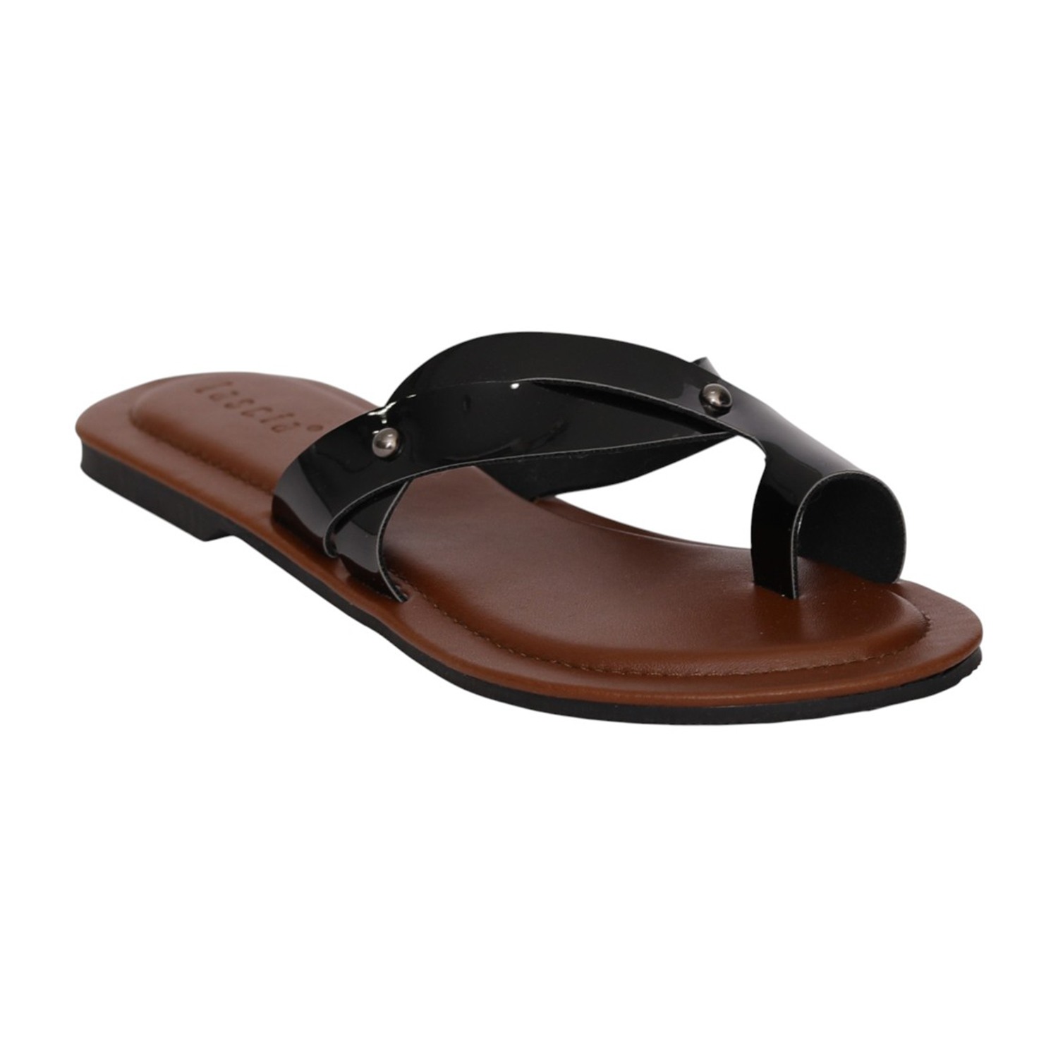 Women Black Toe-Ring Strappy Flat Sandals