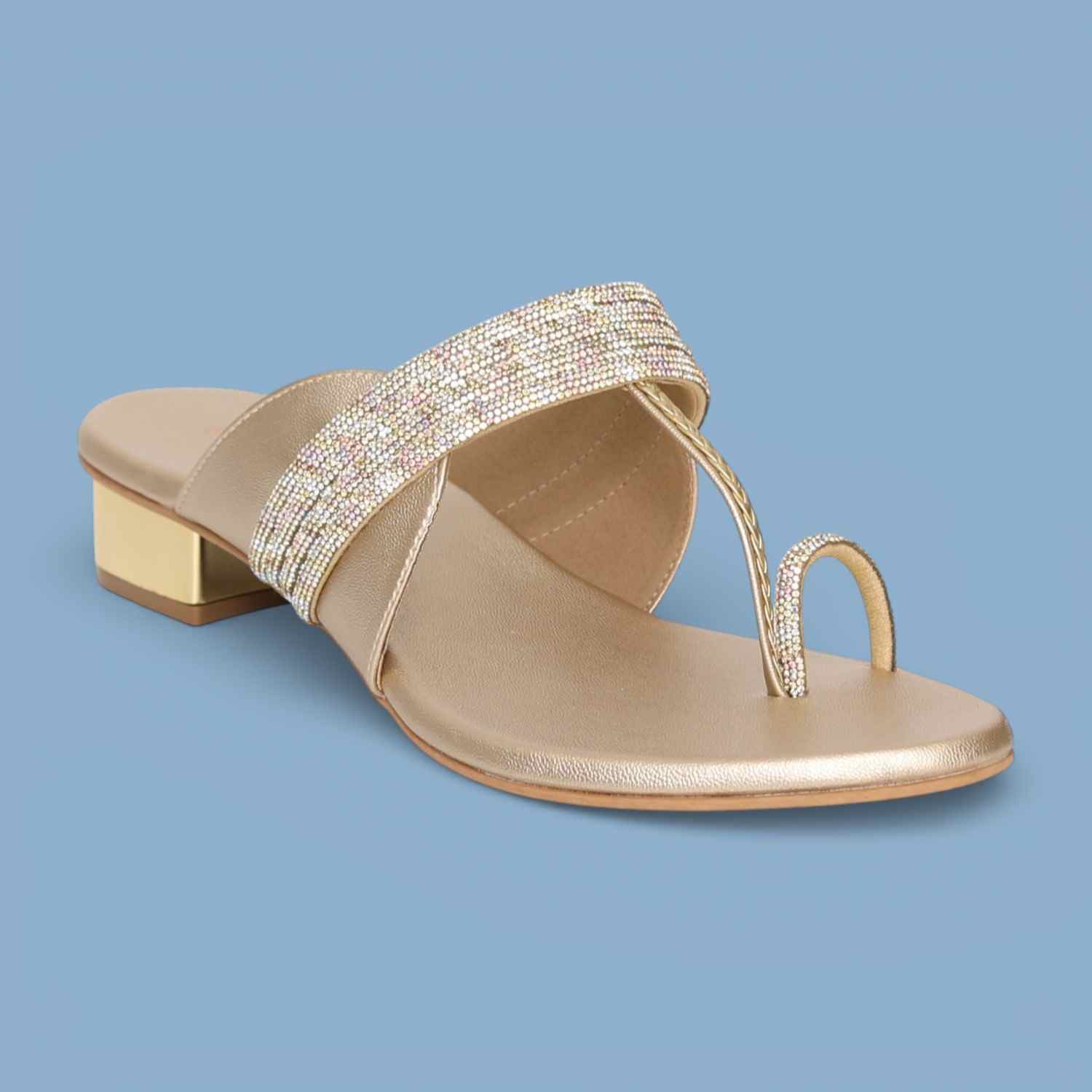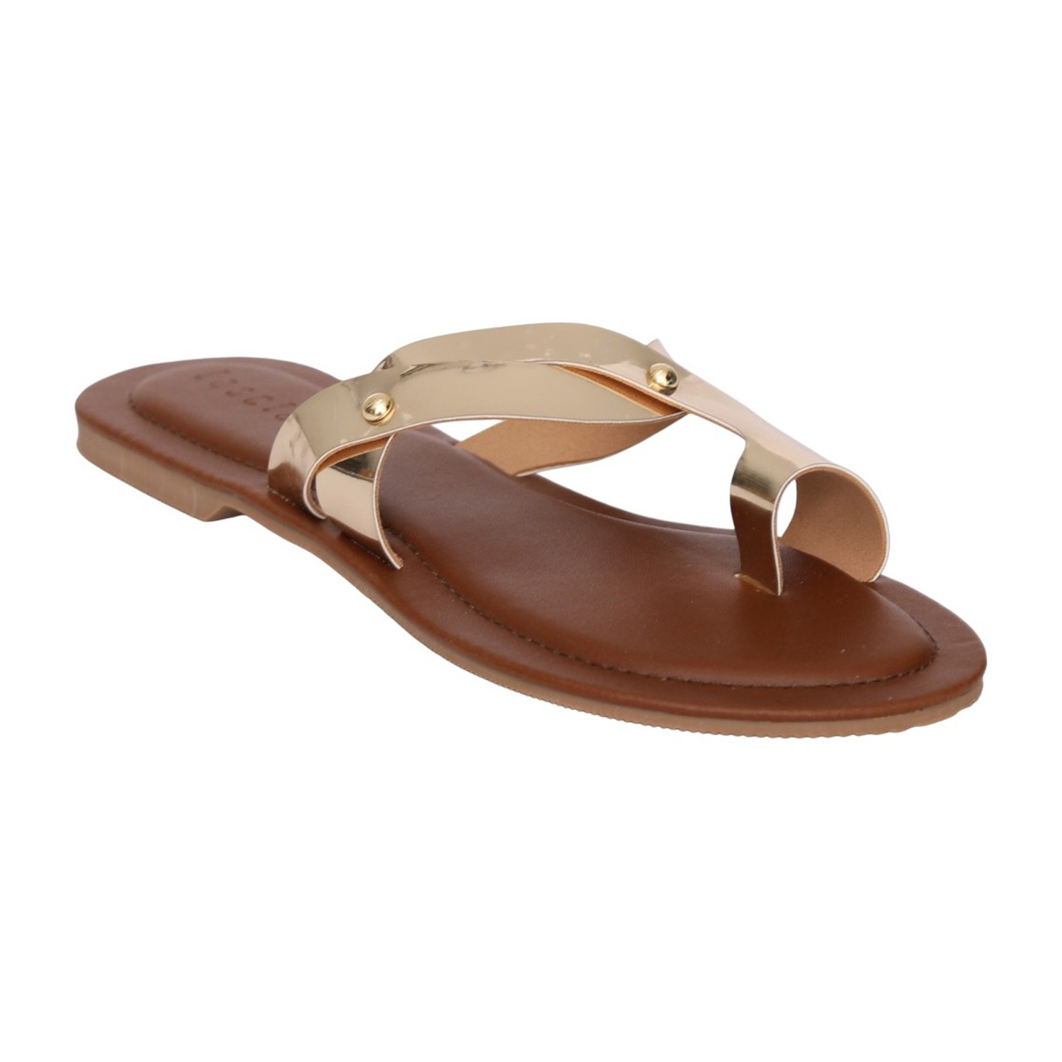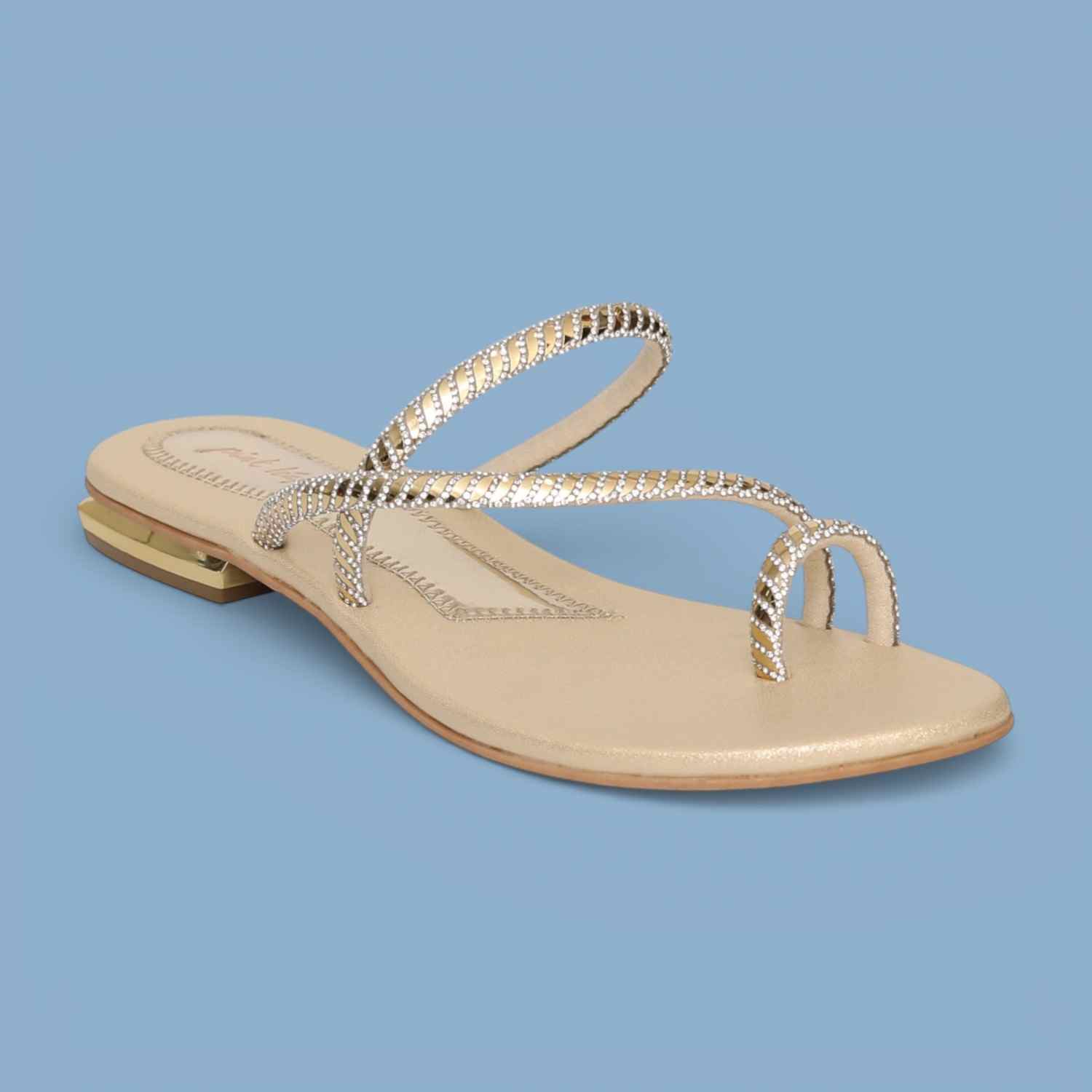 Women Gold Toe-Ring Strappy Flat Sandals