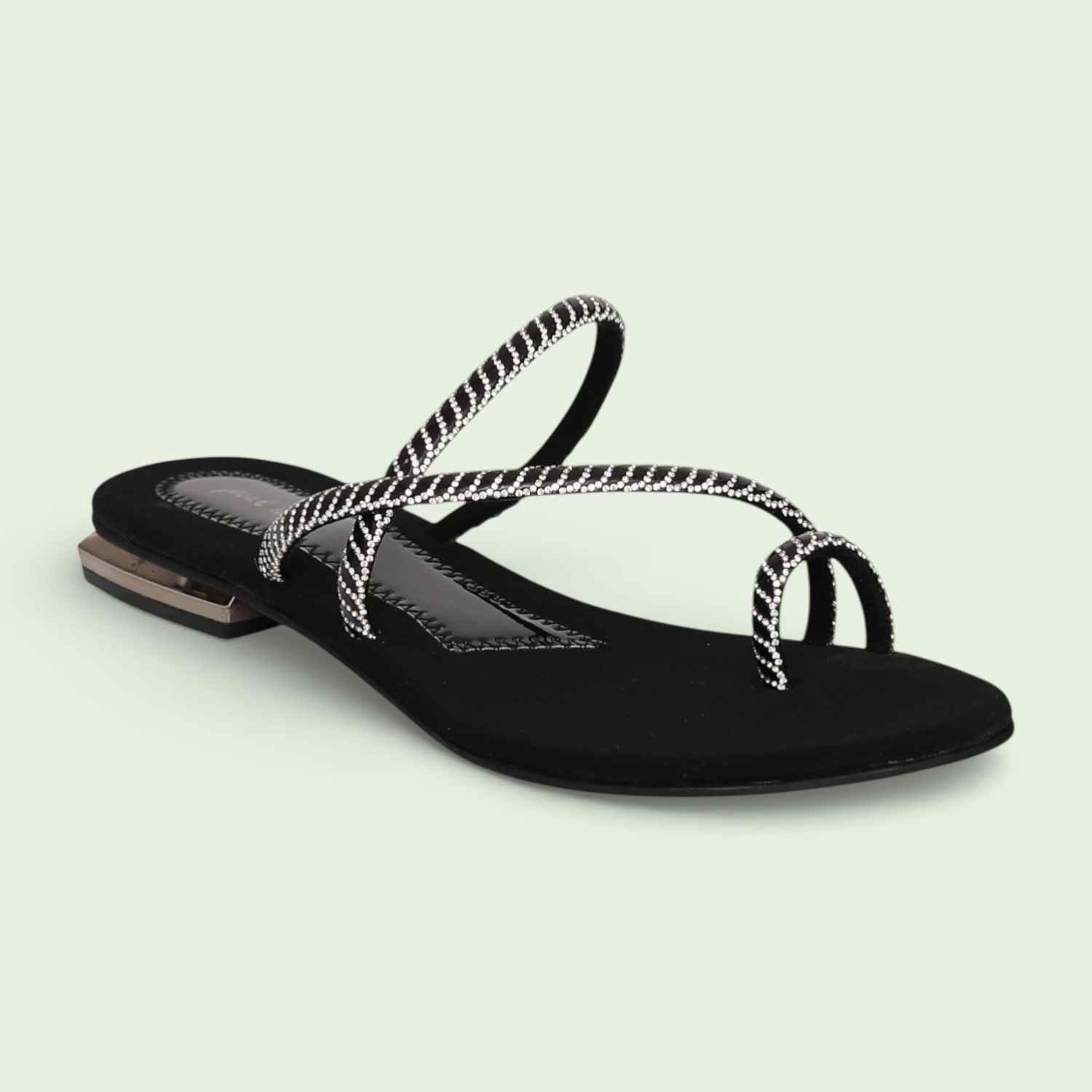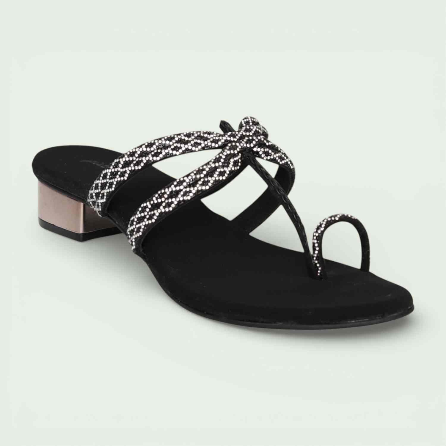Women Black Embellished Sandals