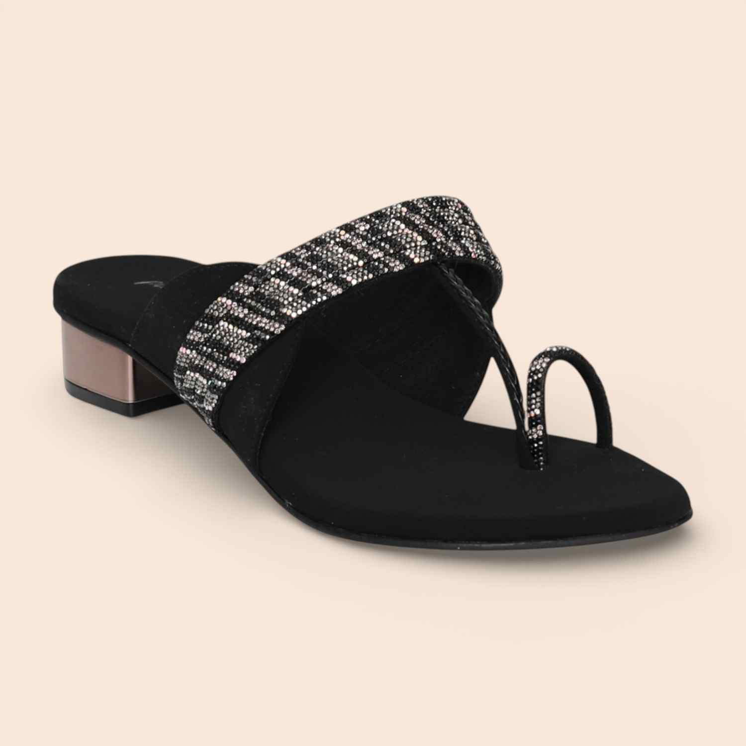 Women's Black Rib Jewel Toe-Ring Heels