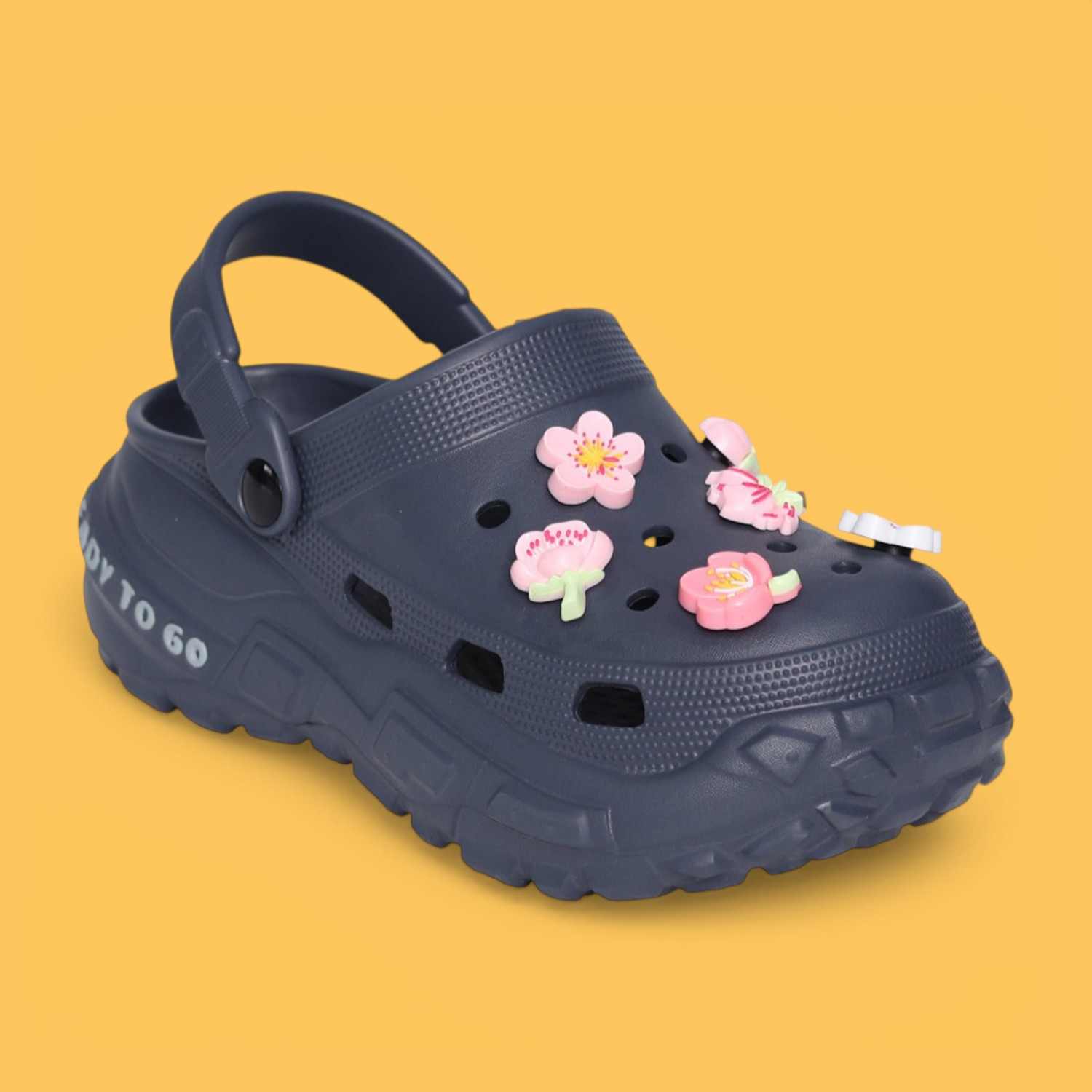 Womens Navy Floral Charm Comfort Clogs