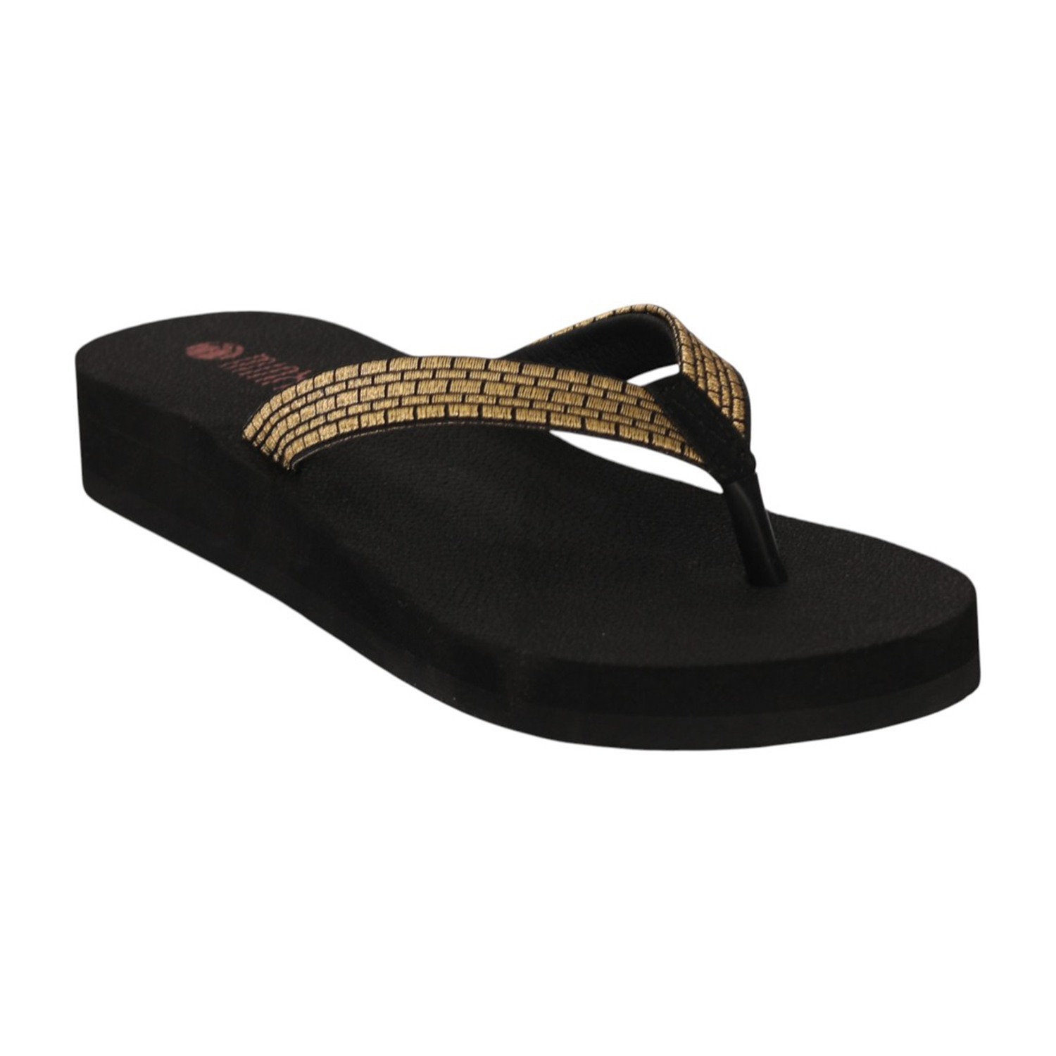 Women Black Wedge Flip-Flops Textured Footbed Metallic Strap