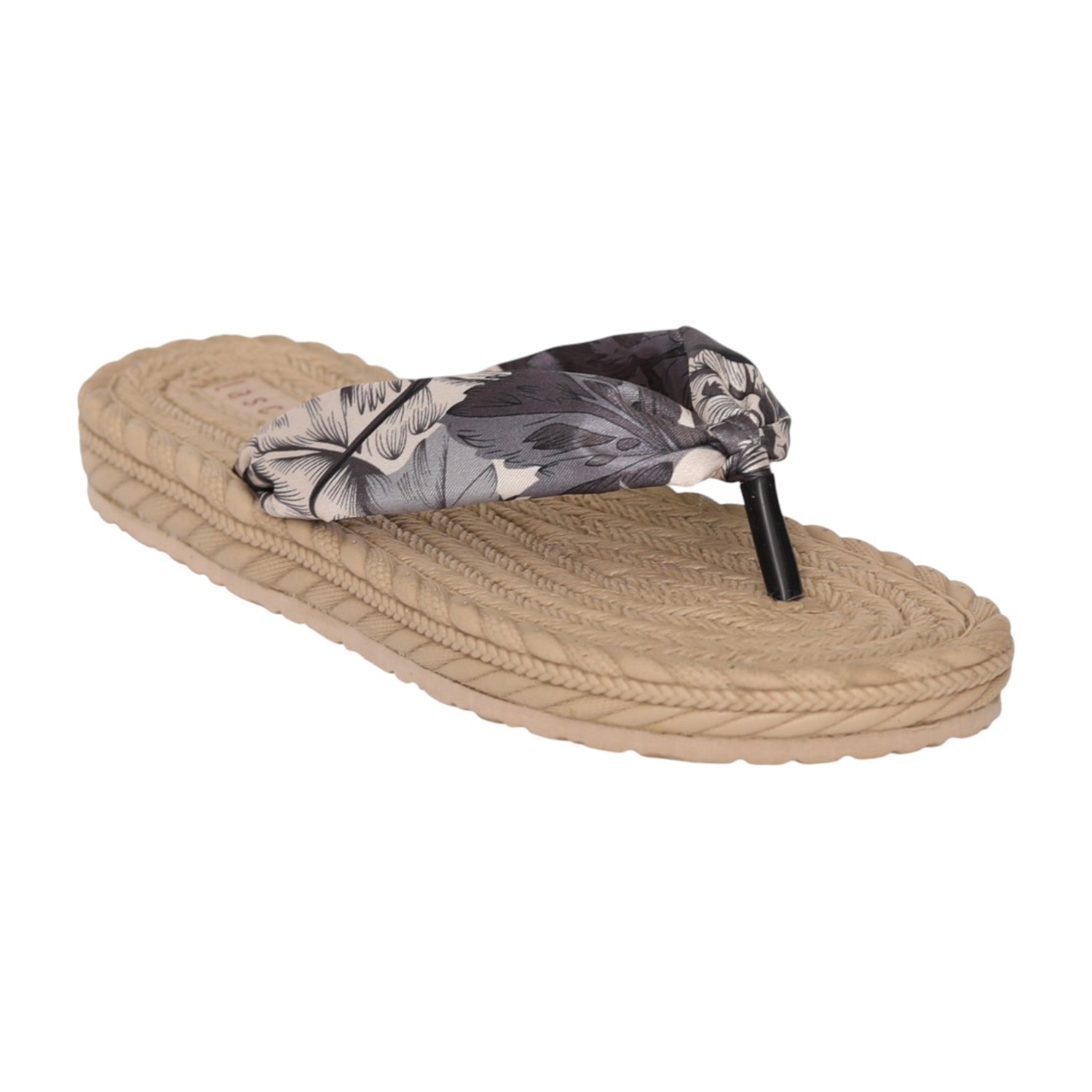 Black Braided Sole Floral Thong Sandal