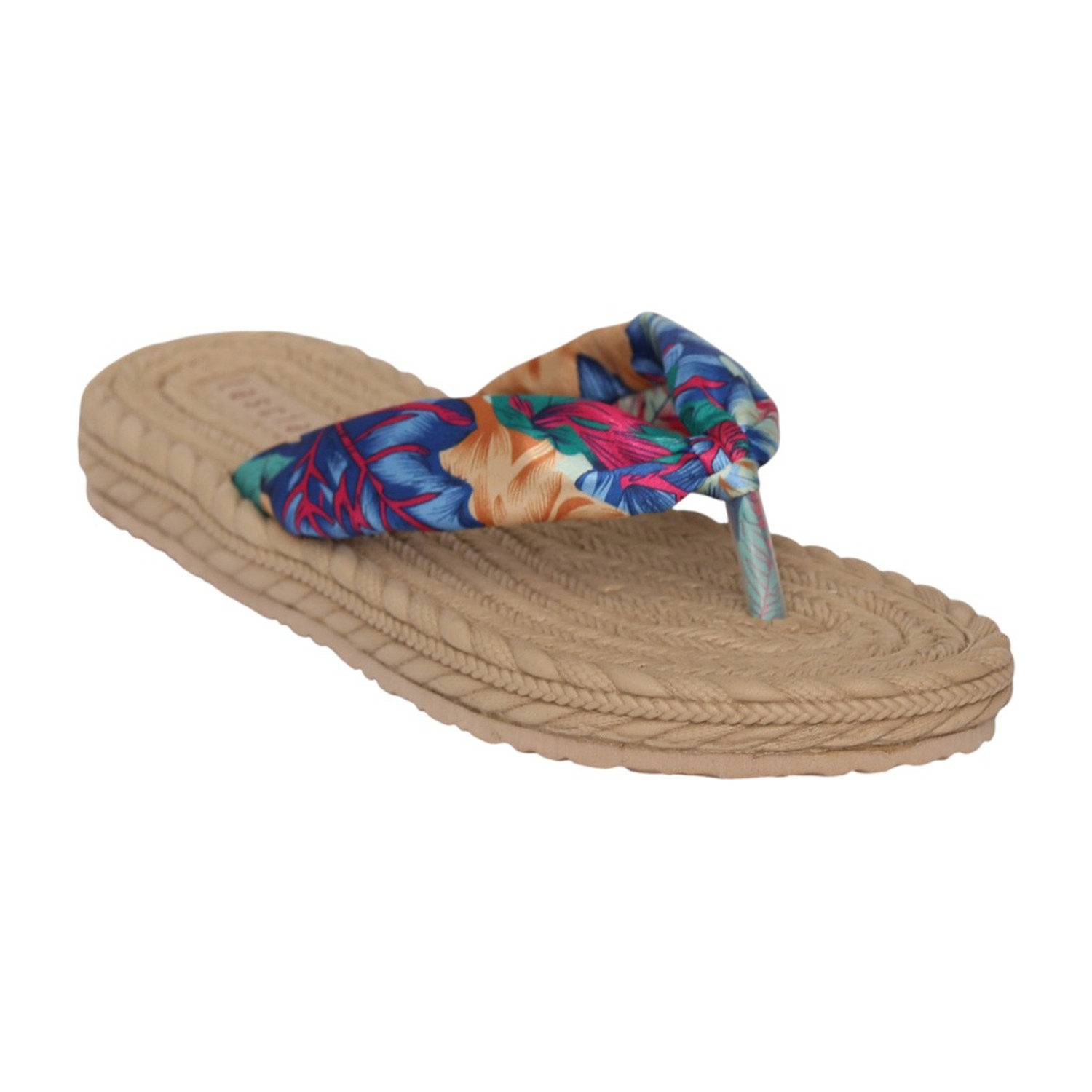 Multicolor Floral Fabric Thong Sandal with Braided Sole