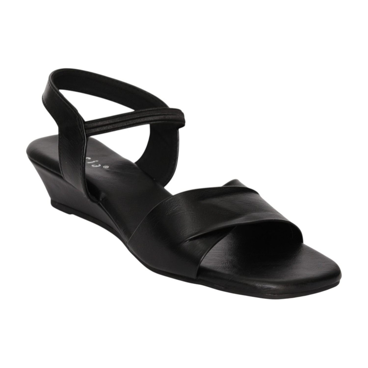 Black Wedge Sandal with Ankle Strap