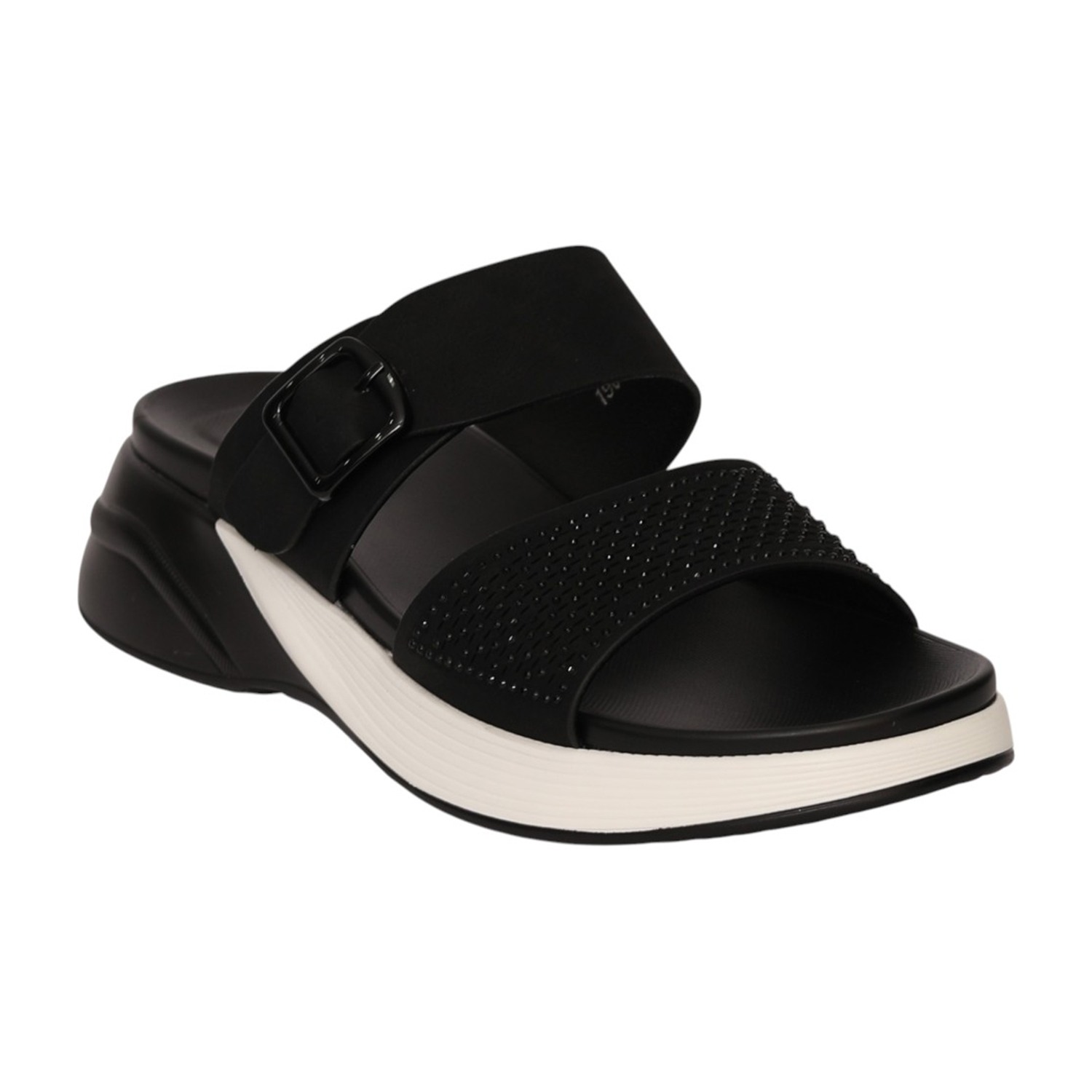 Women Black Comfort Sandals with Adjustable Buckle