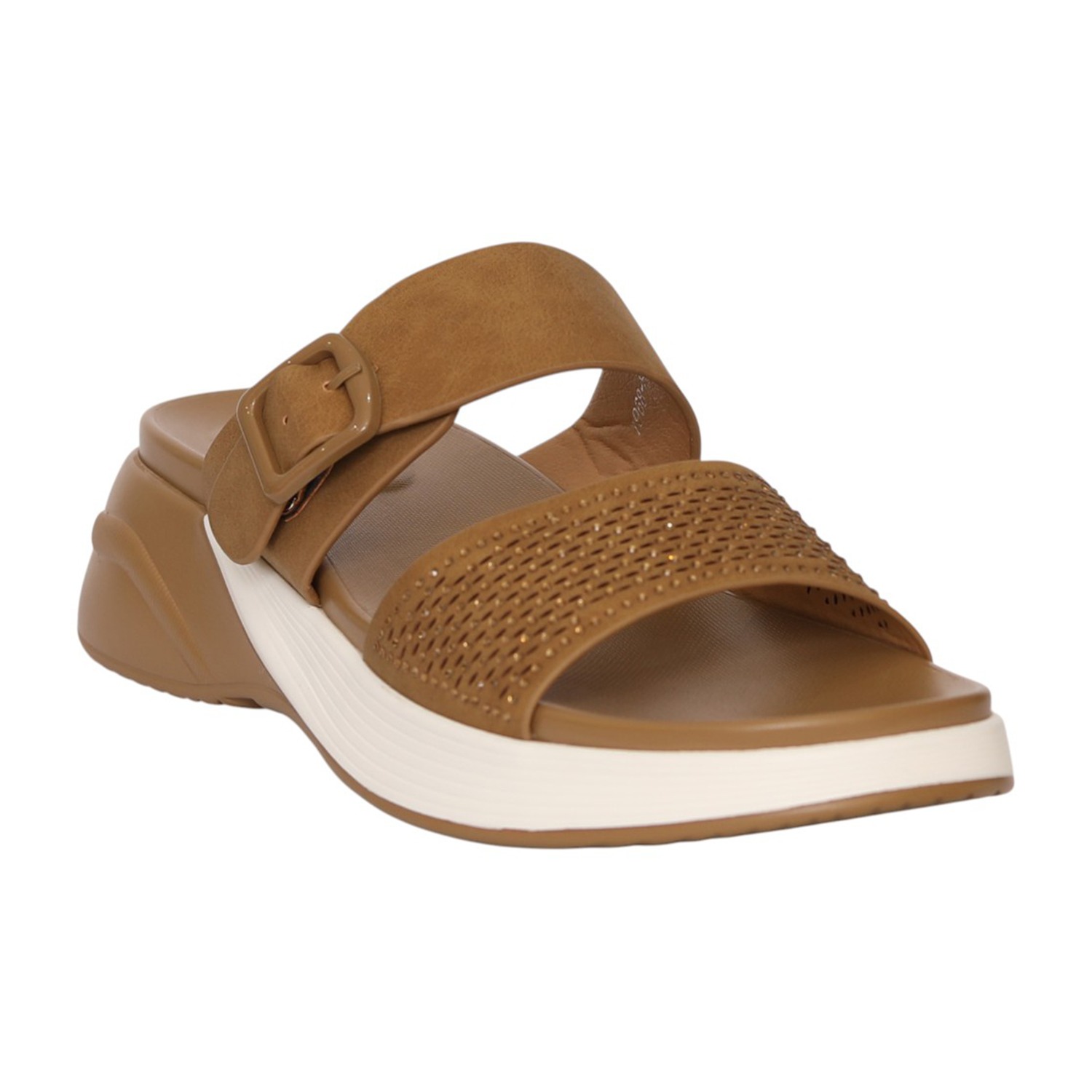 Women Tan Comfort Sandals with Adjustable Buckle