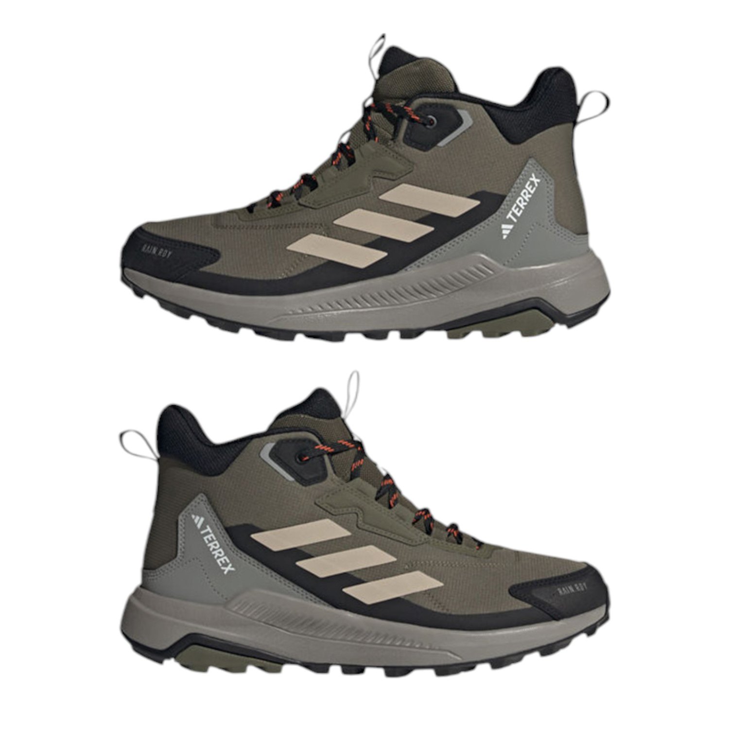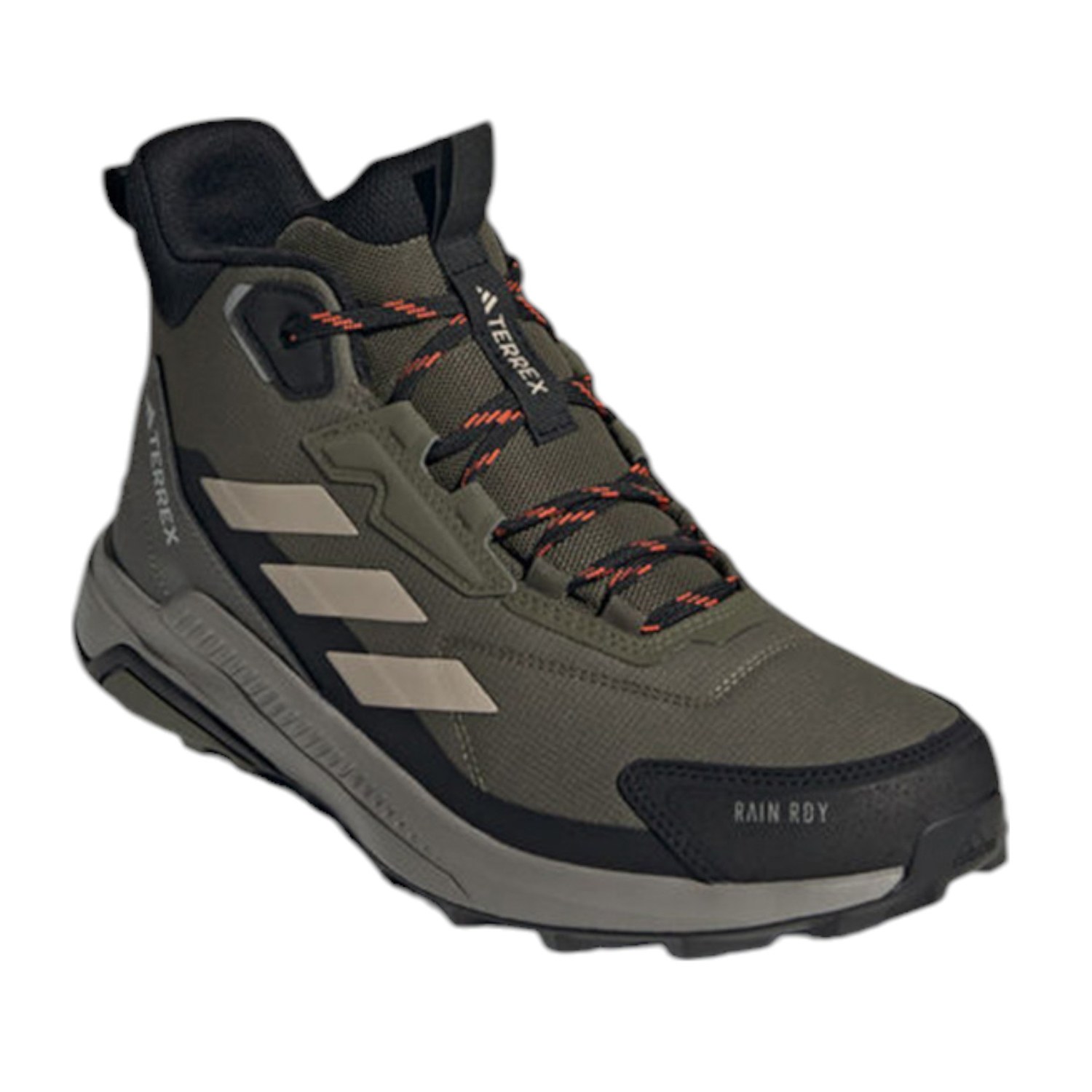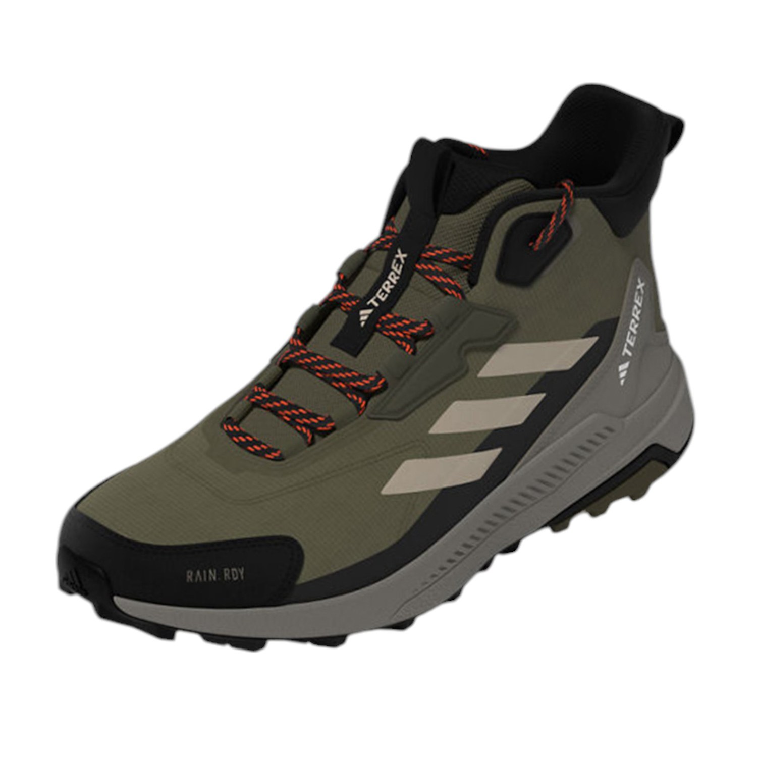 Wander. Roam. Explore. Lace up these adidas Terrex hiking shoes and explore high and low, wet or dry. A mid-height cuff offers ankle support, and a cushioned midsole delivers lasting comfort. RAIN.RDY works with a gusseted tongue to seal out the elements, keeping your feet dry and comfortable in wet conditions. Built for durability over the long haul, they feature a Traxion outsole for a sure-footed grip.