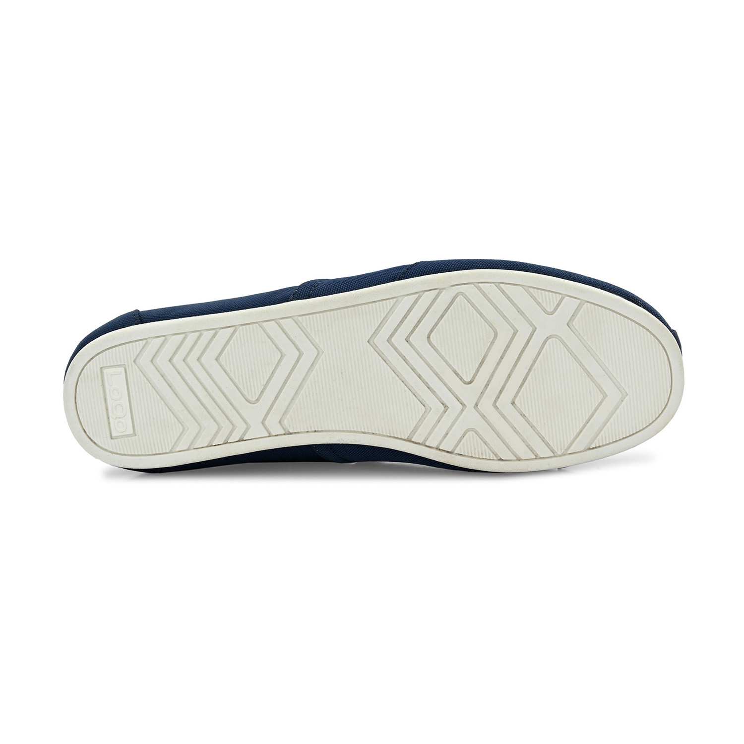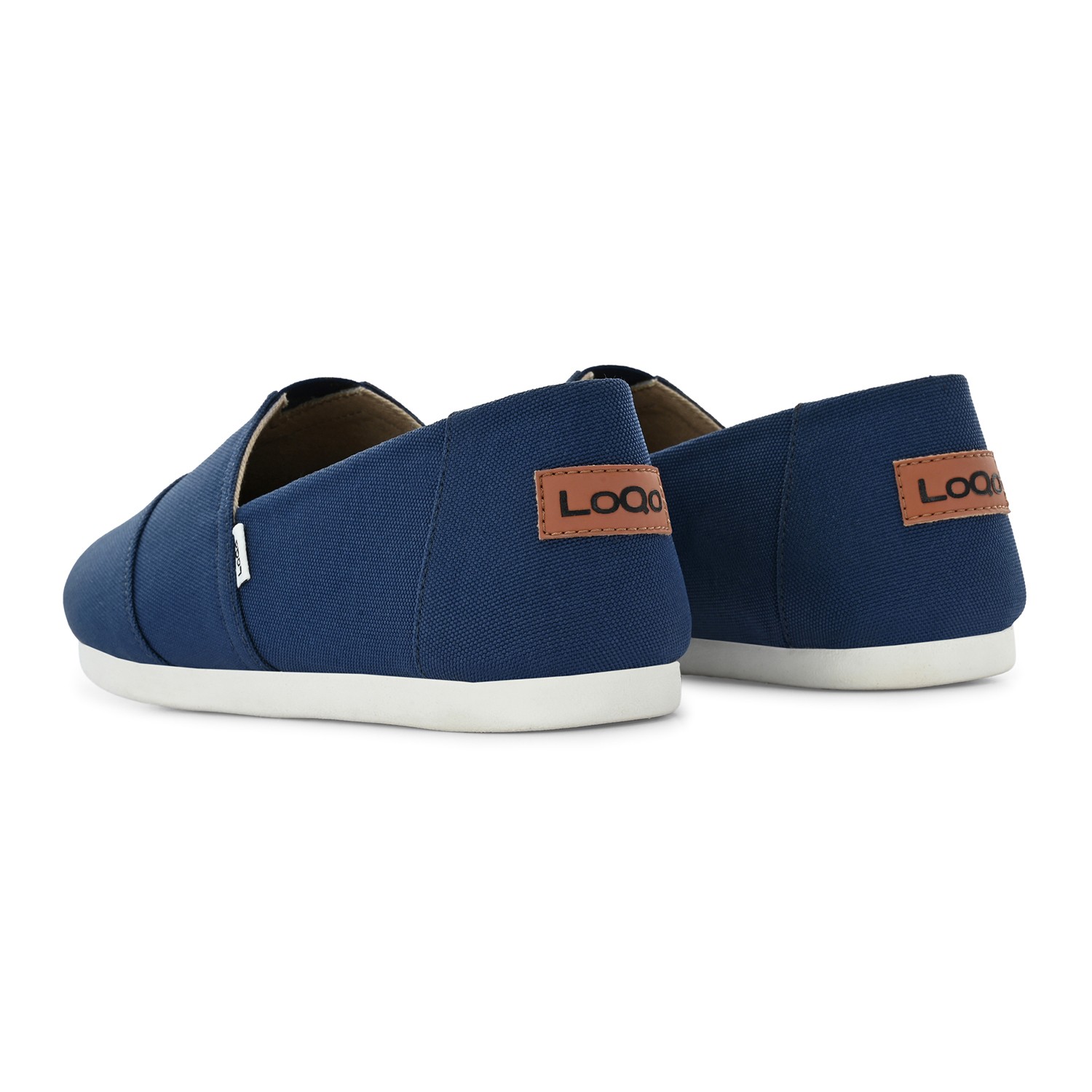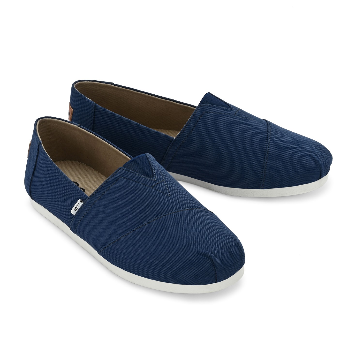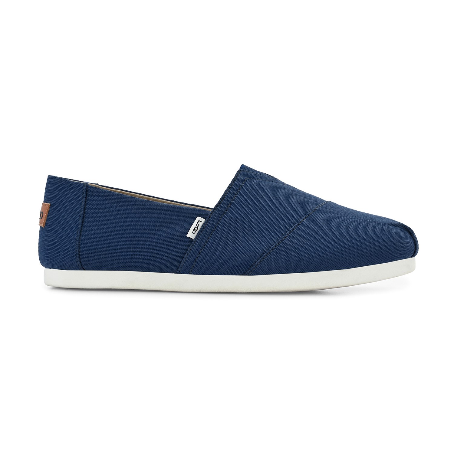 - Deep navy canvas upper with a smooth matte texture