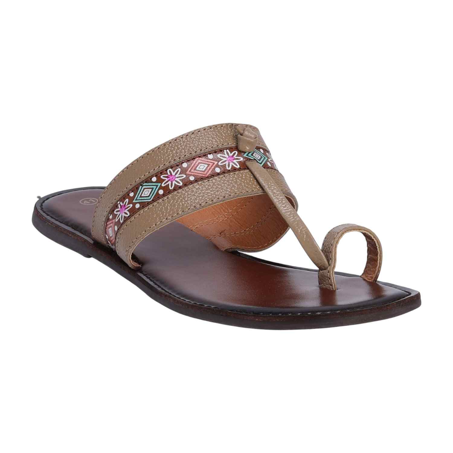 Embrace traditional elegance with these Beige-coloured Kolhapuris for women. Handcrafted with intricate detailing, these classic sandals offer both comfort and style with a soft footbed and durable sole. The versatile beige shade complements a variety of ethnic and fusion outfits, making them perfect for festivals, weddings, or casual outings.