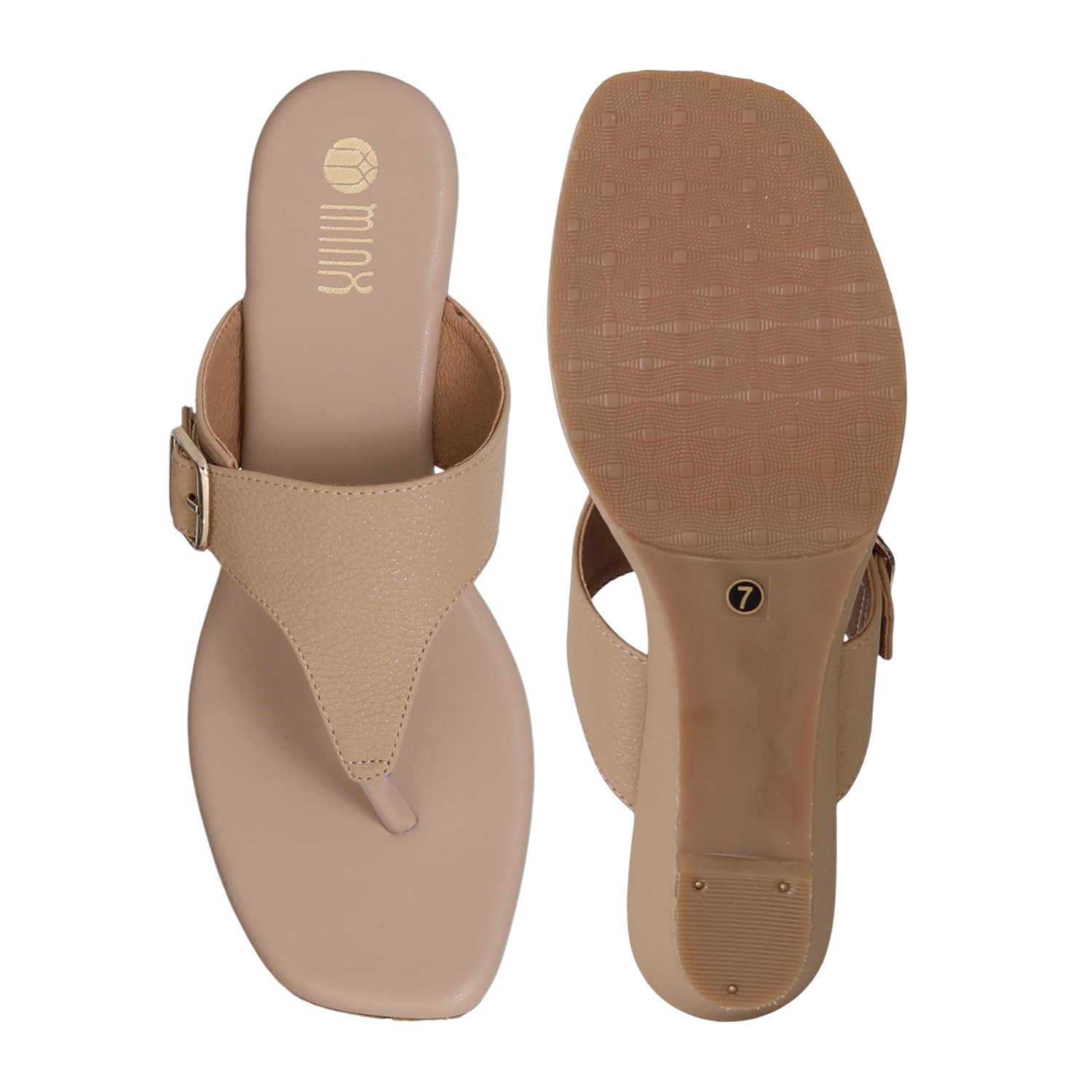 Step out in timeless style with the Beige Elegance Wedge Slides. Featuring a smooth, textured upper with an adjustable buckle, these wedges blend sophistication and comfort effortlessly. The gentle wedge heel provides subtle lift while the cushioned footbed ensures all-day wearability. Perfect for both casual and semi-formal occasions, these slides add a polished finish to any outfit.