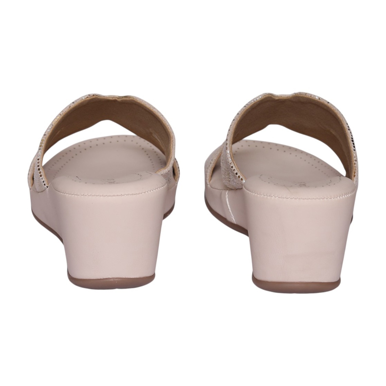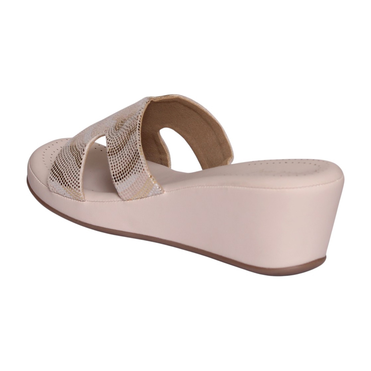 Step into comfort and subtle glamour with these chic wedge slide sandals. Designed in a soft beige tone, they feature a cushioned footbed and a stylish metallic mesh strap that adds a touch of shimmer. The wedge heel provides gentle elevation while ensuring all-day comfort, making them perfect for both casual outings and semi-dressy occasions.