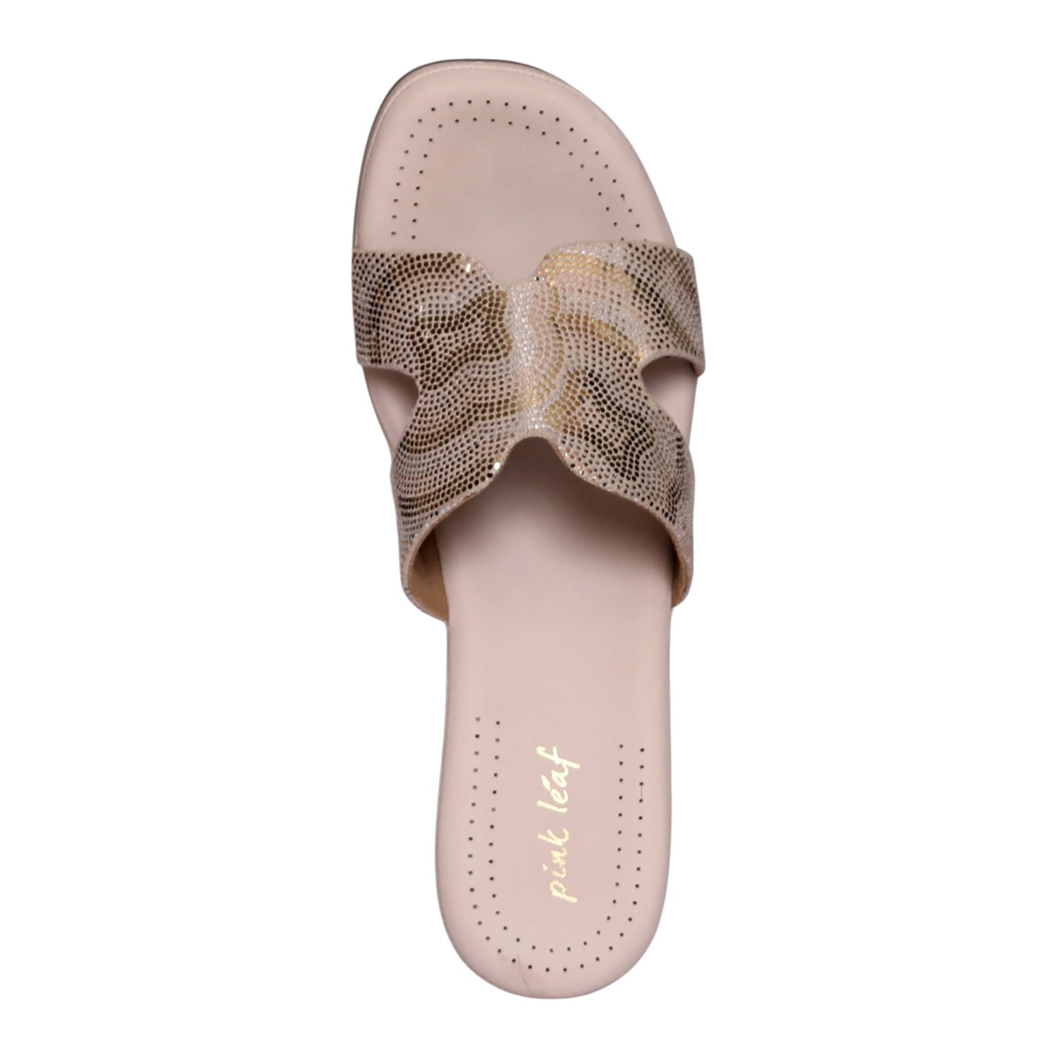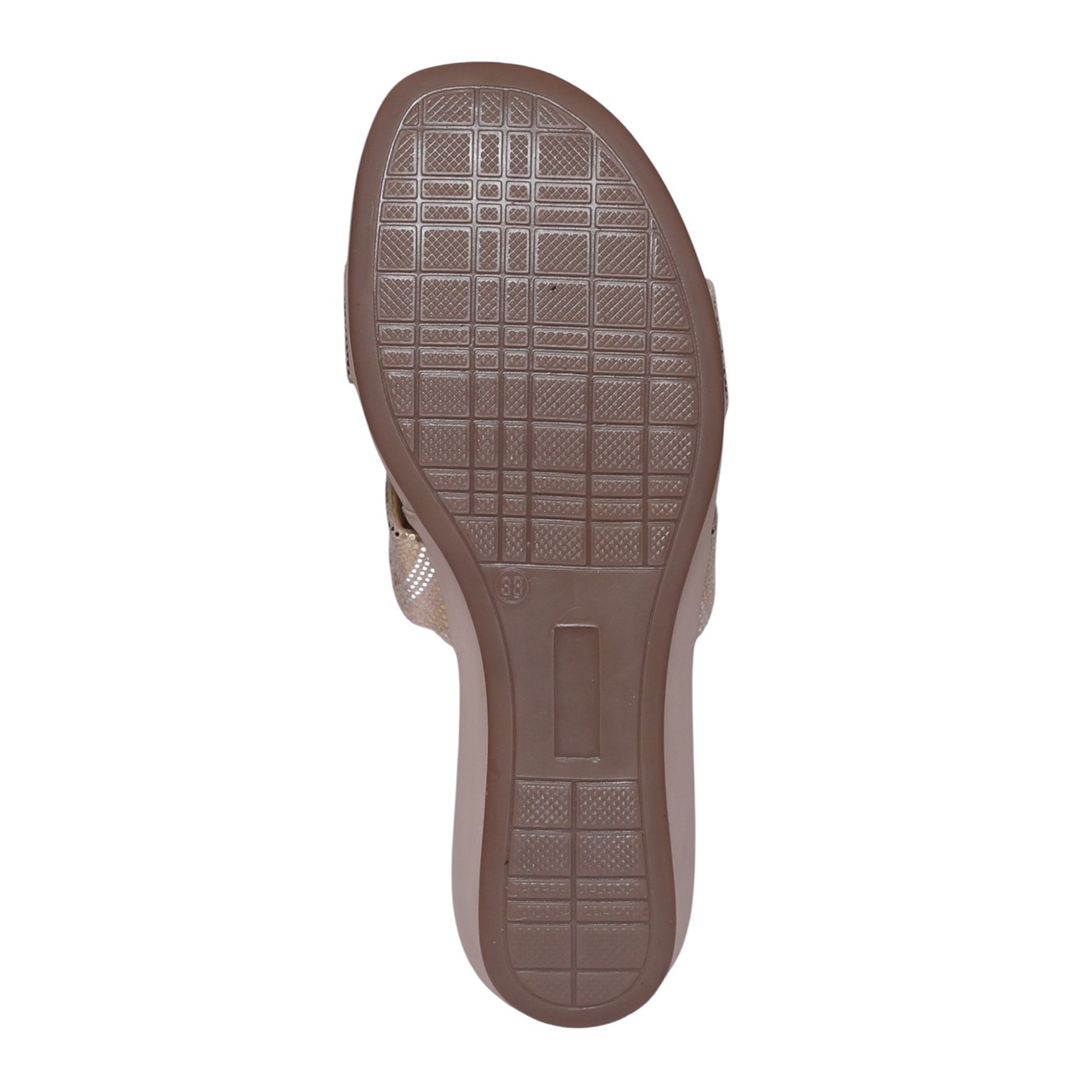 Home / Products / Pinkleaf / Beige Wedge Slide Sandals with Metallic Mesh Strap