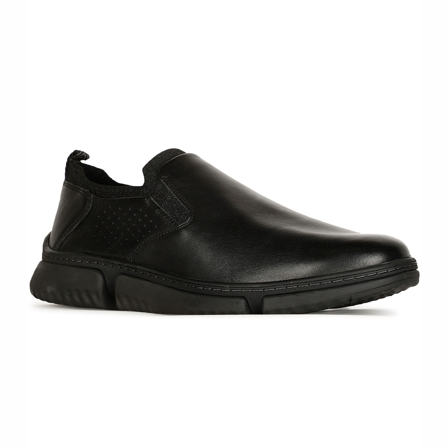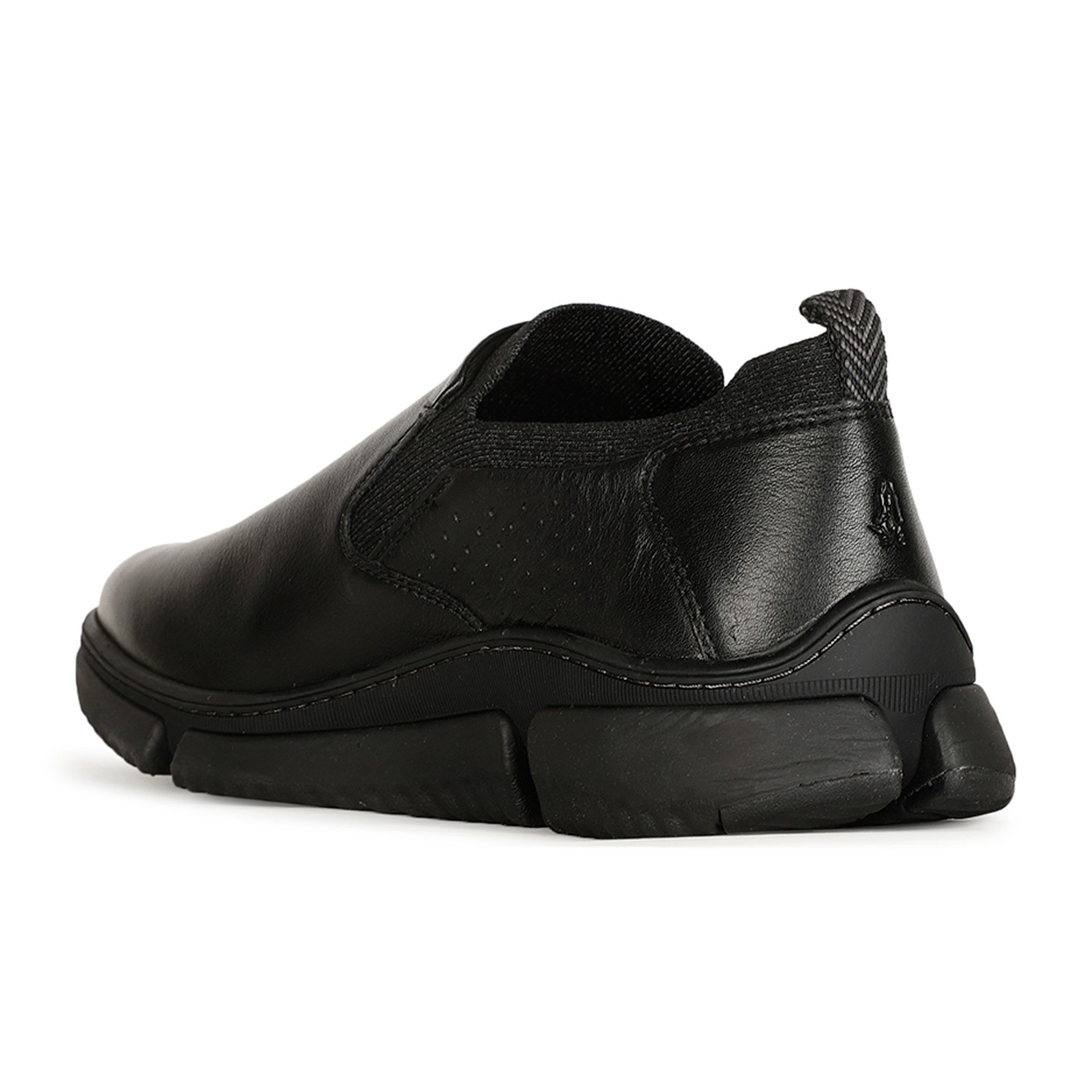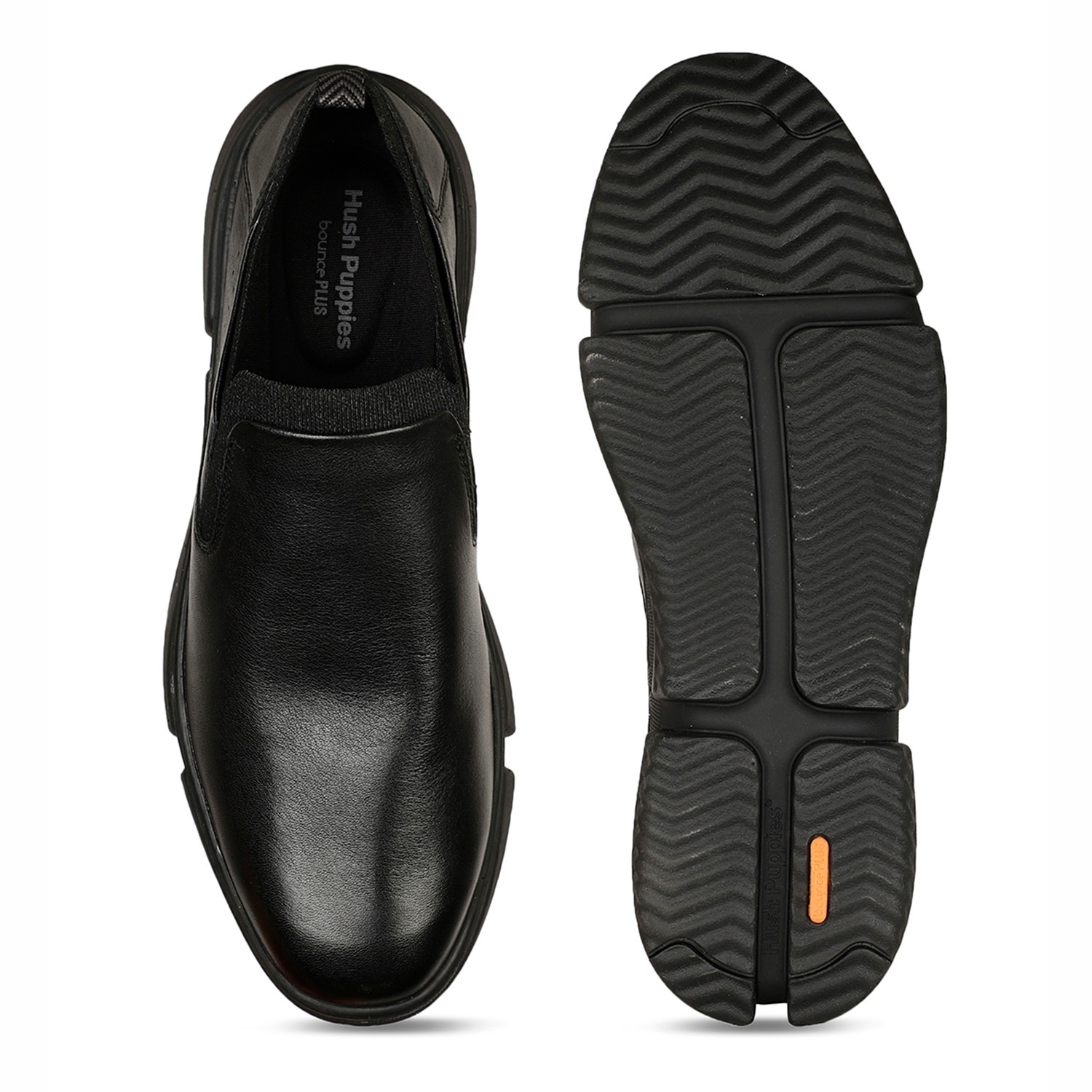 Experience timeless style and comfort with these black slip-ons from hush puppies. crafted from premium full-grain smooth leather, they provide a sophisticated yet casual look. the eva/phylon sole ensures all-day comfort and support, making them perfect for casual outings, relaxed office days, or weekend gatherings.
