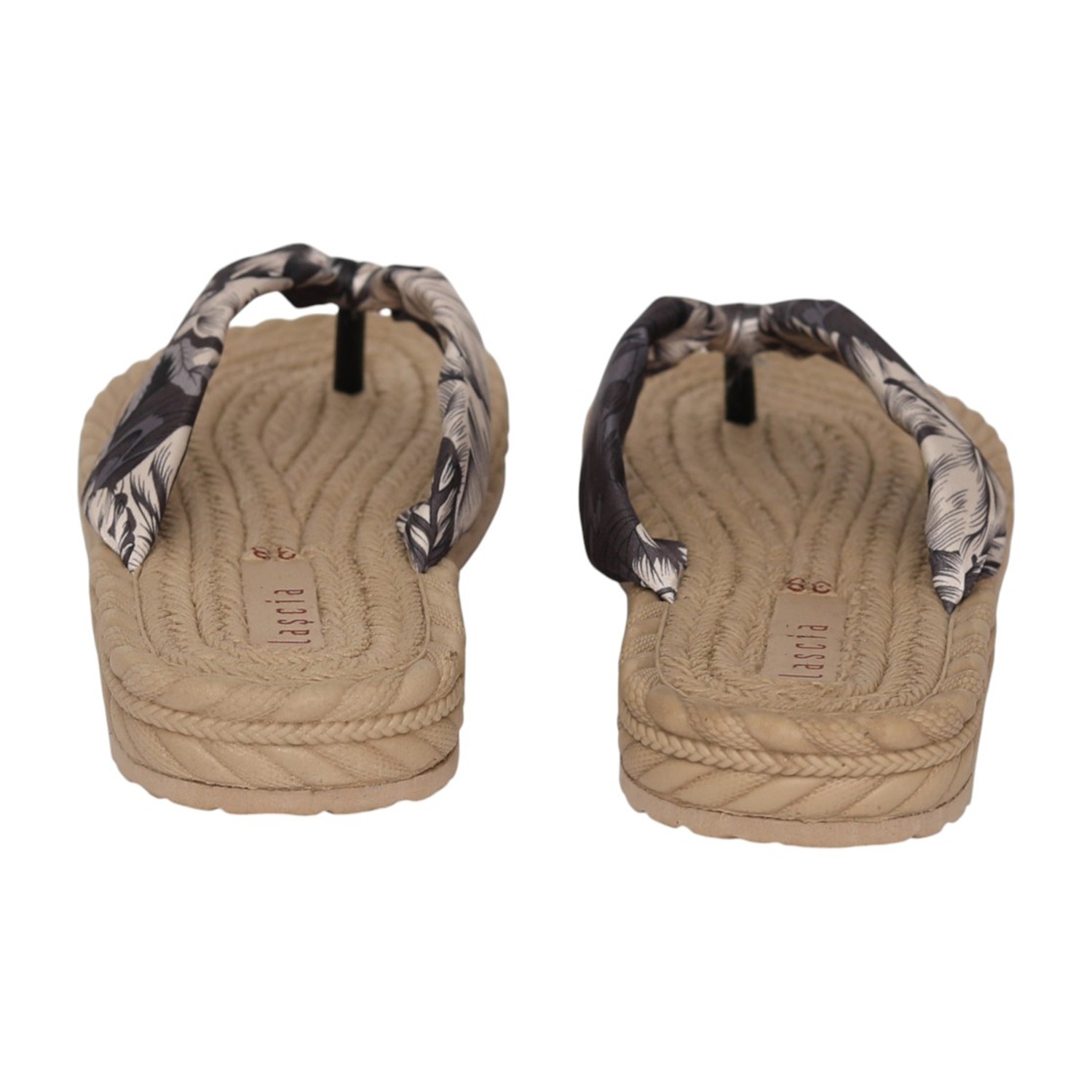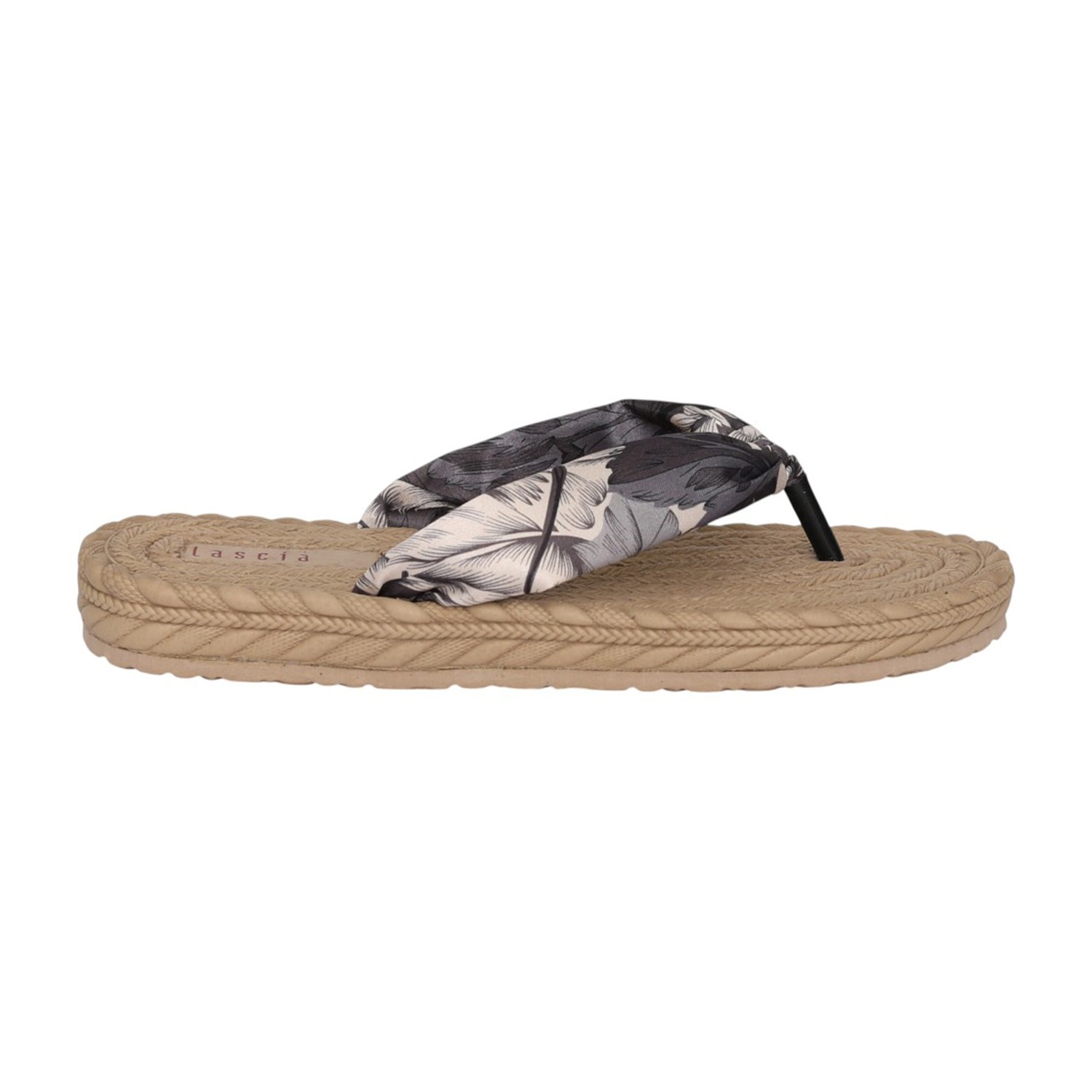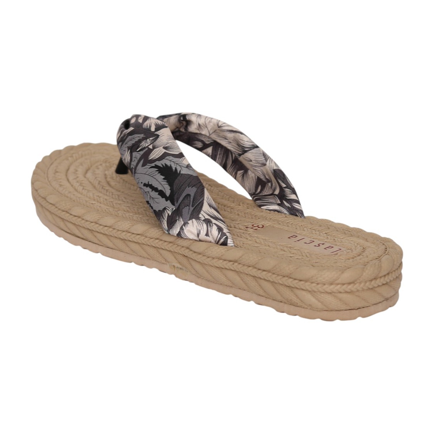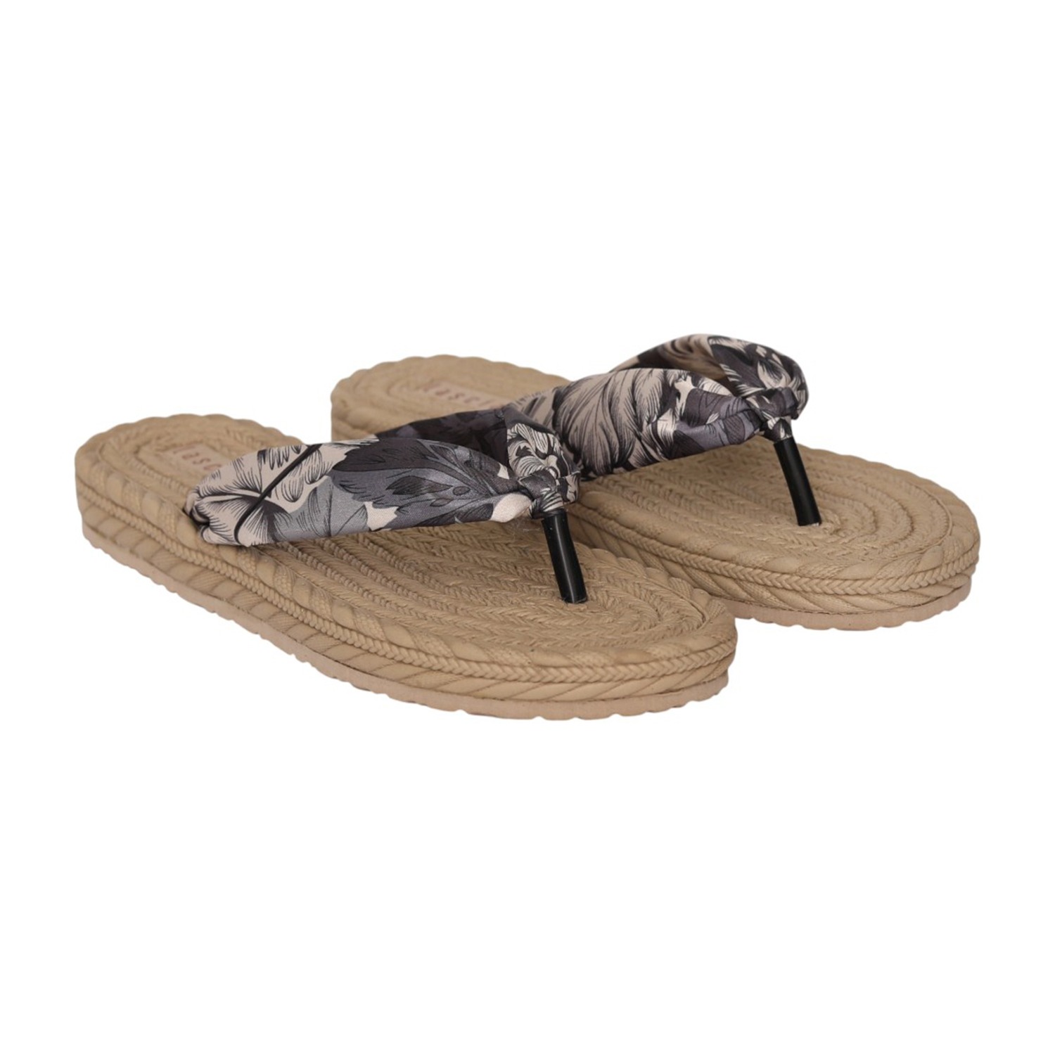 Embrace laid-back summer vibes with this stylish thong sandal featuring a textured braided sole in a natural beige tone. The soft fabric strap showcases an elegant floral print, adding a touch of charm and femininity. Designed for comfort and easy slip-on wear, its lightweight construction makes it perfect for beach days, casual outings, or relaxed weekend looks. Pair it effortlessly with sundresses, shorts, or your favorite warm-weather essentials.