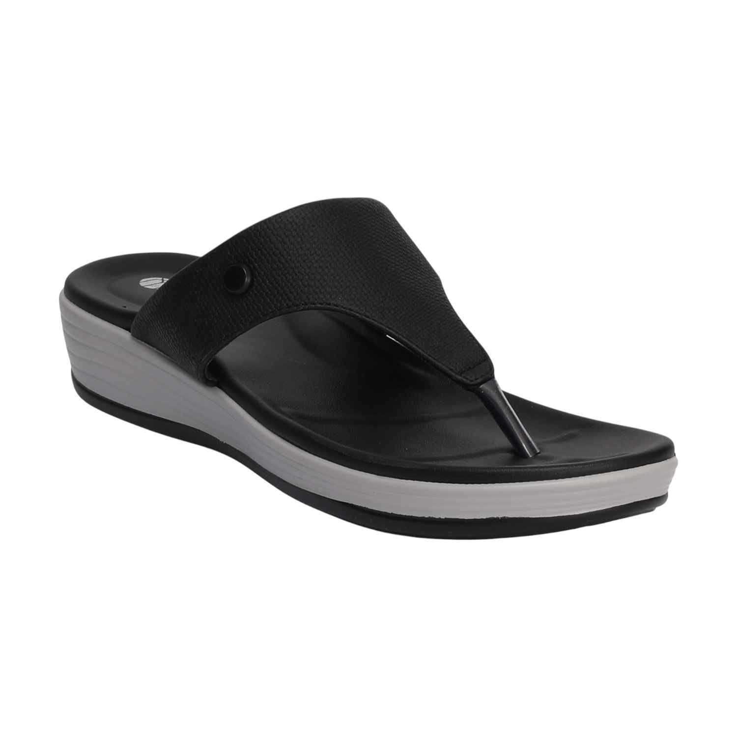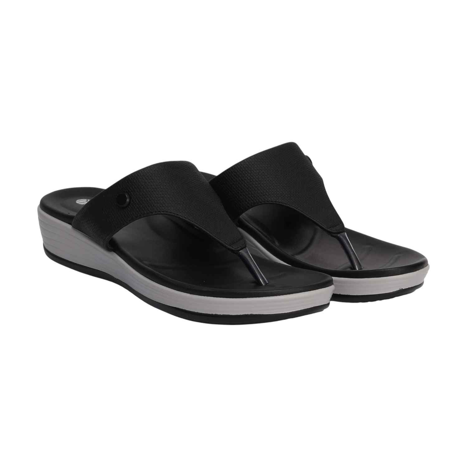 A perfect blend of contemporary fashion and functional comfort, these sleek black platform thongs feature a supportive silhouette with eye-catching layered sole detailing. The versatile black upper ensures they are a chic and adaptable addition to your footwear collection for various casual occasions, providing stylish height and effortless appeal.
