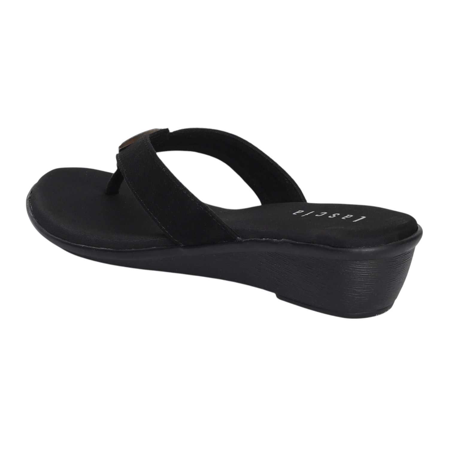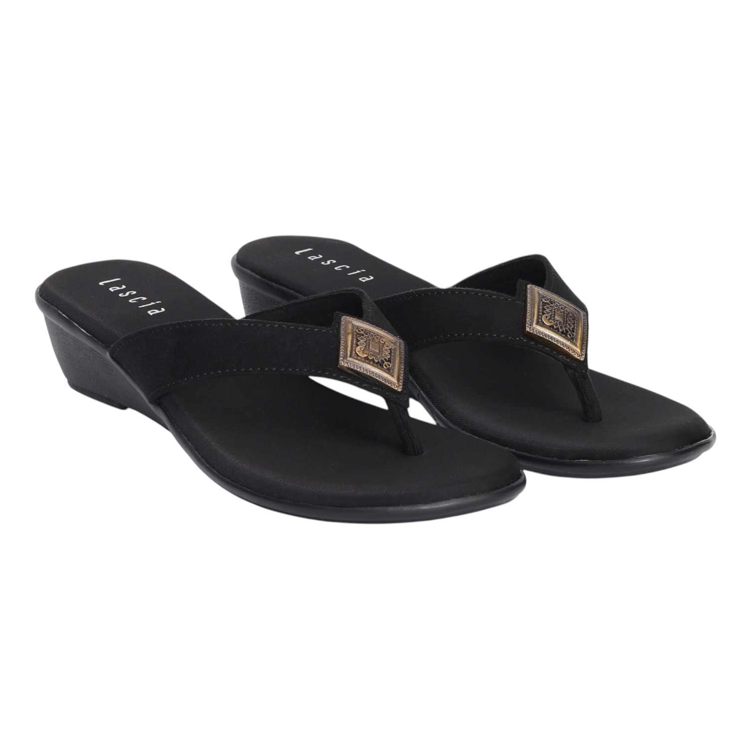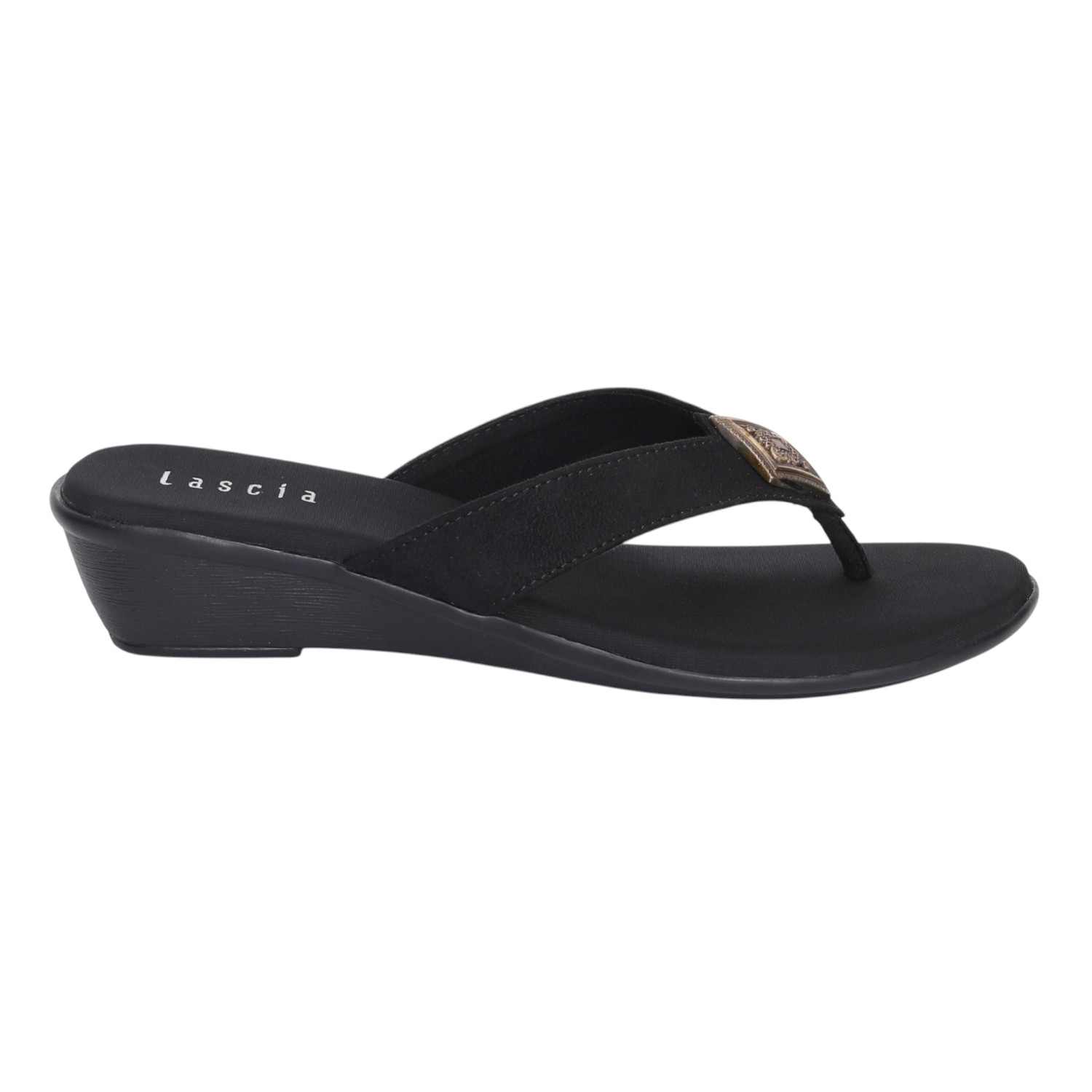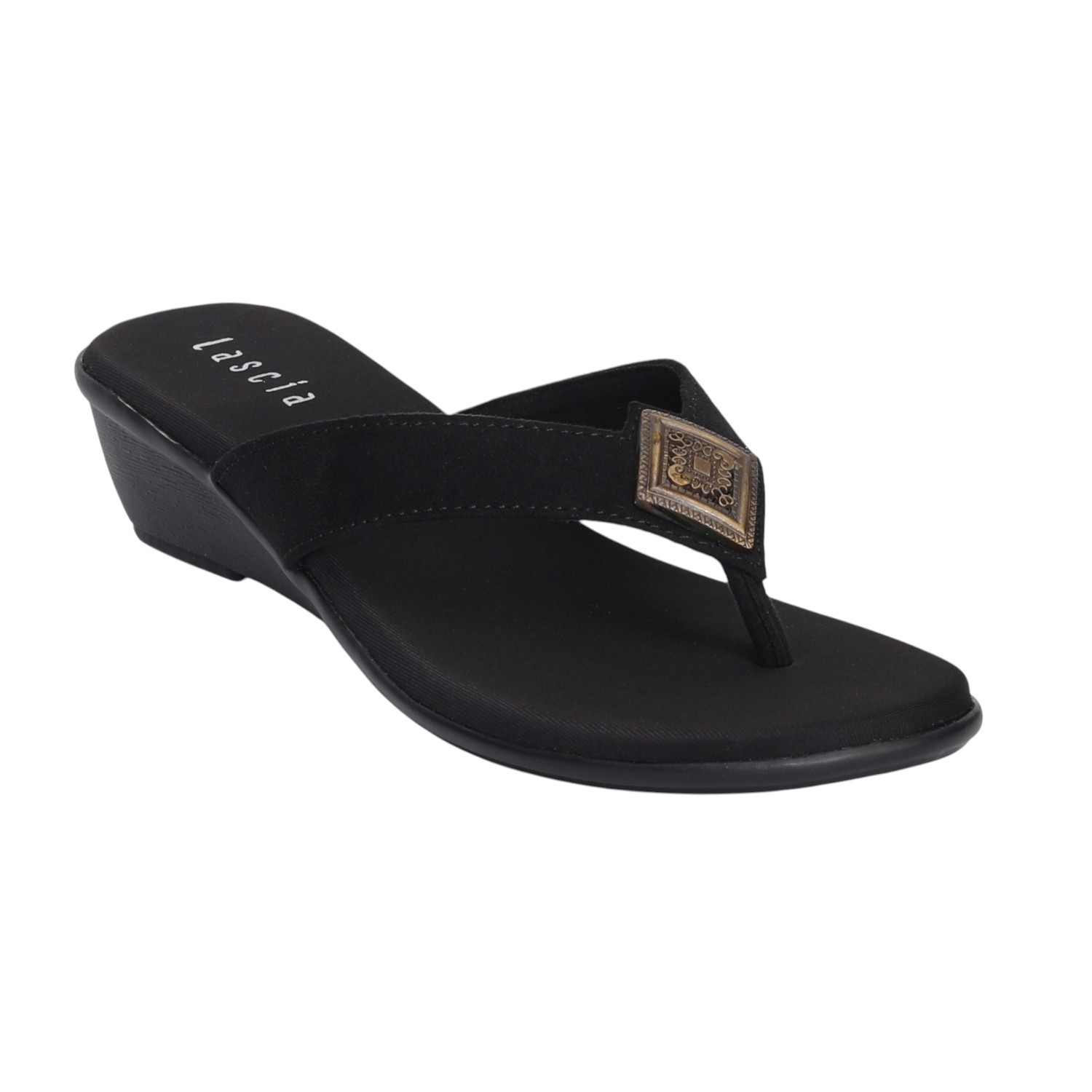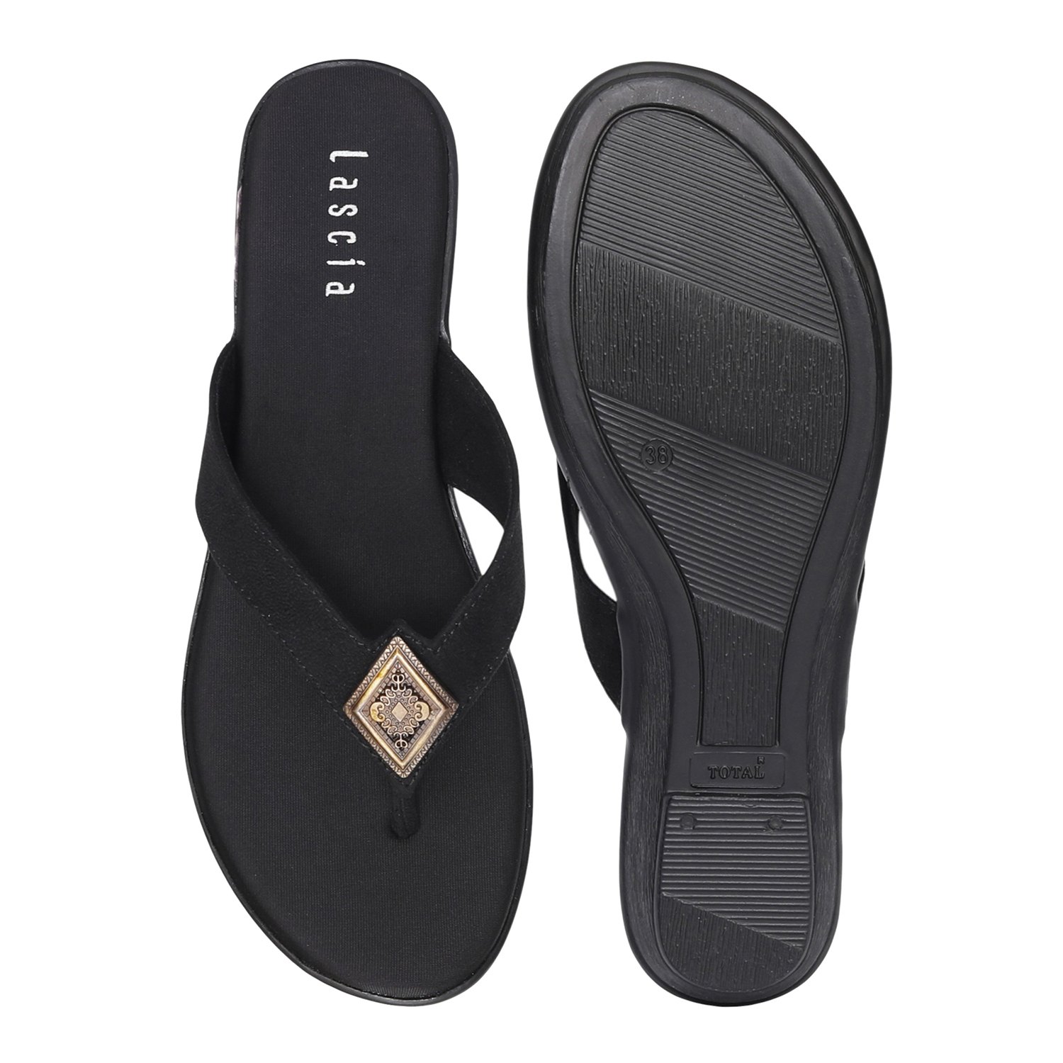 These Black Luxe Wedge Sandals offer a sophisticated blend of natural tones and unique style. They feature a black footbed and a contrasting black wedge sole, perfect for adding a refined touch to your everyday look.