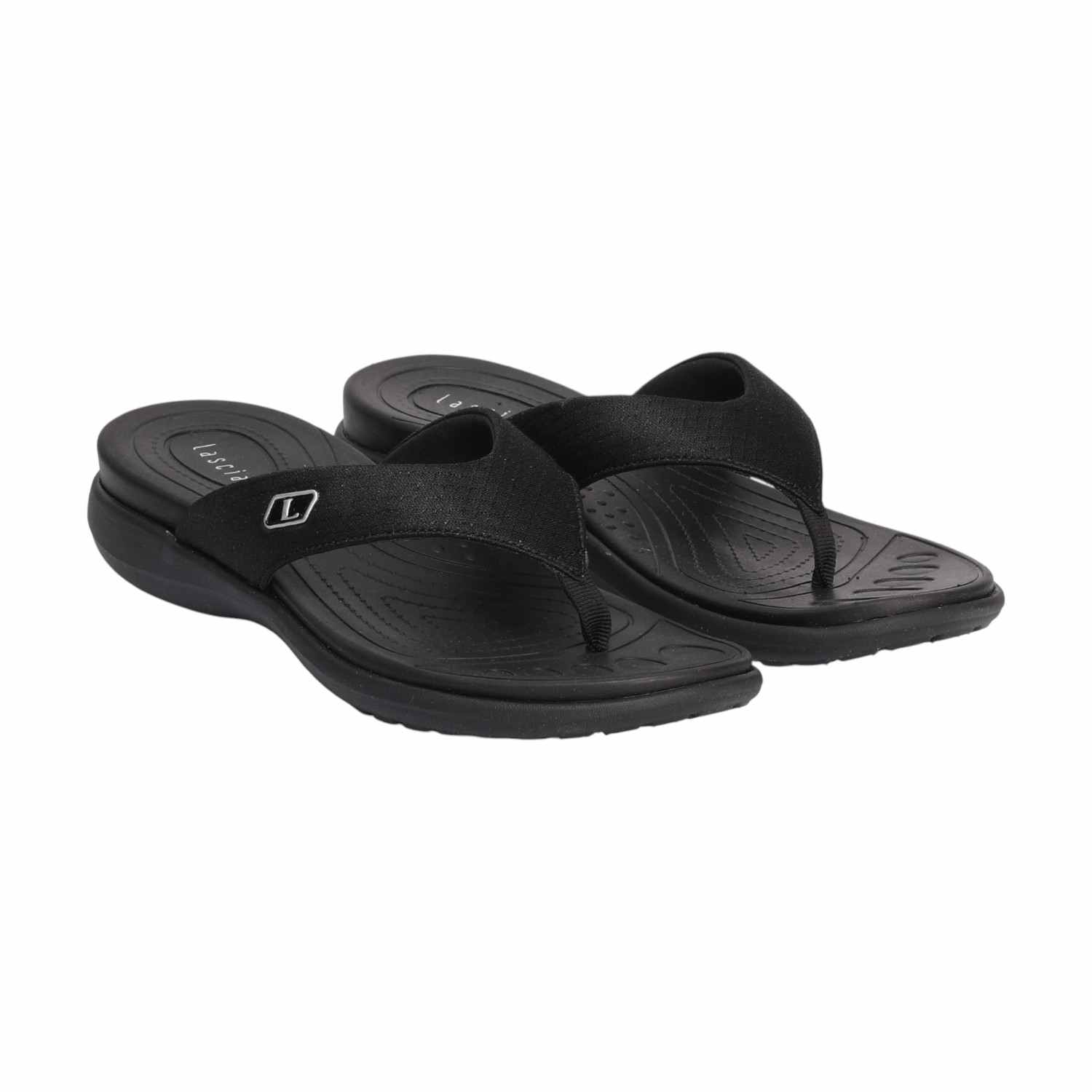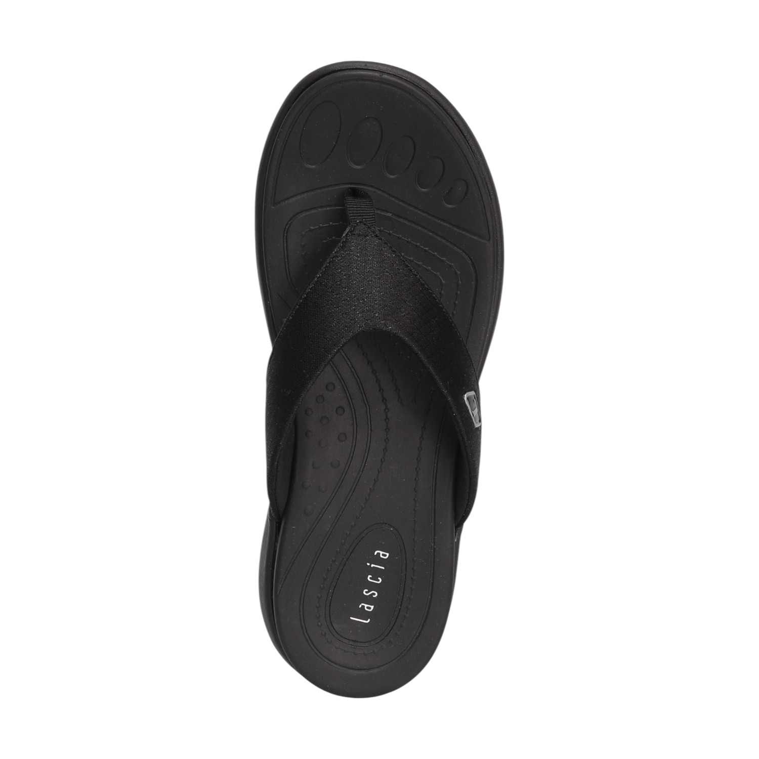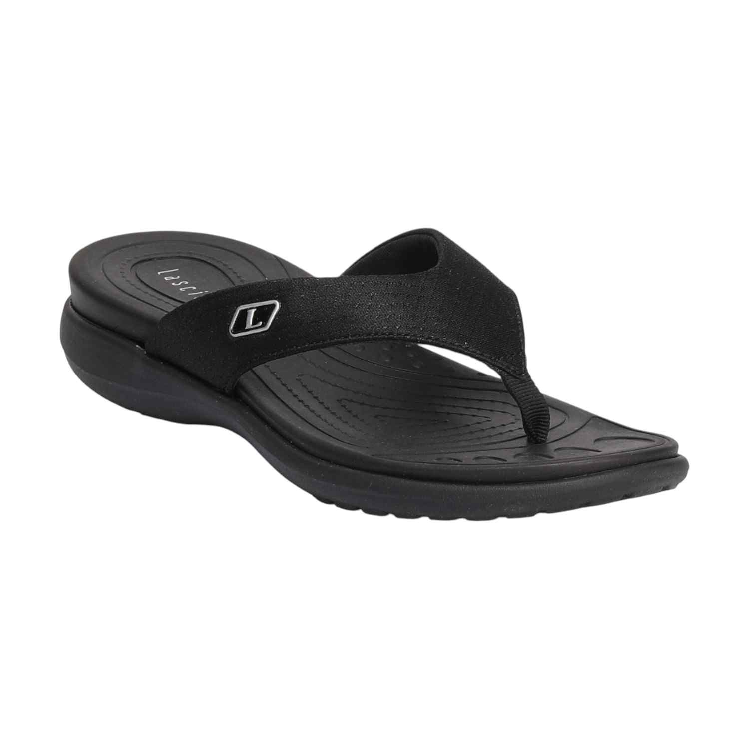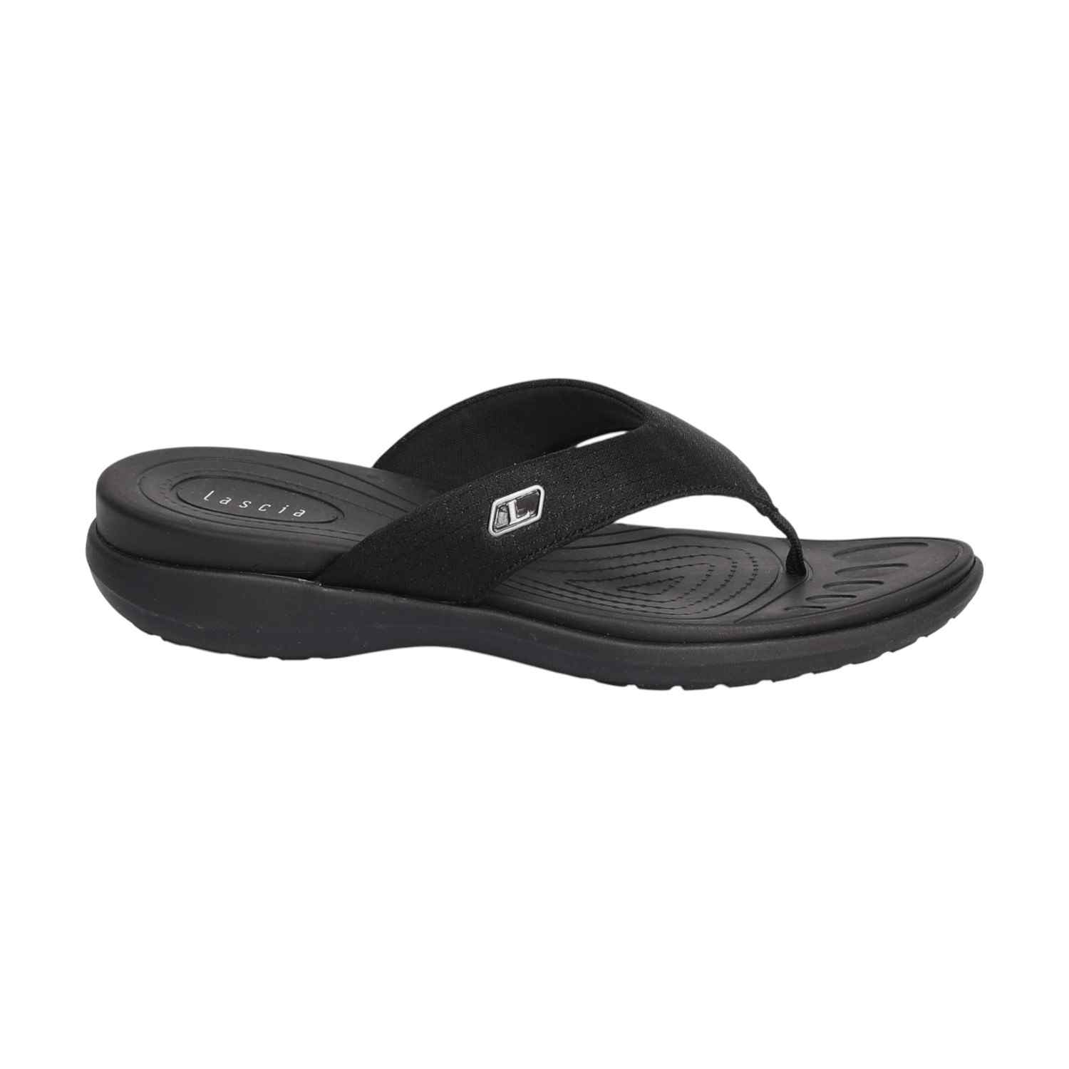 Infuse your casual look with sophisticated comfort and understated style with this cushioned black thong. Its contoured design and plush footbed make it an ideal choice for relaxed outings or adding a chic finish to your warm-weather ensemble, ensuring both flair and exceptional comfort.