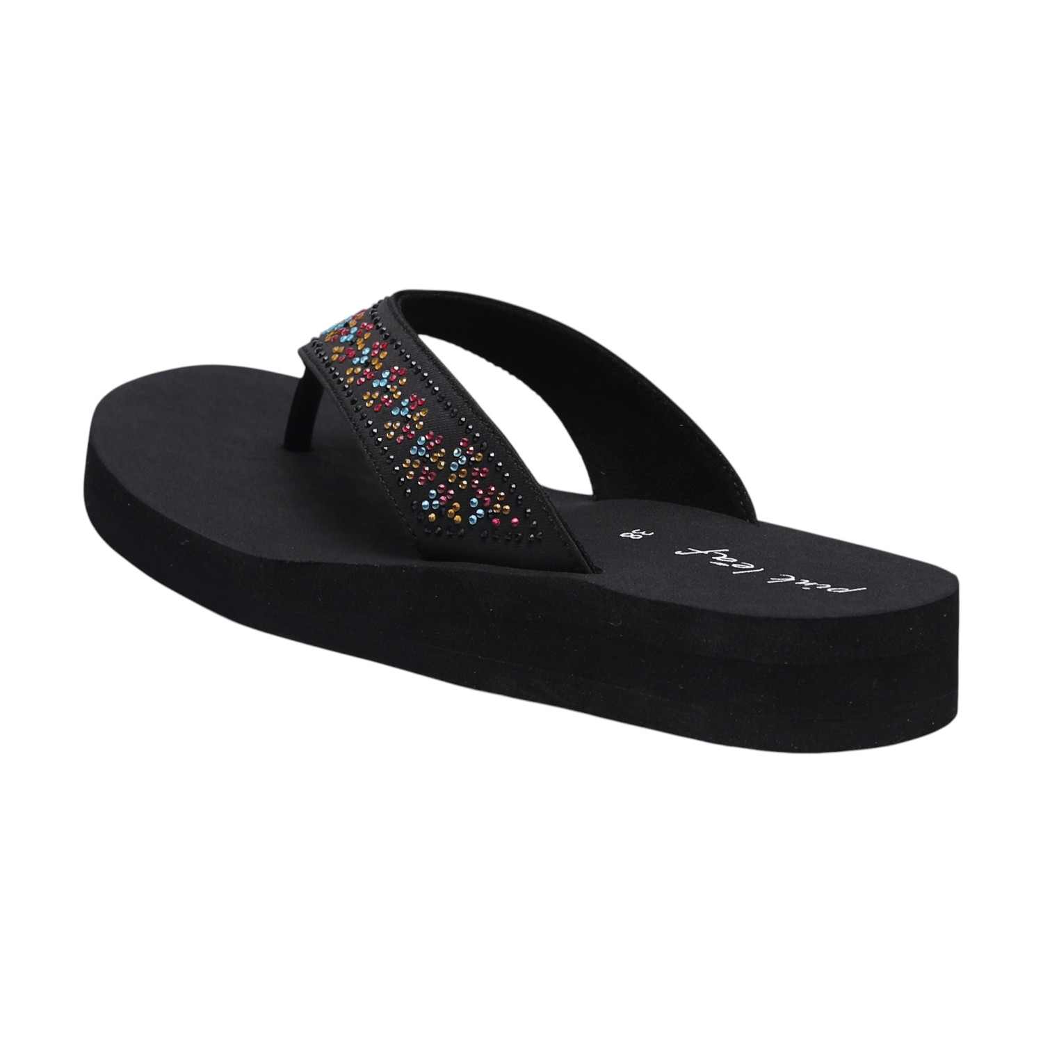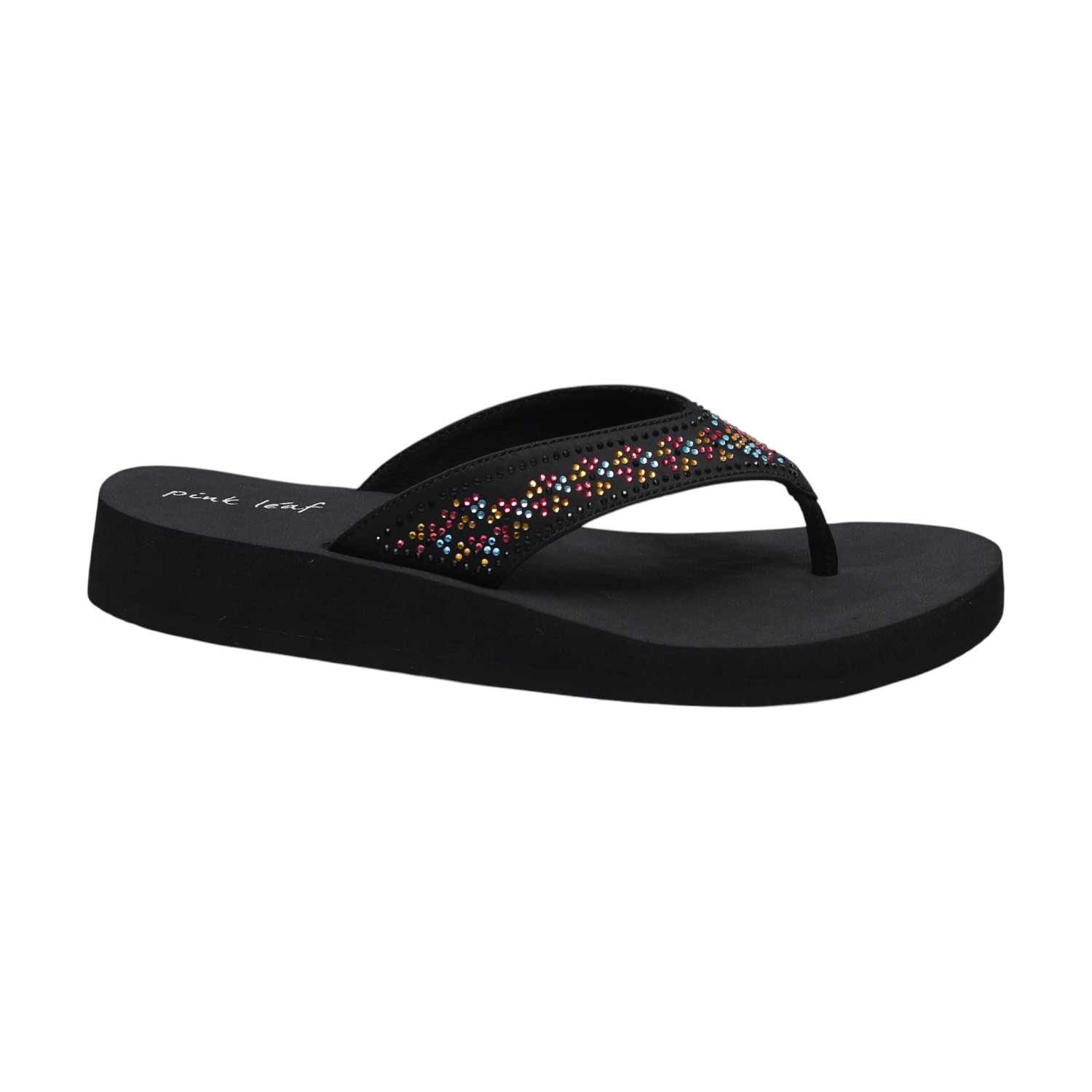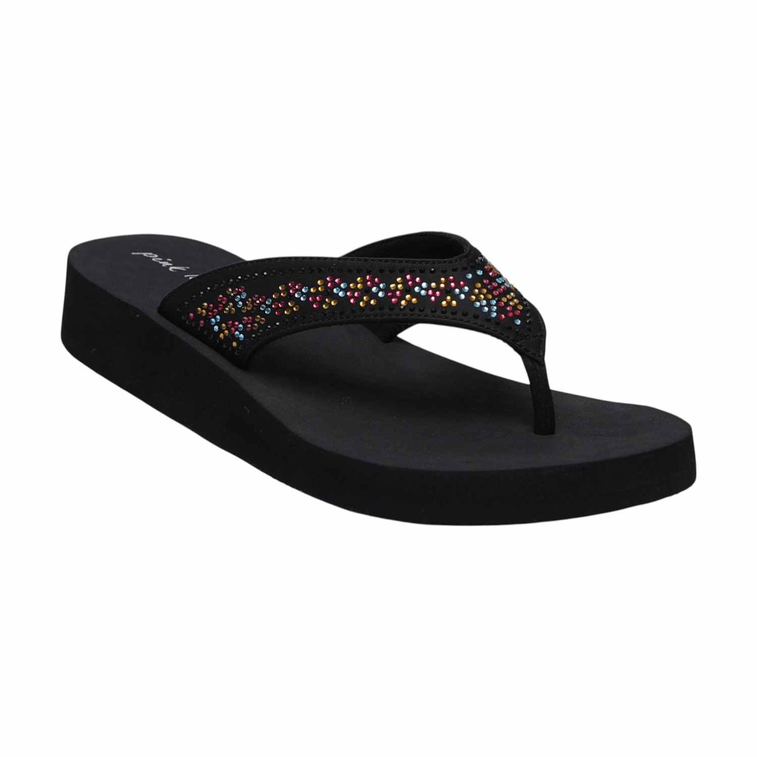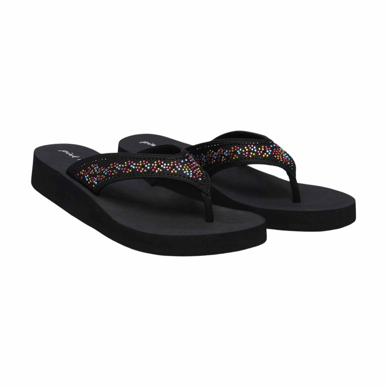 Add a playful pop of color to your steps with these Vivid Gem Thong Slides . Featuring a vibrant array of multi-colored stones on the strap and a comfortable flat design, they're perfect for adding cheerful sparkle to any casual look.
