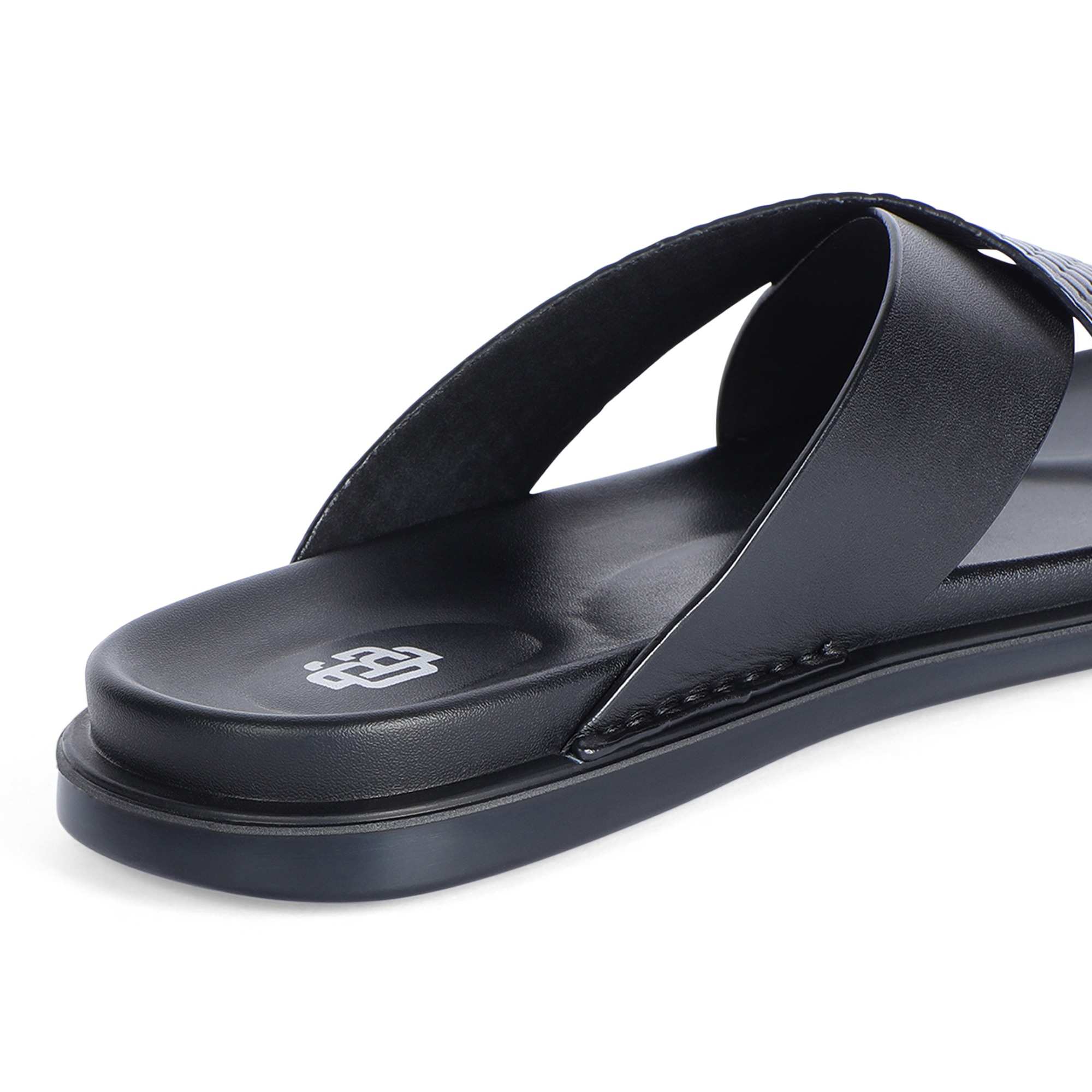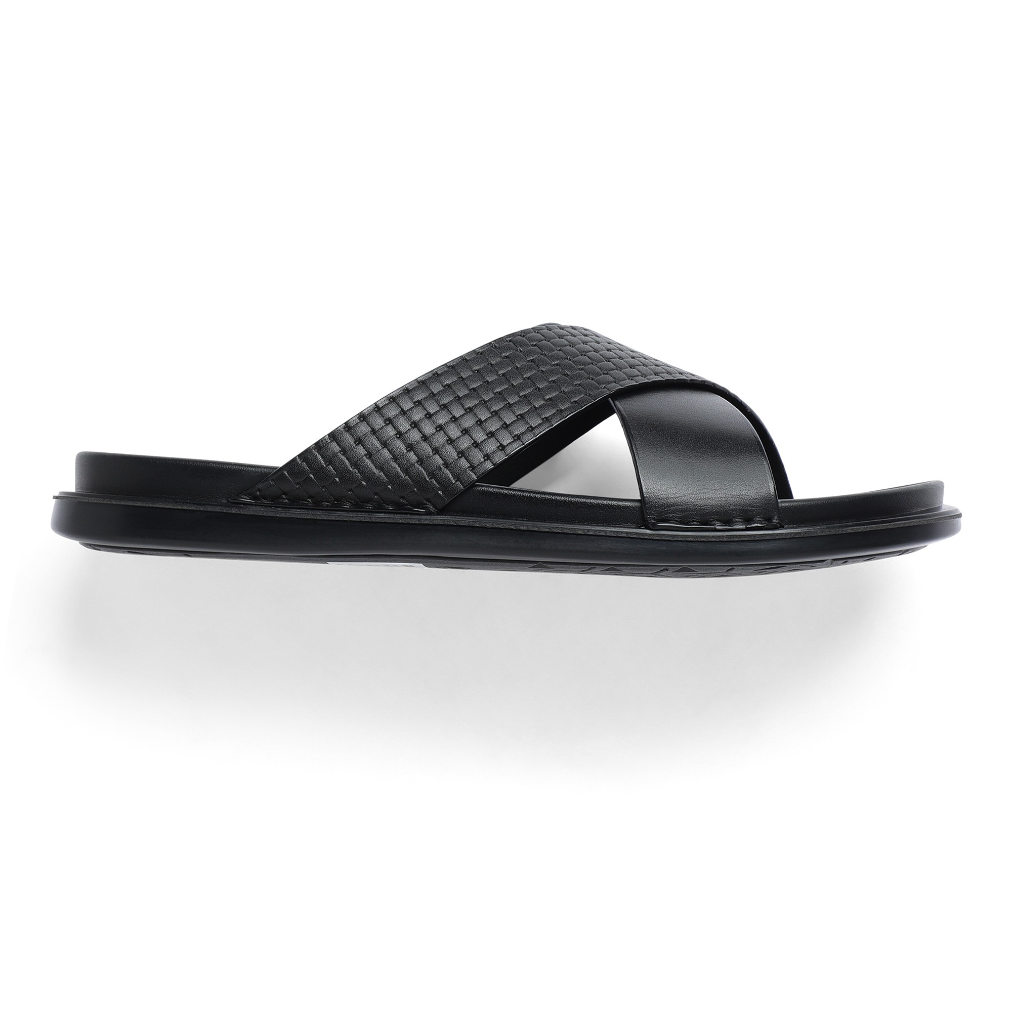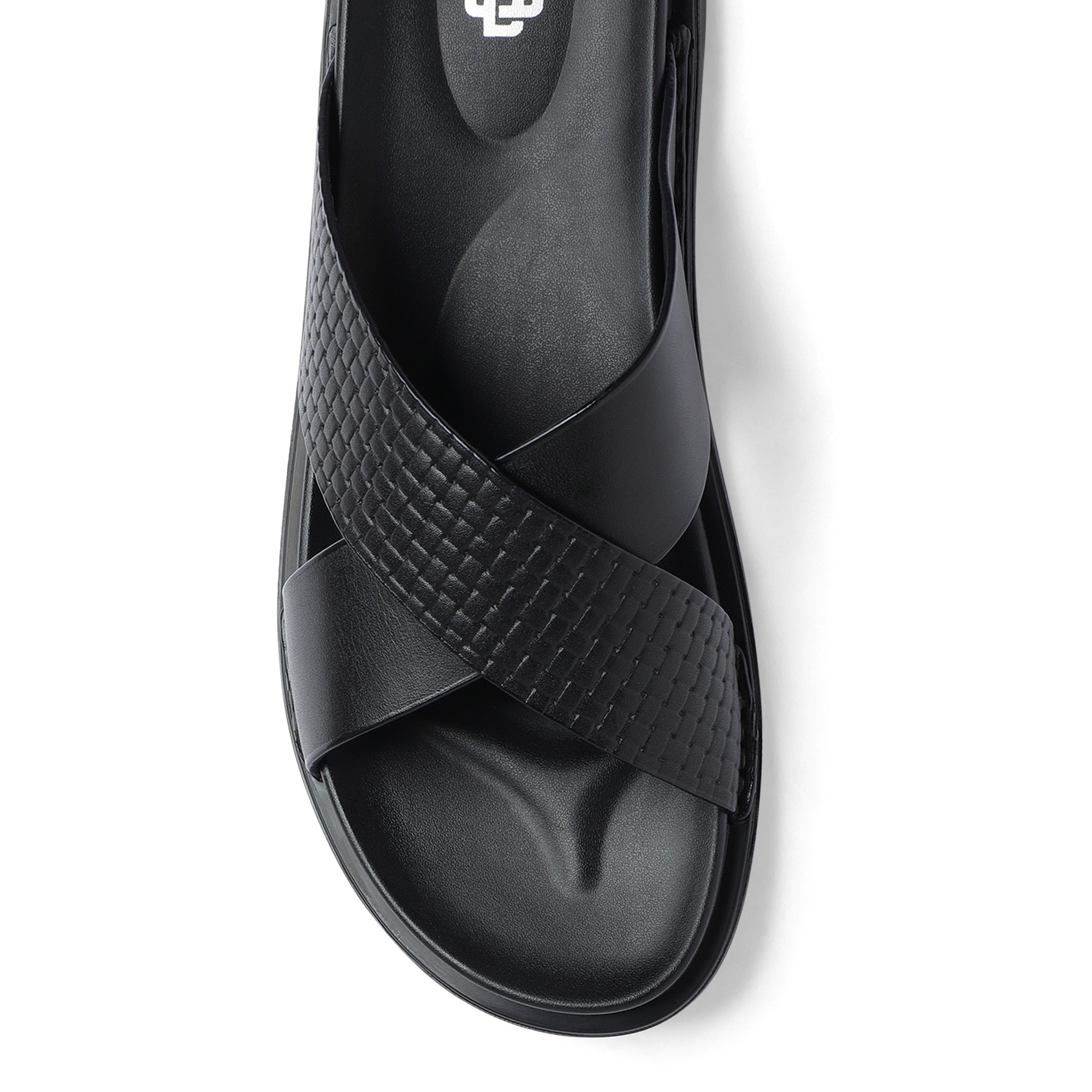 These men's leather sandals seamlessly blend fashion and function. The premium leather construction and contoured footbed deliver all-day comfort, while the modern black design effortlessly complements any casual outfit. Transition from the office to the beach with ease in these versatile, stylish sandals.
