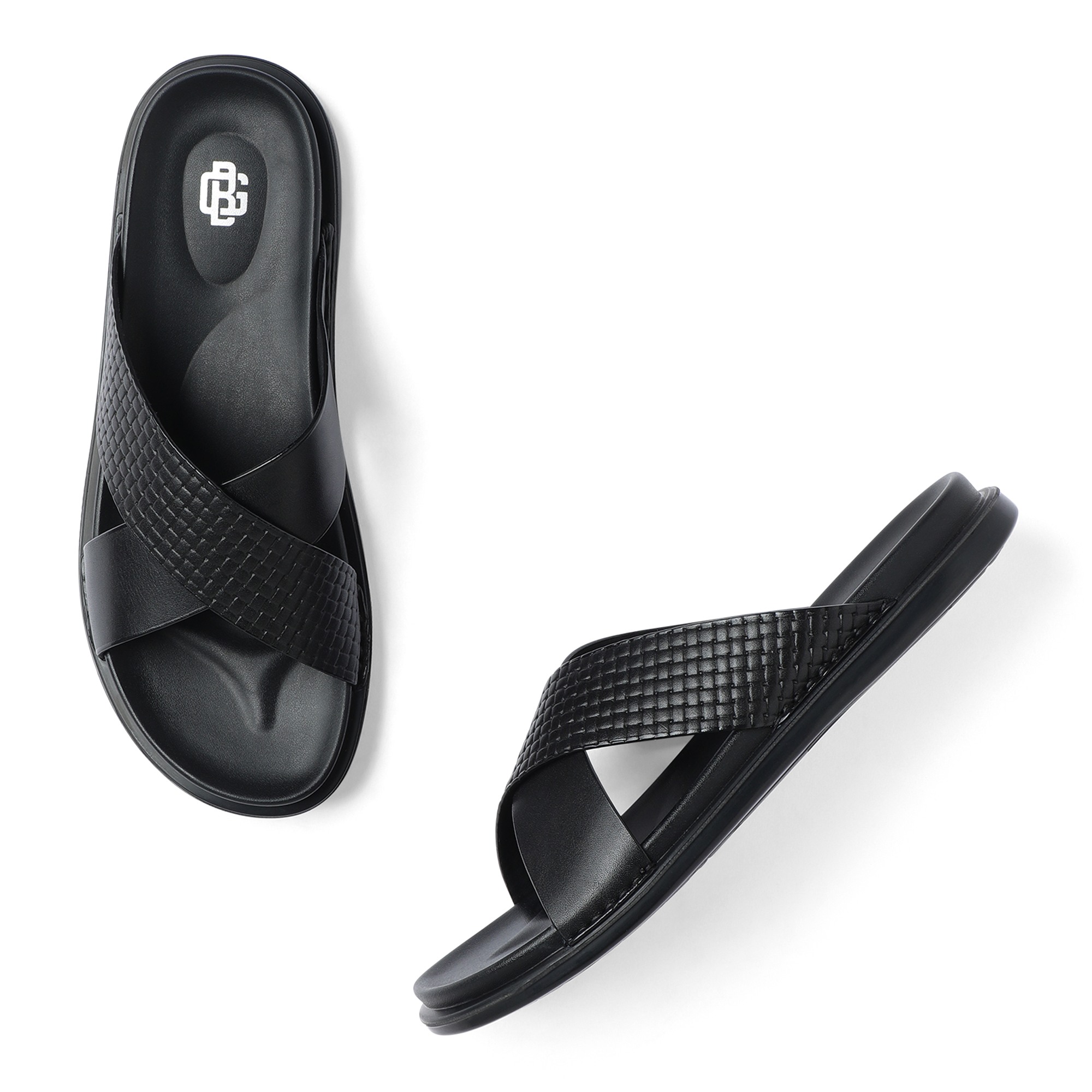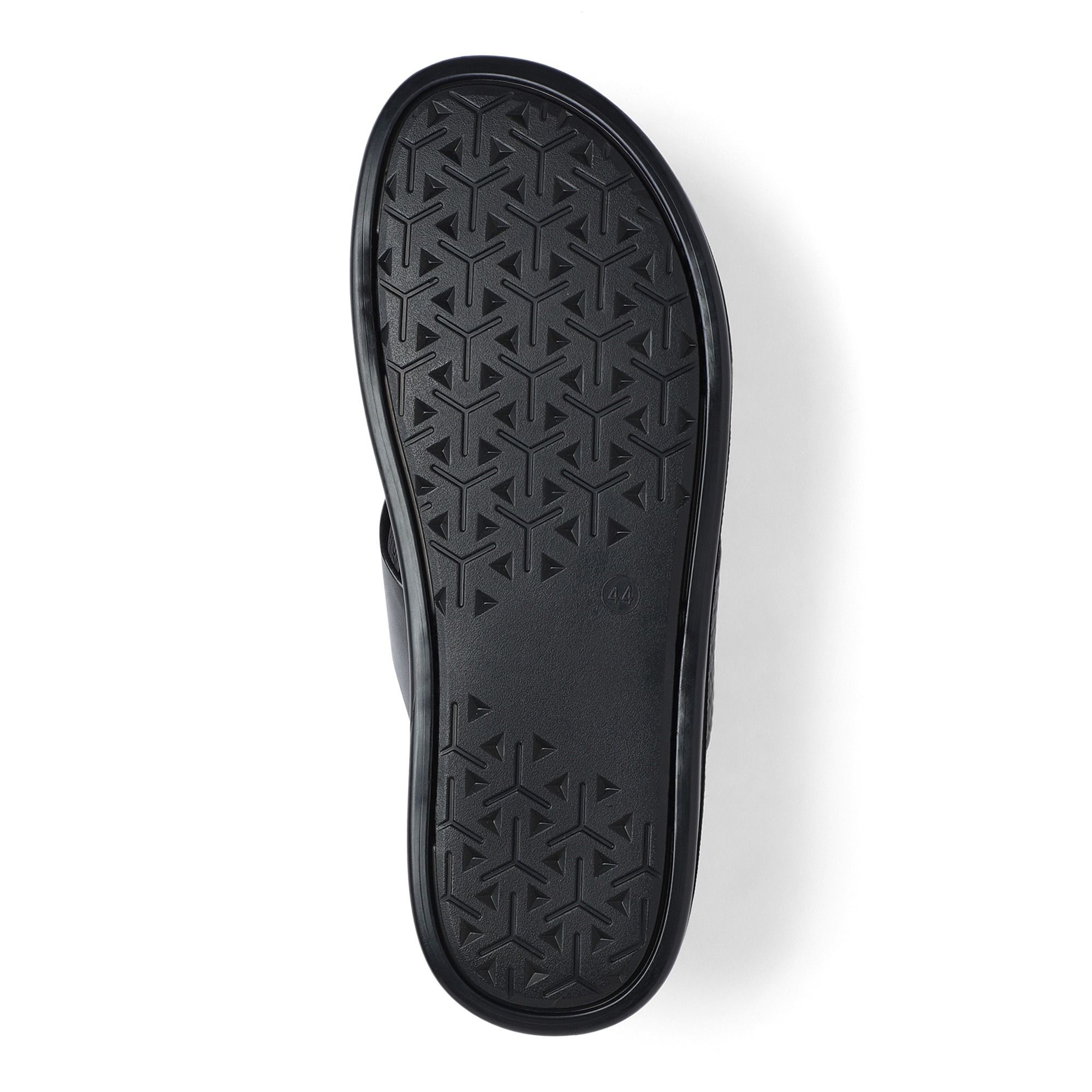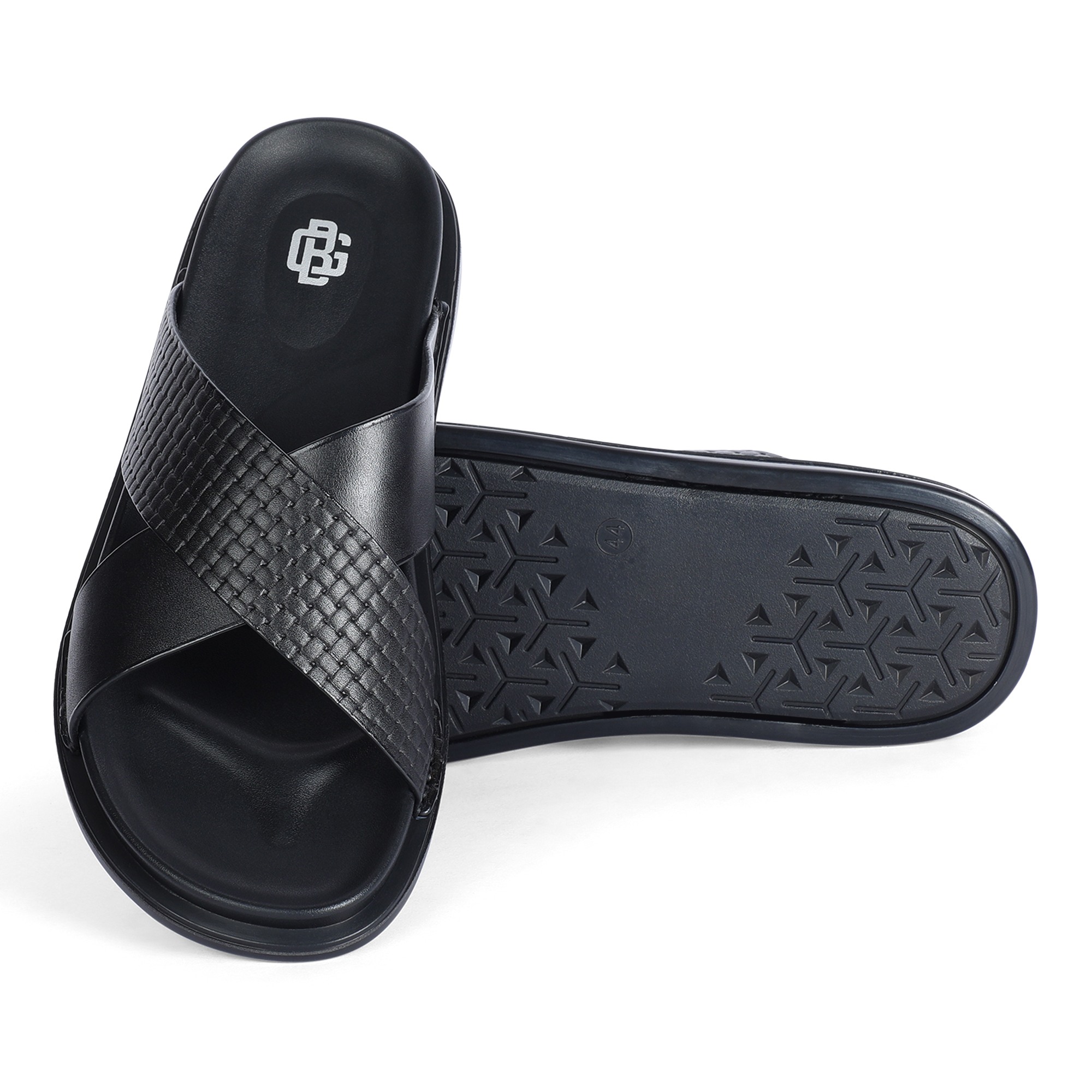 These men's leather sandals seamlessly blend fashion and function. The premium leather construction and contoured footbed deliver all-day comfort, while the modern black design effortlessly complements any casual outfit. Transition from the office to the beach with ease in these versatile, stylish sandals.