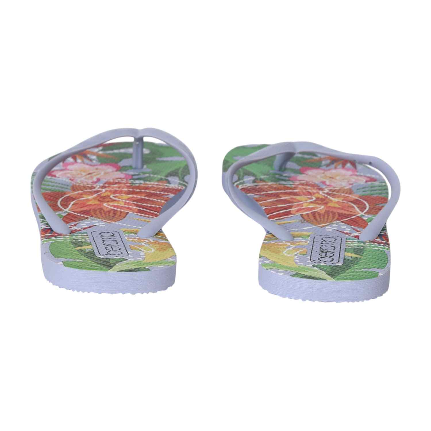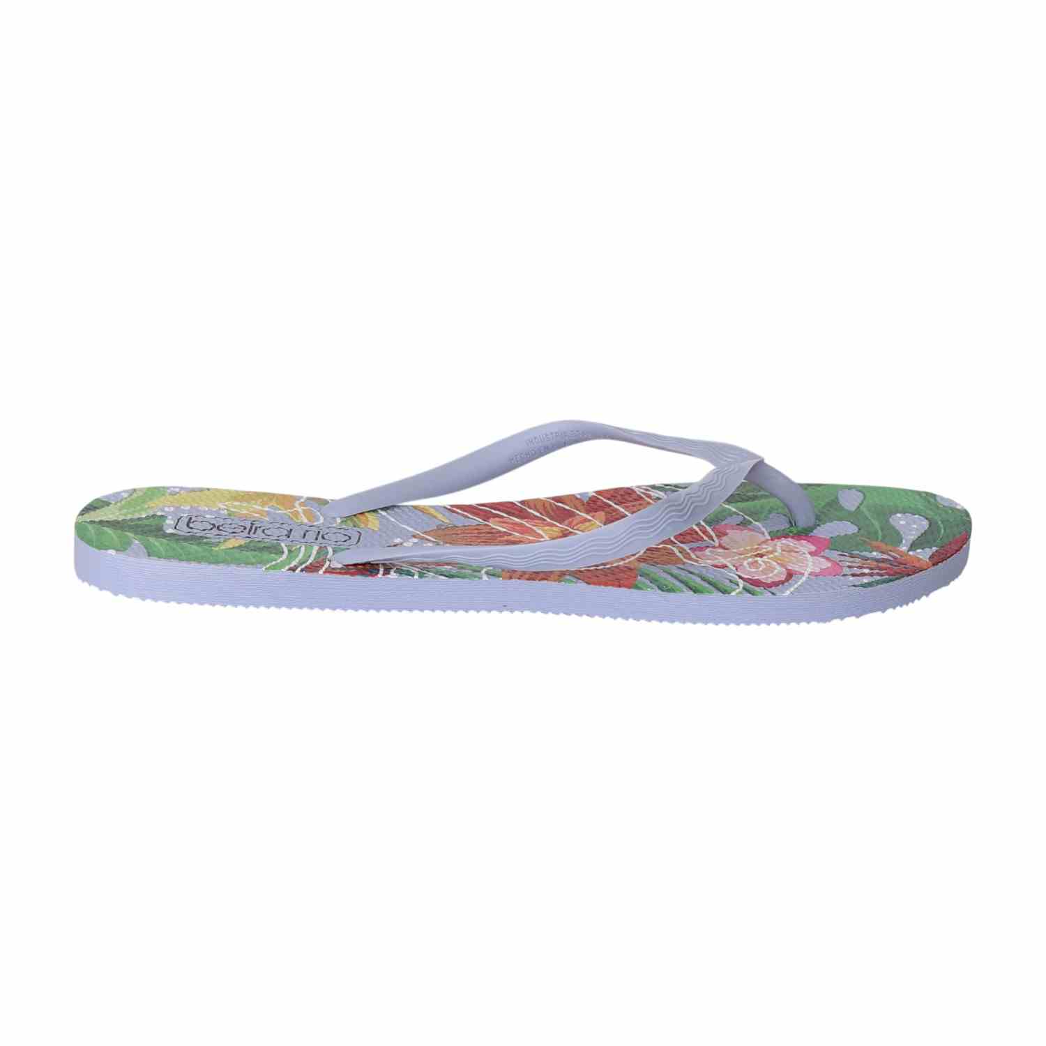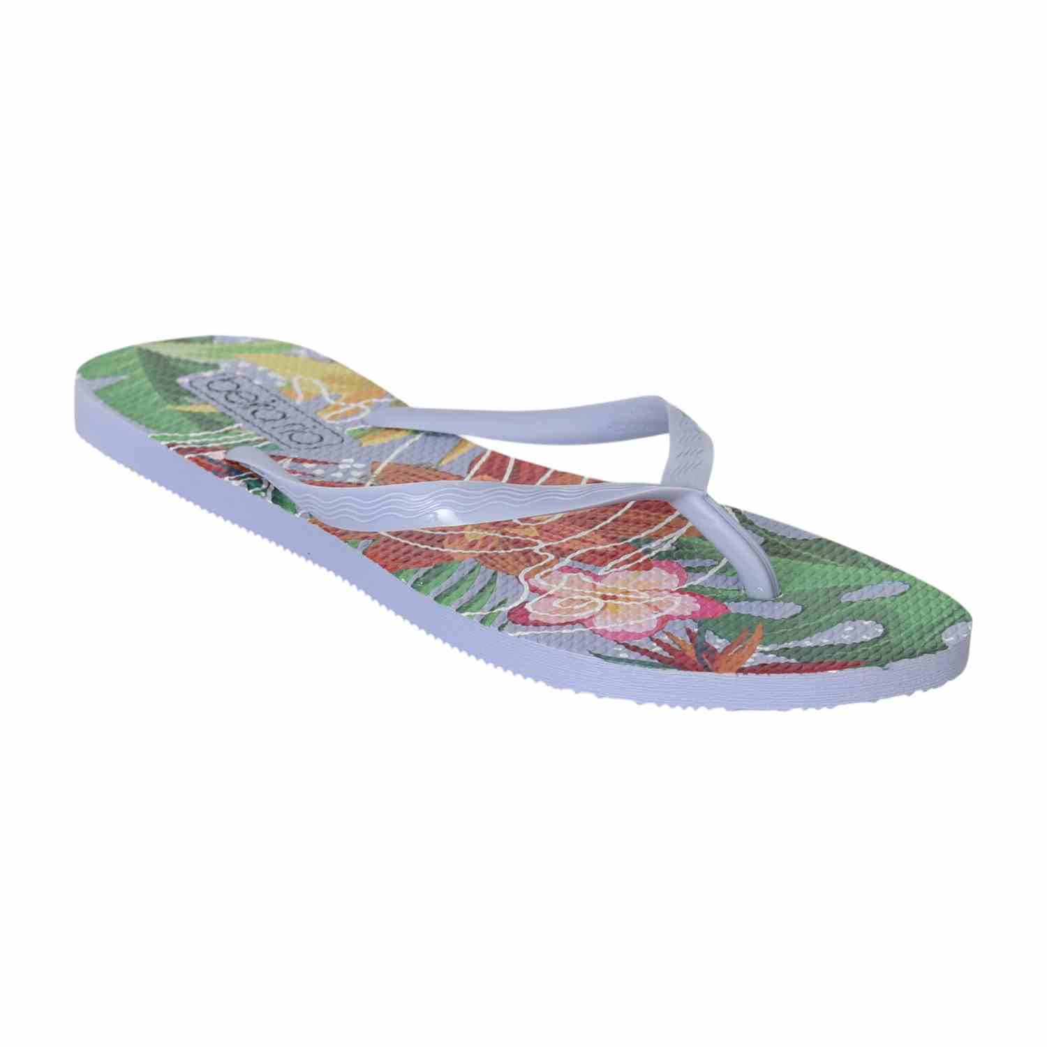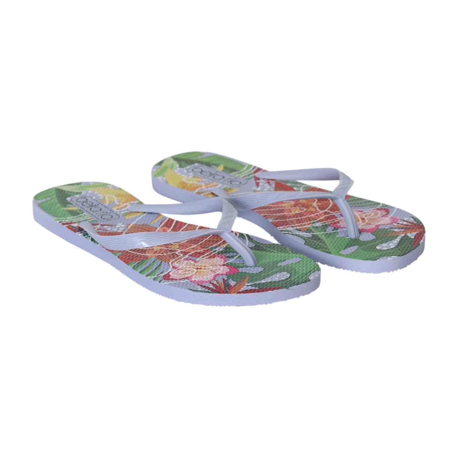 Feel the island vibes wherever you go with these floral flip-flops. Designed for all-day comfort and effortless summer style, the Blue strap adds a neutral balance to the vibrant tropical sole.