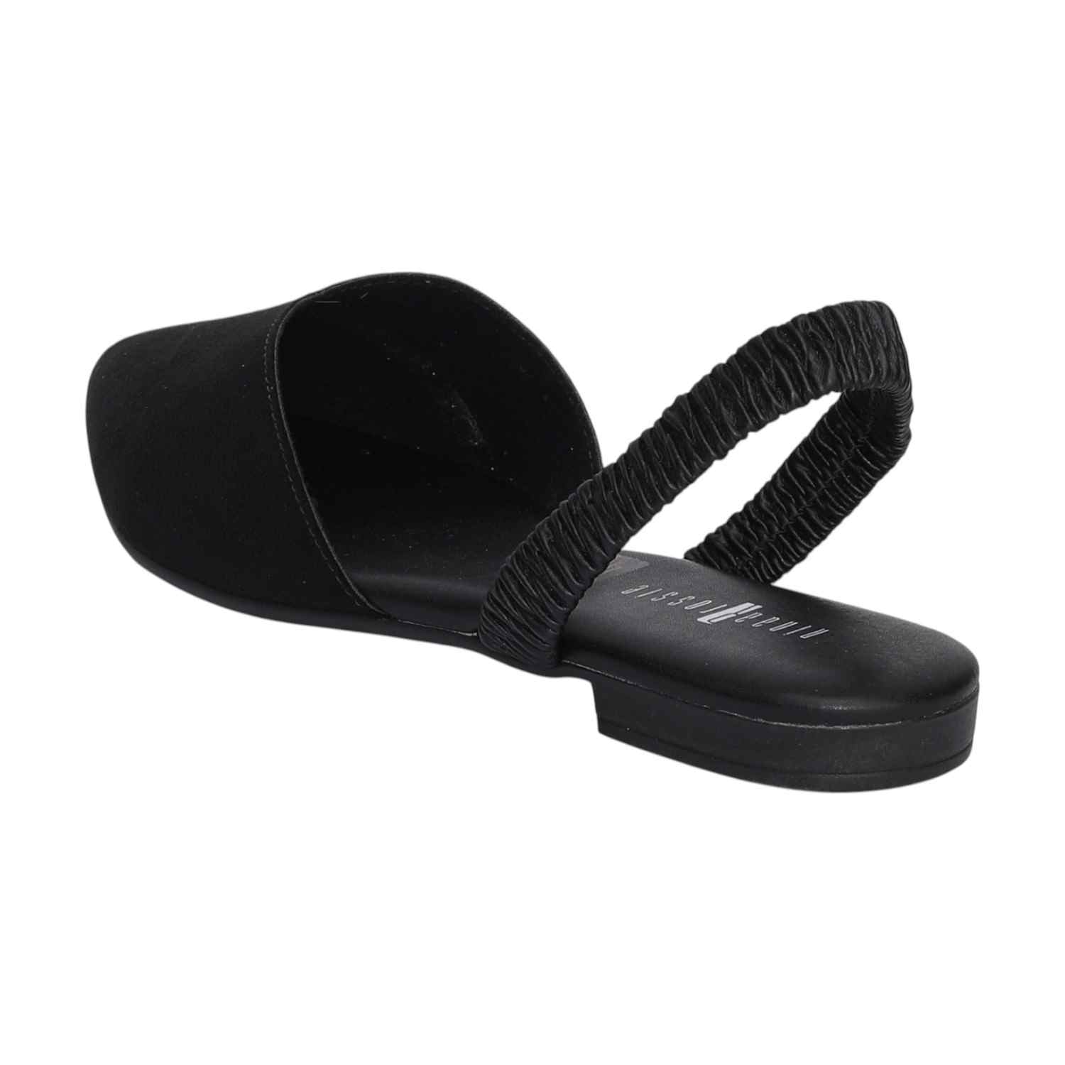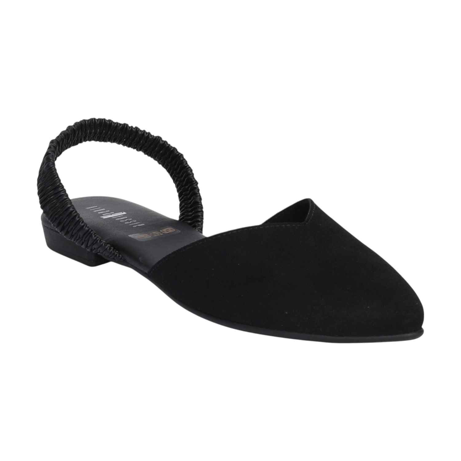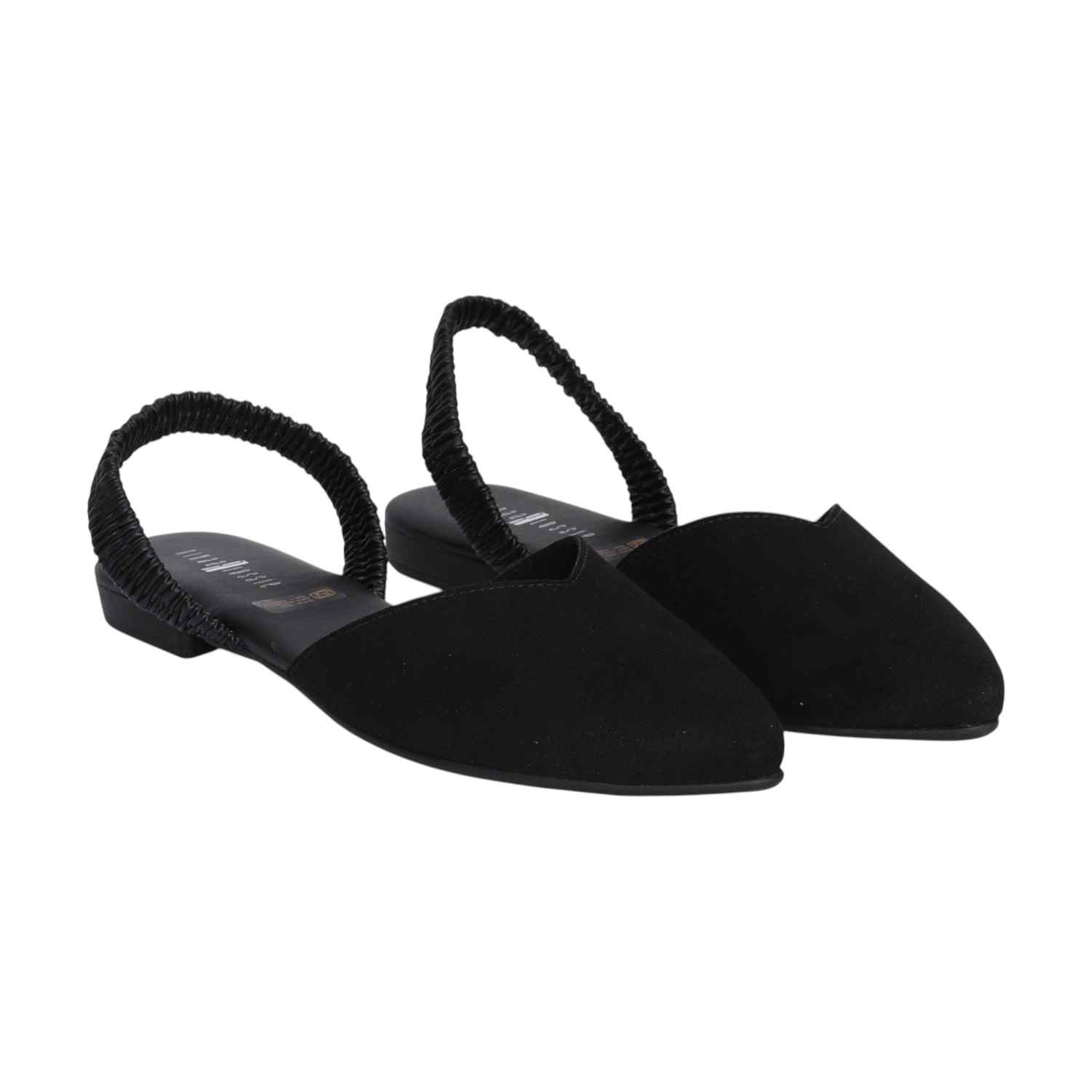 Step into timeless elegance and comfort with our Black Suede Slingback Flats for Women. These sophisticated flats feature a sleek pointed toe and a wide, soft suede-like vamp that extends gracefully along the sides of the foot. Designed with a secure and flexible elasticated slingback strap for an adaptive fit, and a thin, flat sole, these sandals are perfect for adding a chic and comfortable touch to both casual and semi-formal ensembles