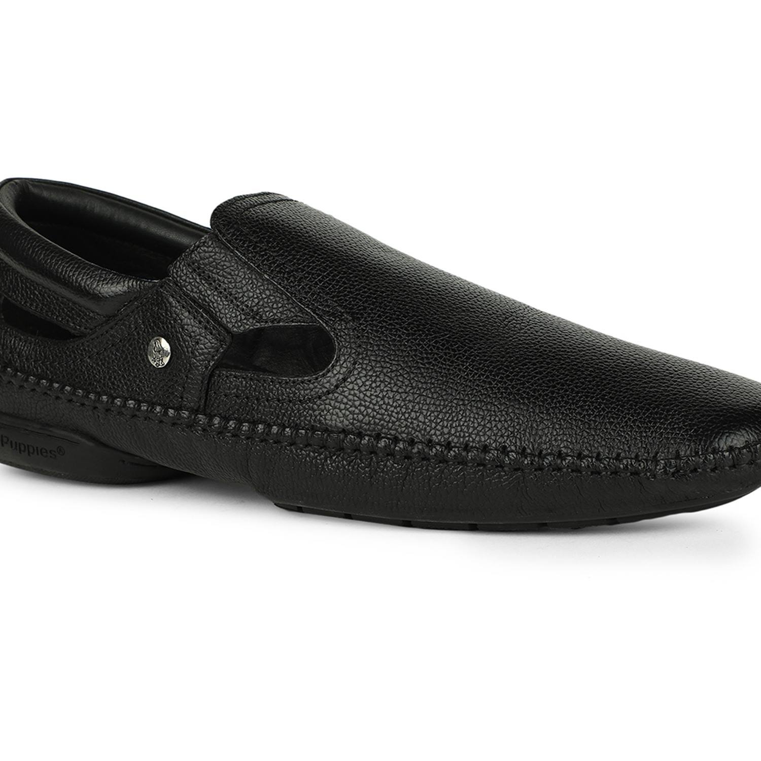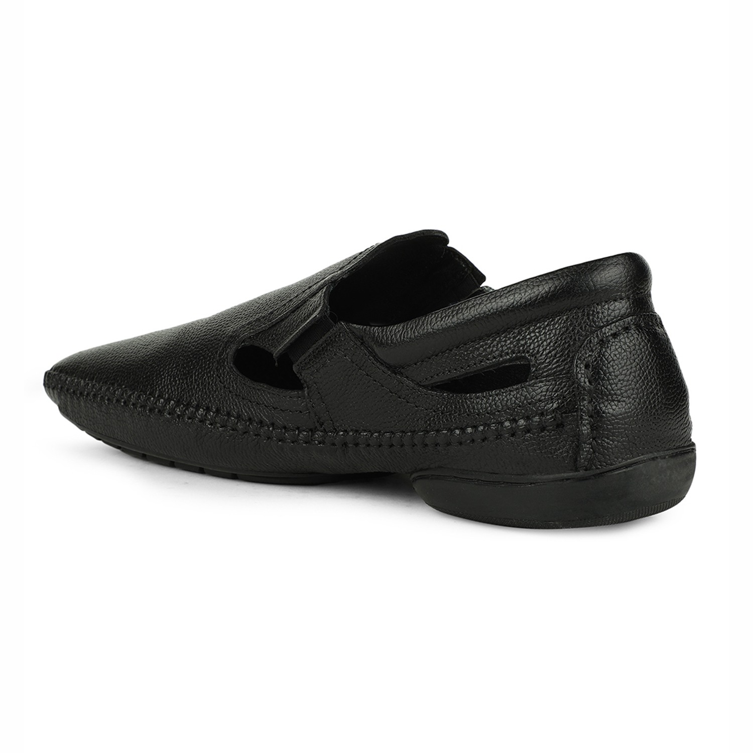 This classy pair of black closed-toe sandals are a perfect addition to your footwear closet. the upper of this sandal is made of genuine leather and the sole is constructed of high-grade tpr material that renders durability and is lightweight. wear it through the day for a casual outing with friends or to the movie theater. this trendy pair will ensure that you look fashionable and stay comfortable.