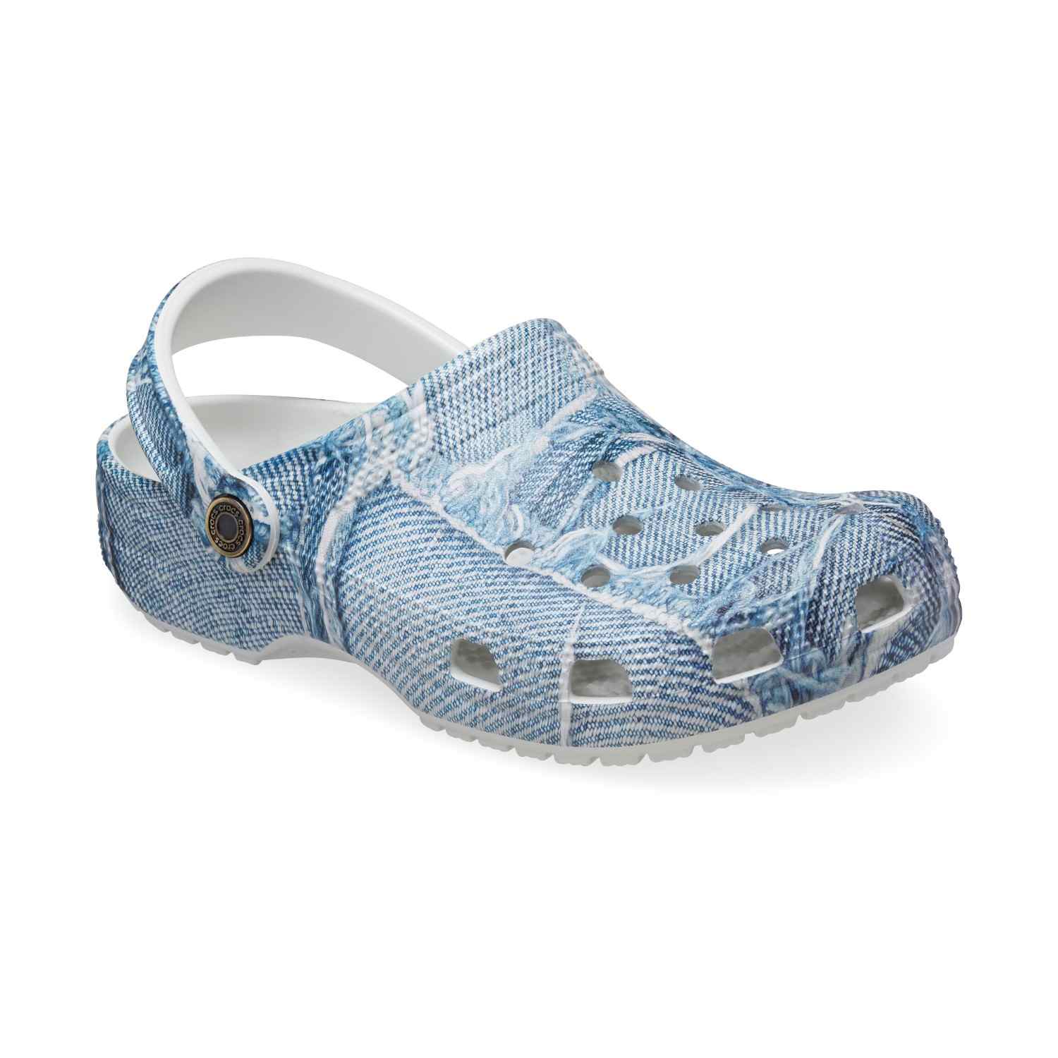 A new denim graphic and denim inspired backstrap rivets provide extra style to this version of the iconic clog. The unique graphic and rivets give these clogs a modern, fashionable look, and Croslite™ foam construction keeps them light and easy to wear. Grounded in comfort, spiked with personality.