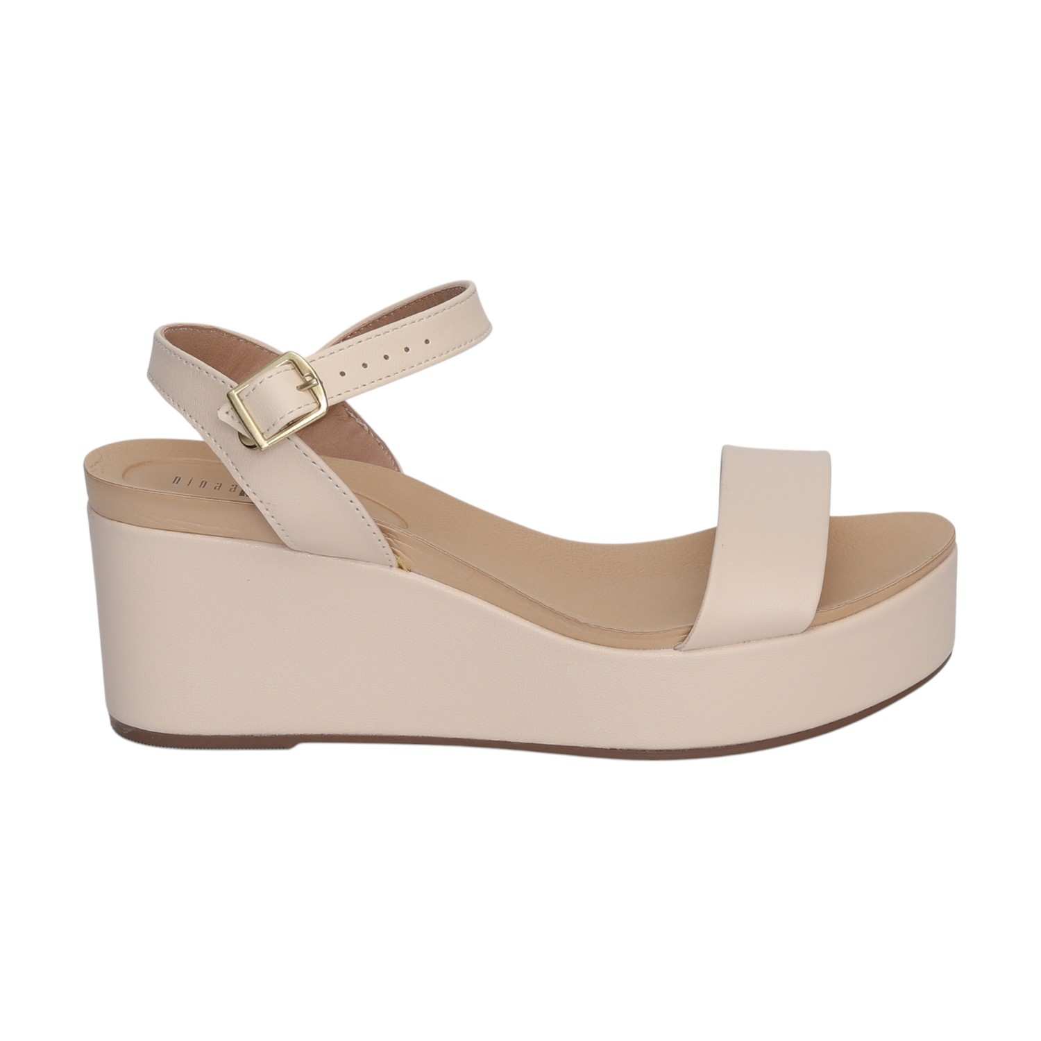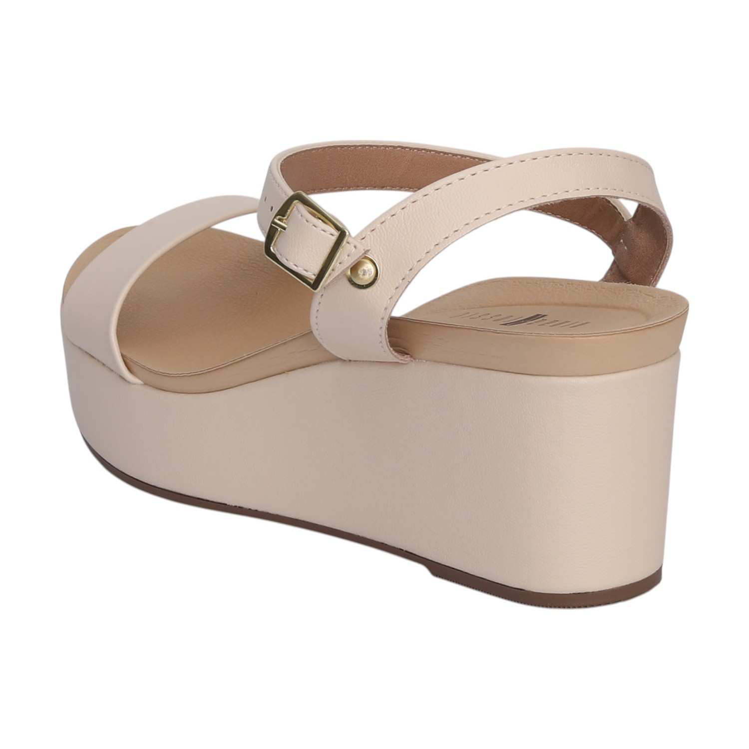 Elevate your style with our Minimalist Wedge Platforms. These chic sandals boast a clean, streamlined design in a versatile light beige hue. Featuring a wide strap across the toes and a delicate ankle strap with a sophisticated gold-toned buckle, they offer both support and elegance. The prominent, uniform platform wedge sole provides a comfortable lift, making them ideal for adding a modern, elevated touch to any outfit, from casual to dressy-casual.