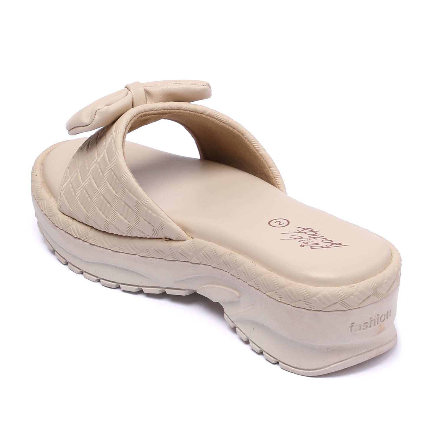 Let your little one step out in style with these adorable Cream platform sandals for girls. Designed for comfort and cuteness, these sandals feature a soft, cushioned sole and an easy slip-on style—perfect for everyday adventures. The textured strap is accented with a charming bow, adding a playful and girly touch.