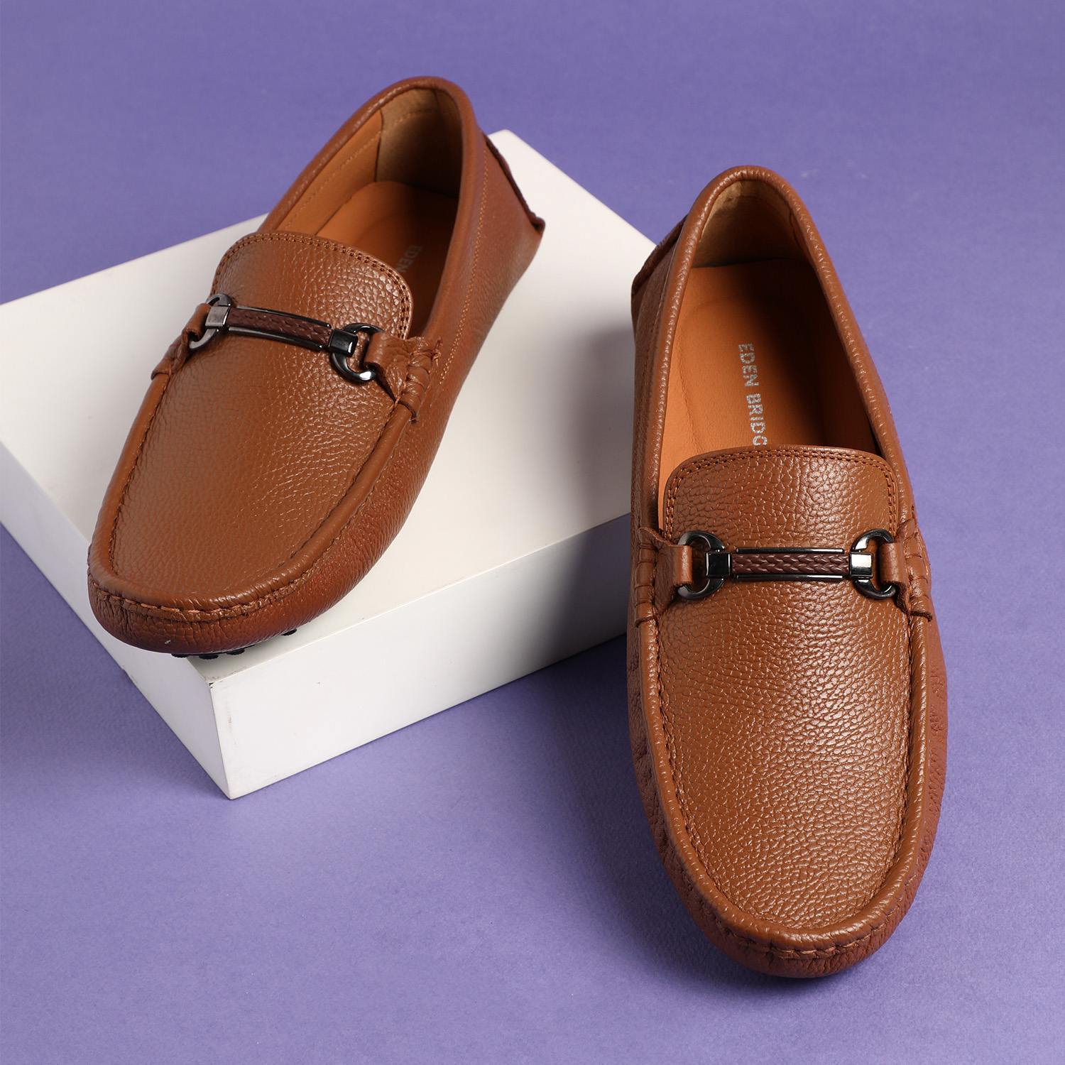 Step up your casual style with the Eden Bridge Men Tan Slip-Ons. The premium leather construction and flexible rubber sole provide the perfect blend of sophistication and comfort. Whether you're running errands or meeting up with friends, these slip-ons will keep you looking and feeling your best all day long.