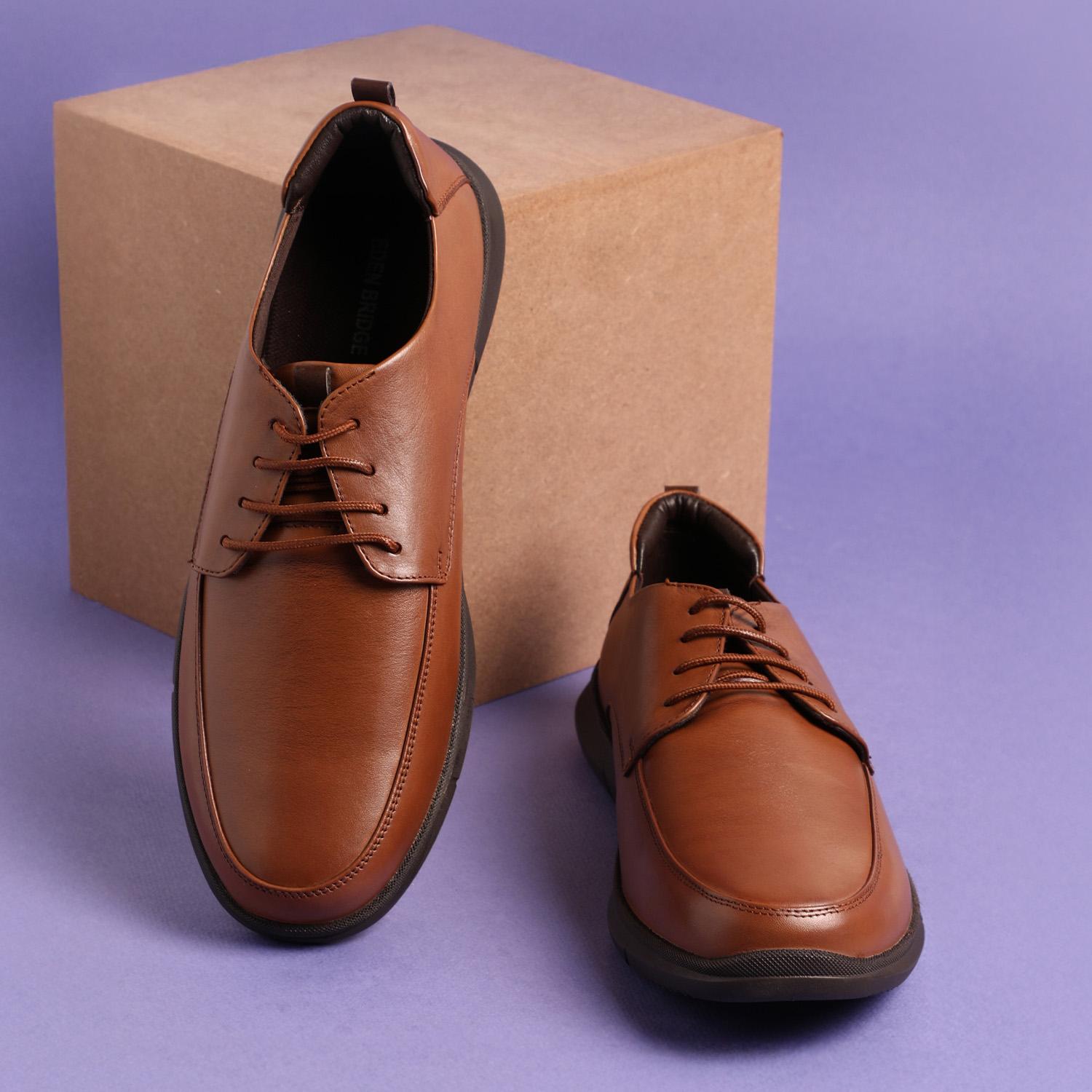 These tan dress shoes are designed to take your look to new heights. Crafted with meticulous attention to detail, the Eden Bridge Lace-Ups blend timeless style with modern comfort. Pair them with your favorite suit, slacks, or chinos for an instantly elevated, polished appearance that will have you feeling confident and put-together.
