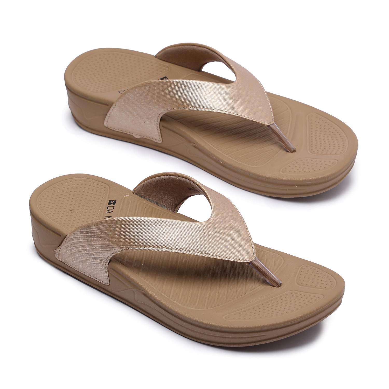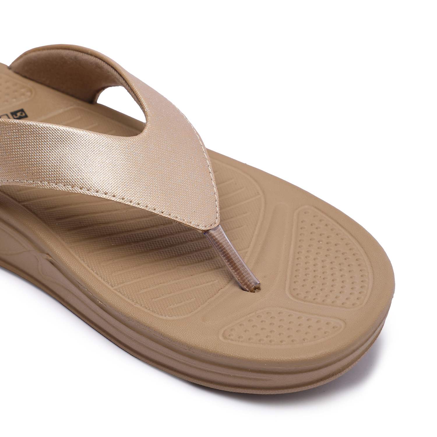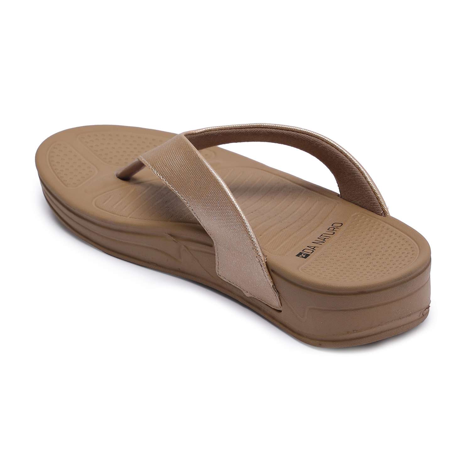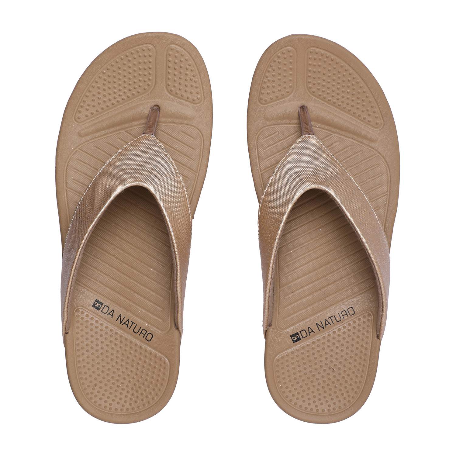Bask in effortless elegance with our Golden Radiance Comfort Slides. These women's thong sandals feature a luxurious gold glitter-finished strap that shimmers with every step, perfectly complementing the soft, matching tan sole for ultimate ease. Designed for both dazzling style and plush support, they are branded with 'DA NATURO' on the insole, making them ideal for adding a touch of golden glamour to your casual look while ensuring all-day comfort