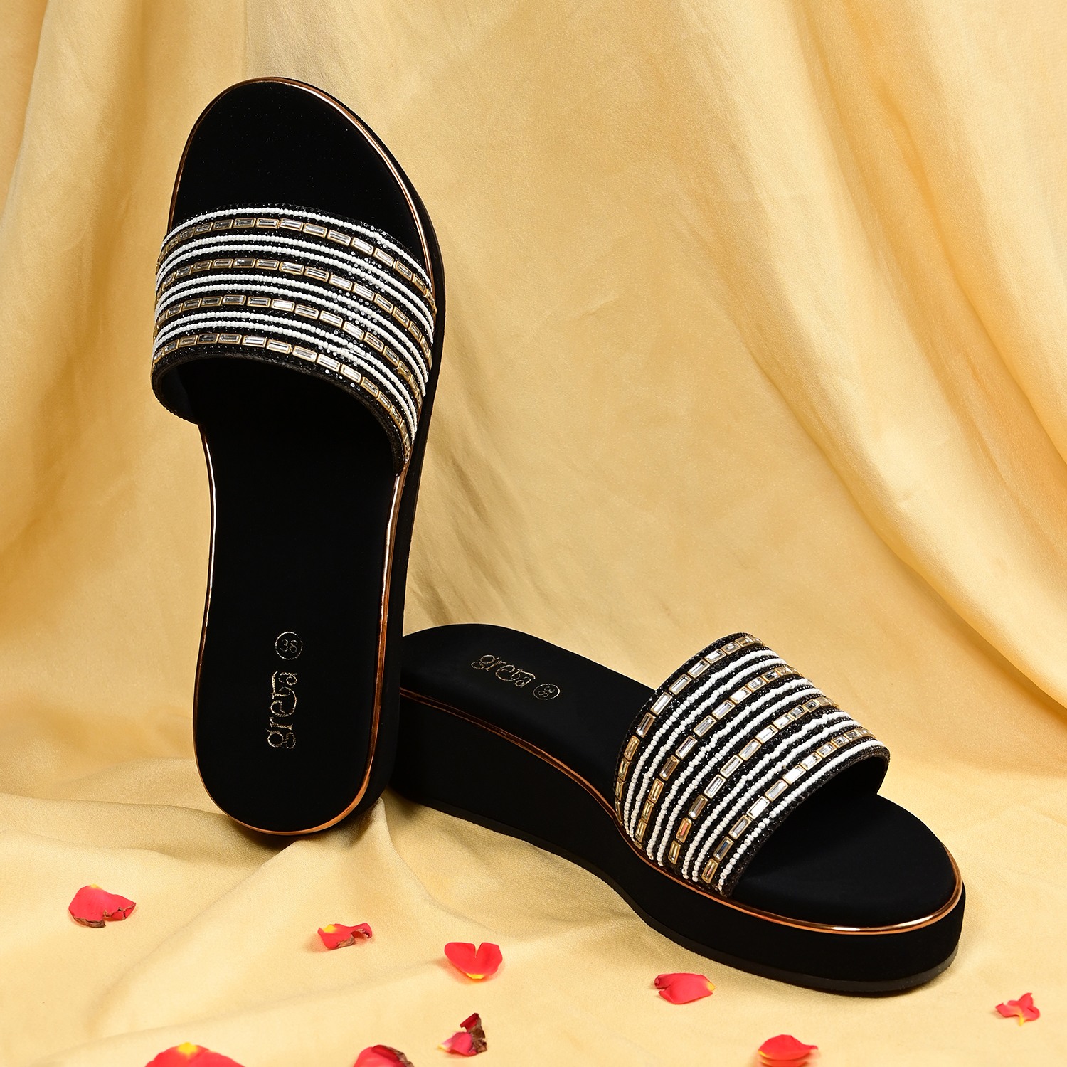 Elevate your look with these sophisticated wedge heels, featuring delicate pearl accents and subtle embellishments. Designed for comfort and style, they offer a graceful lift perfect for formal events and elegant occasions. A timeless addition to any refined wardrobe.