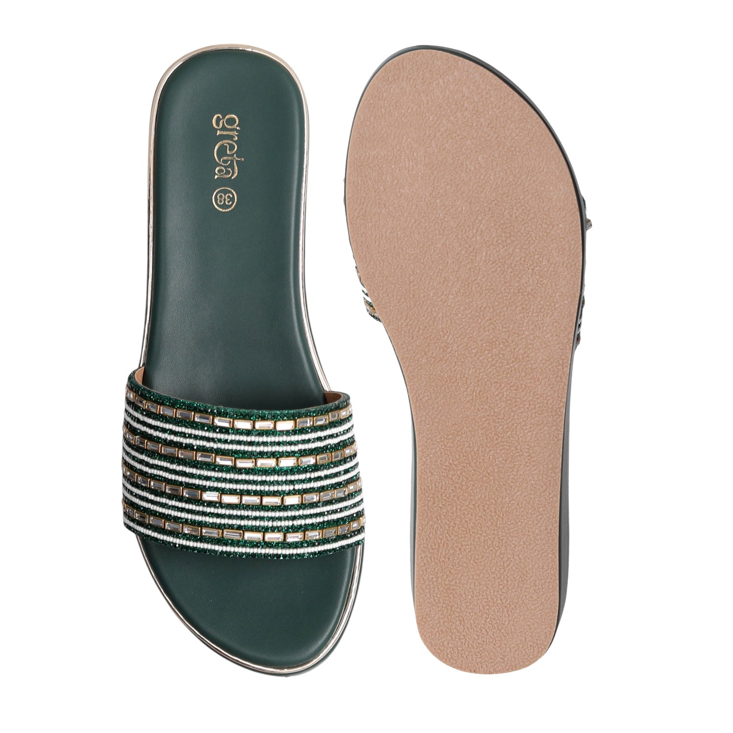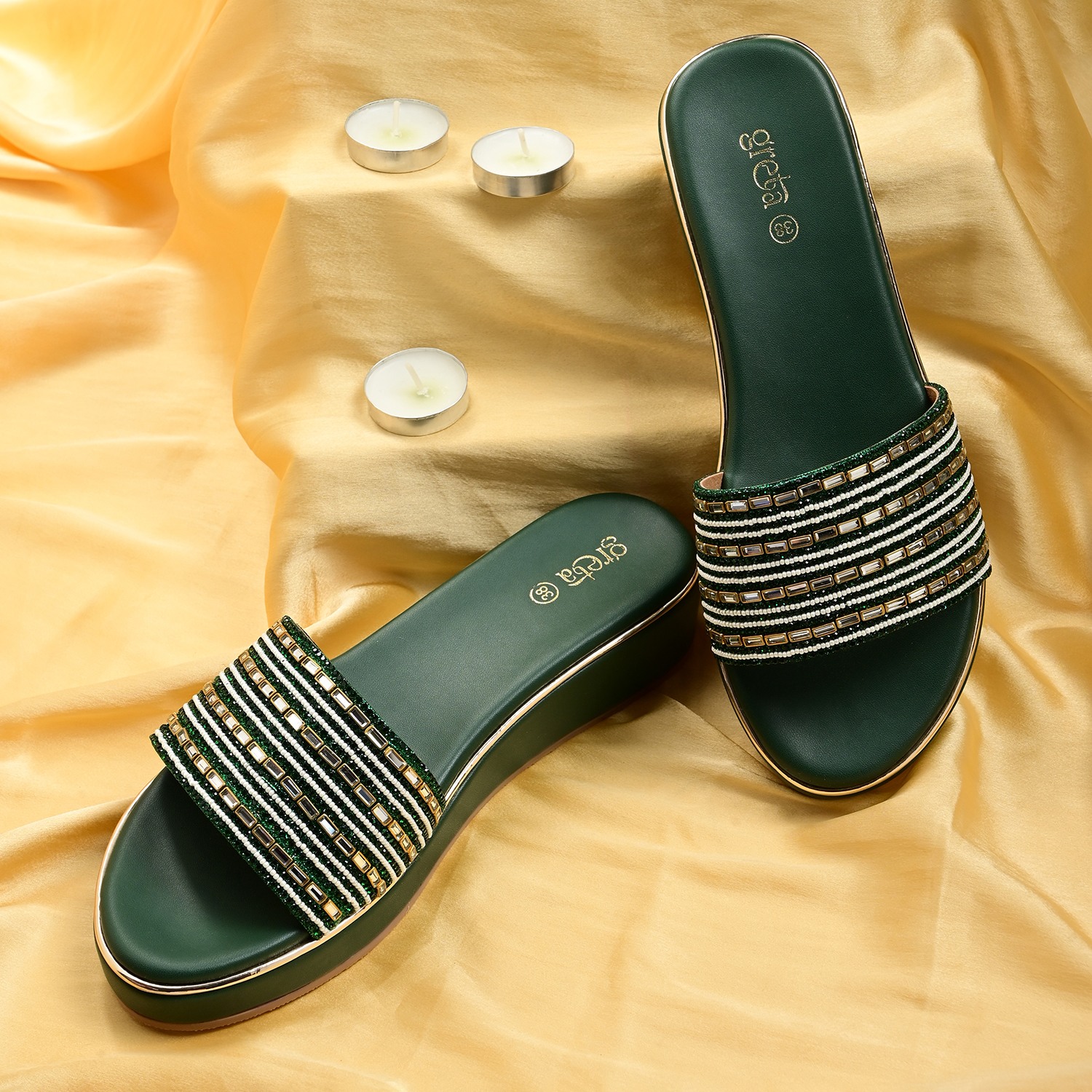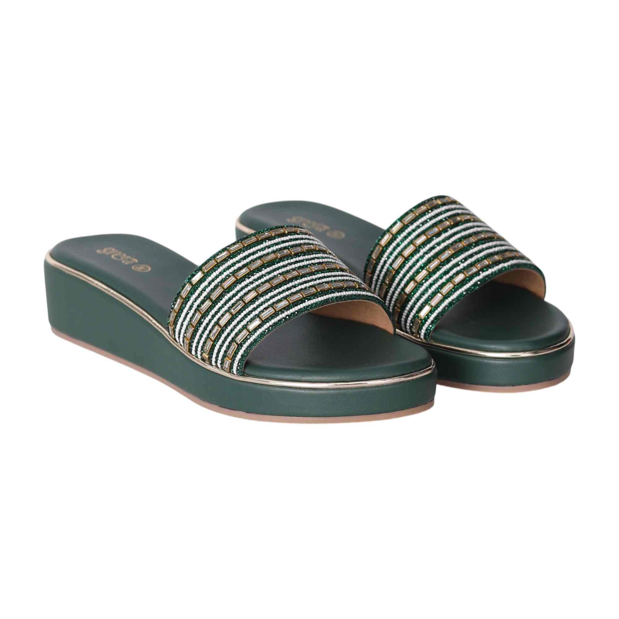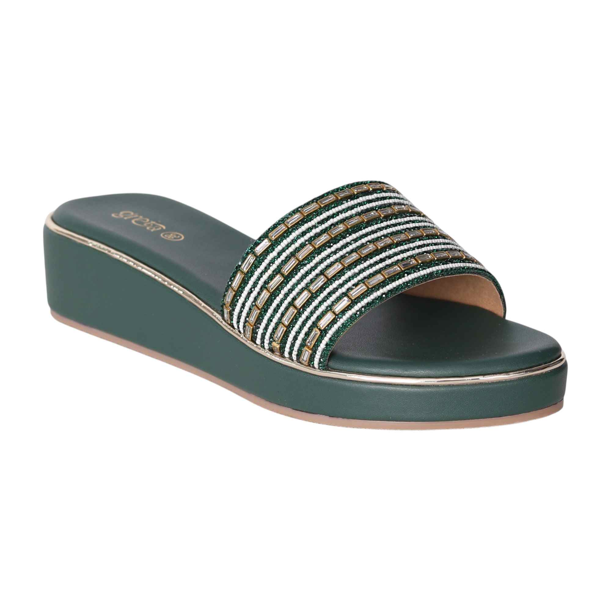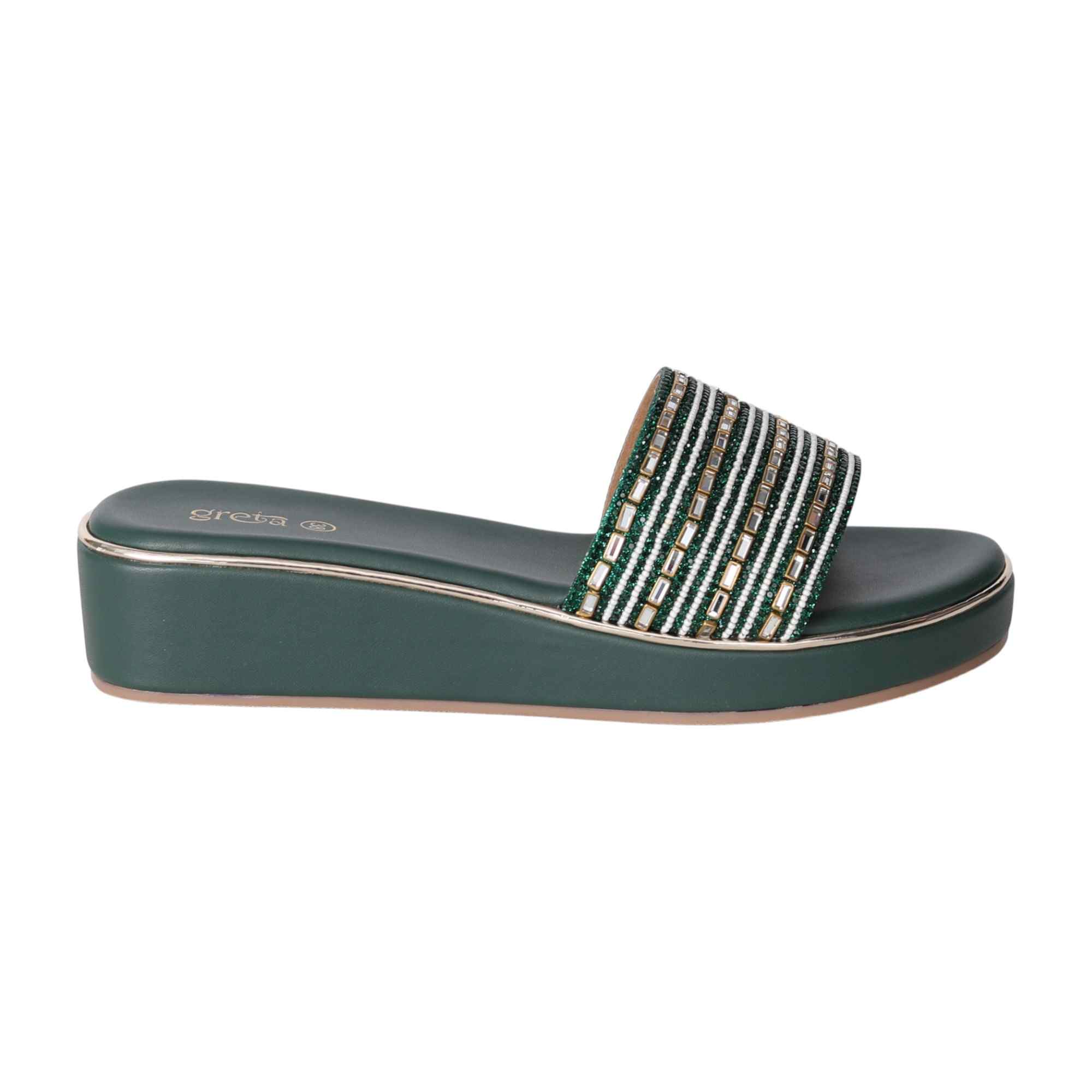 Home / Products / greta / Elegant Pearl-Embellished Green Wedge Heels