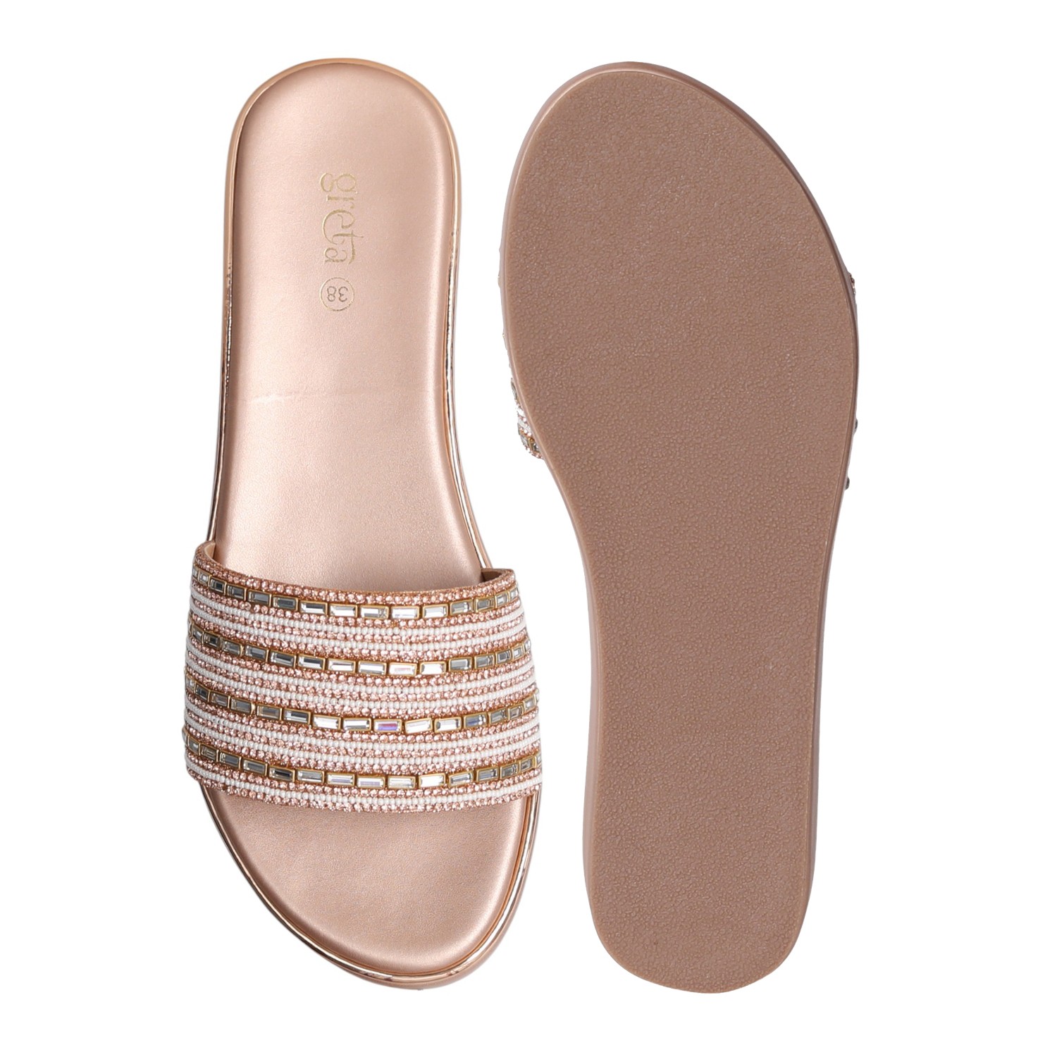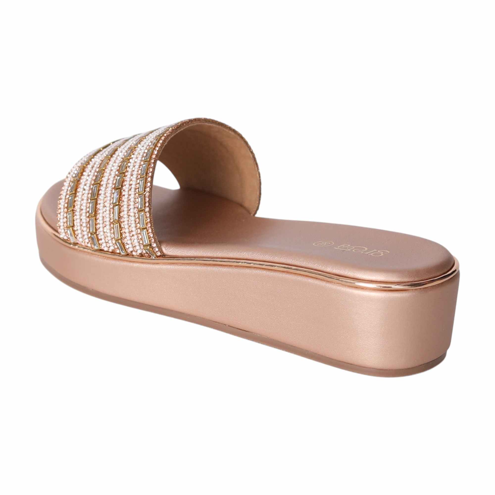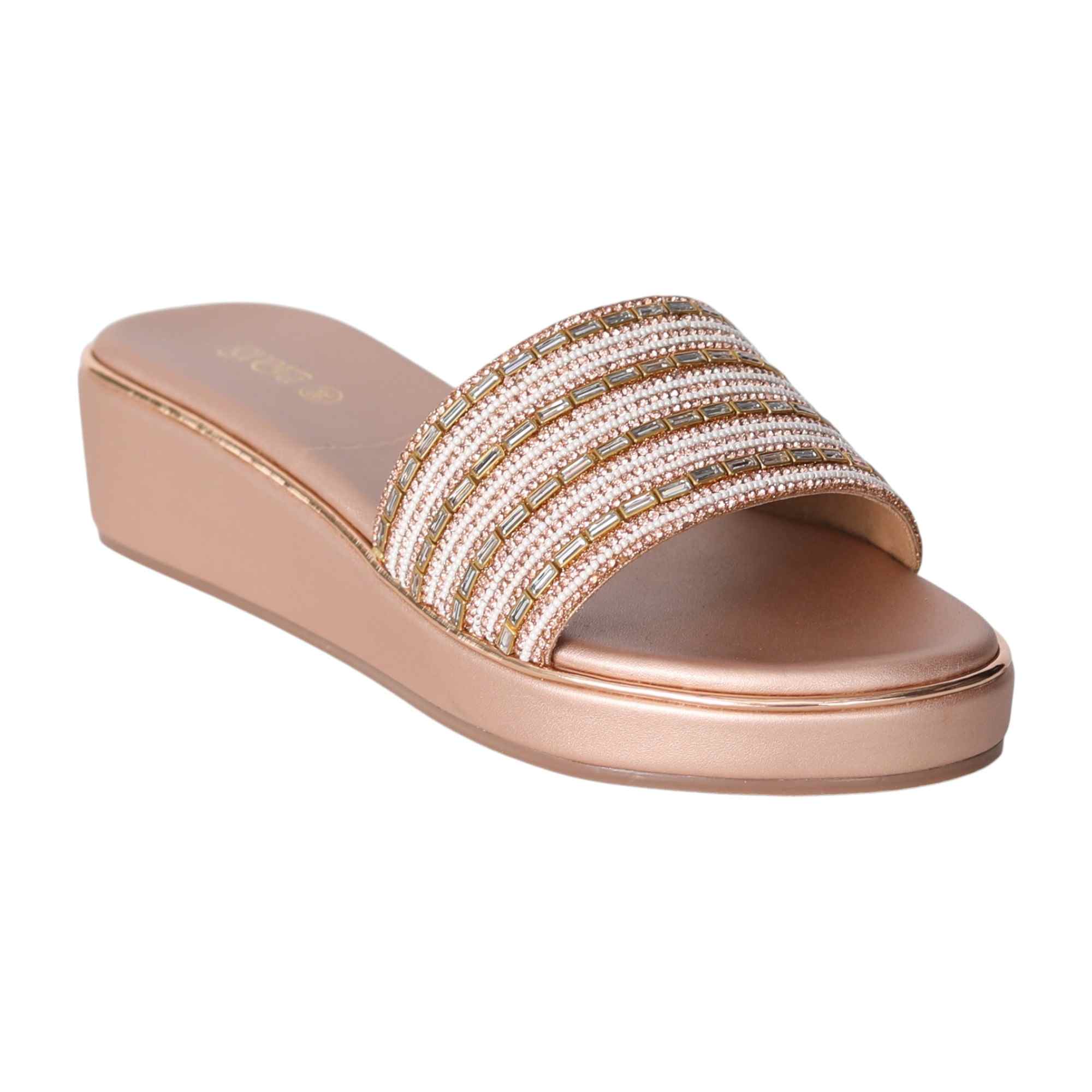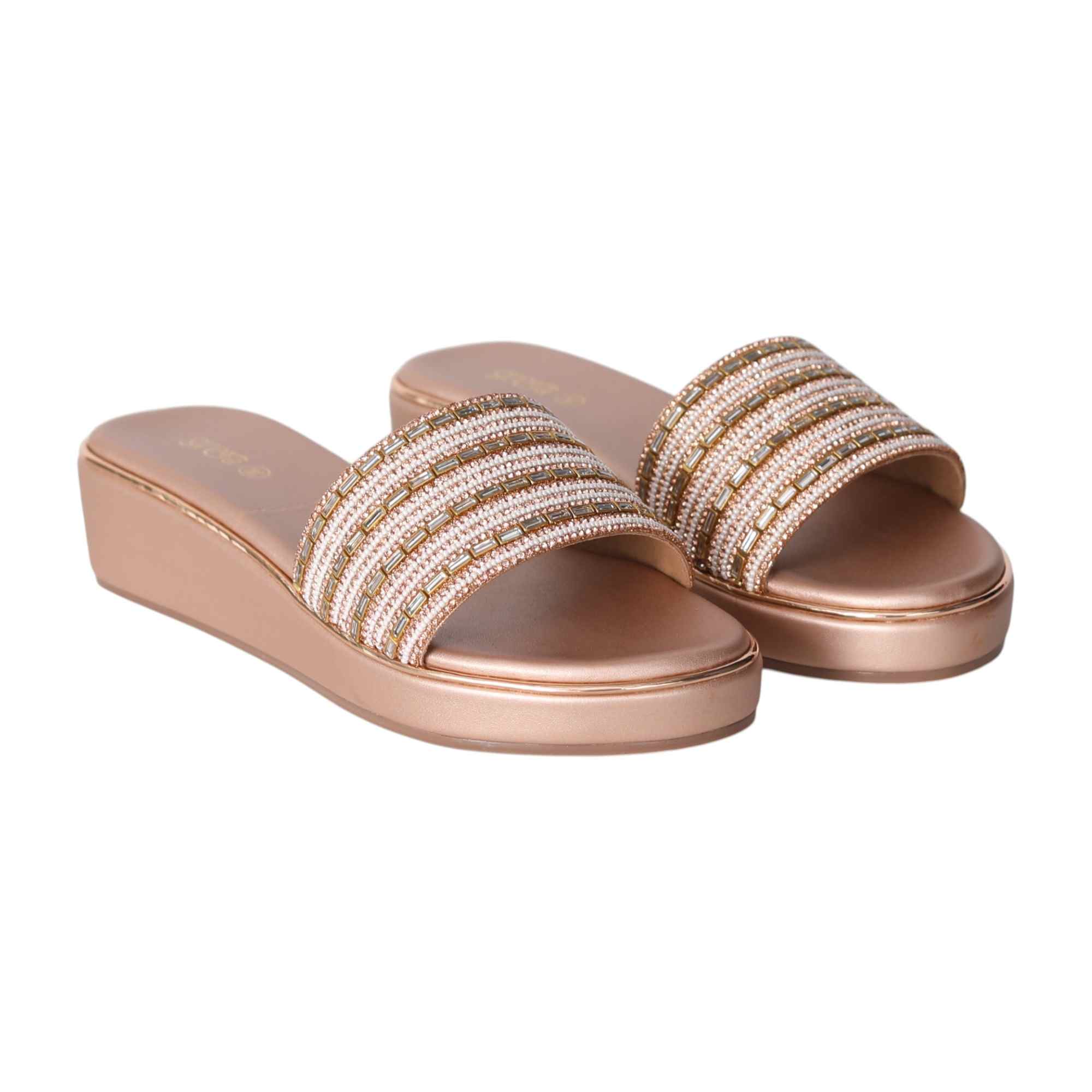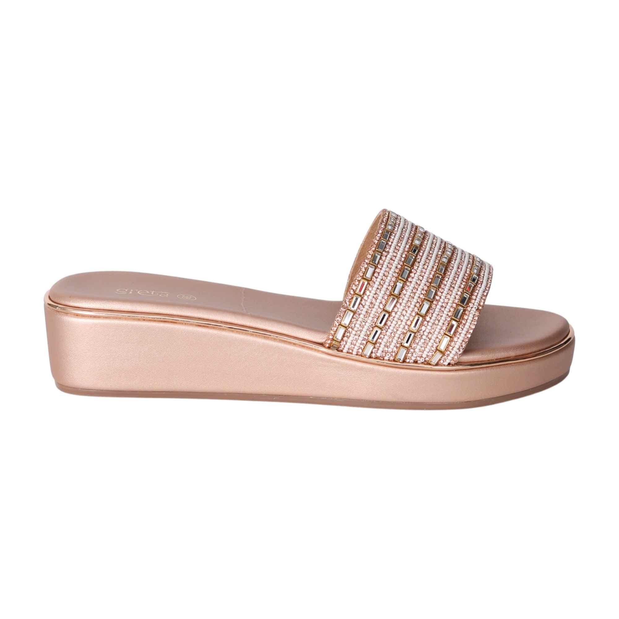Home / Products / greta / Elegant Pearl-Embellished Rose Gold Wedge Heels