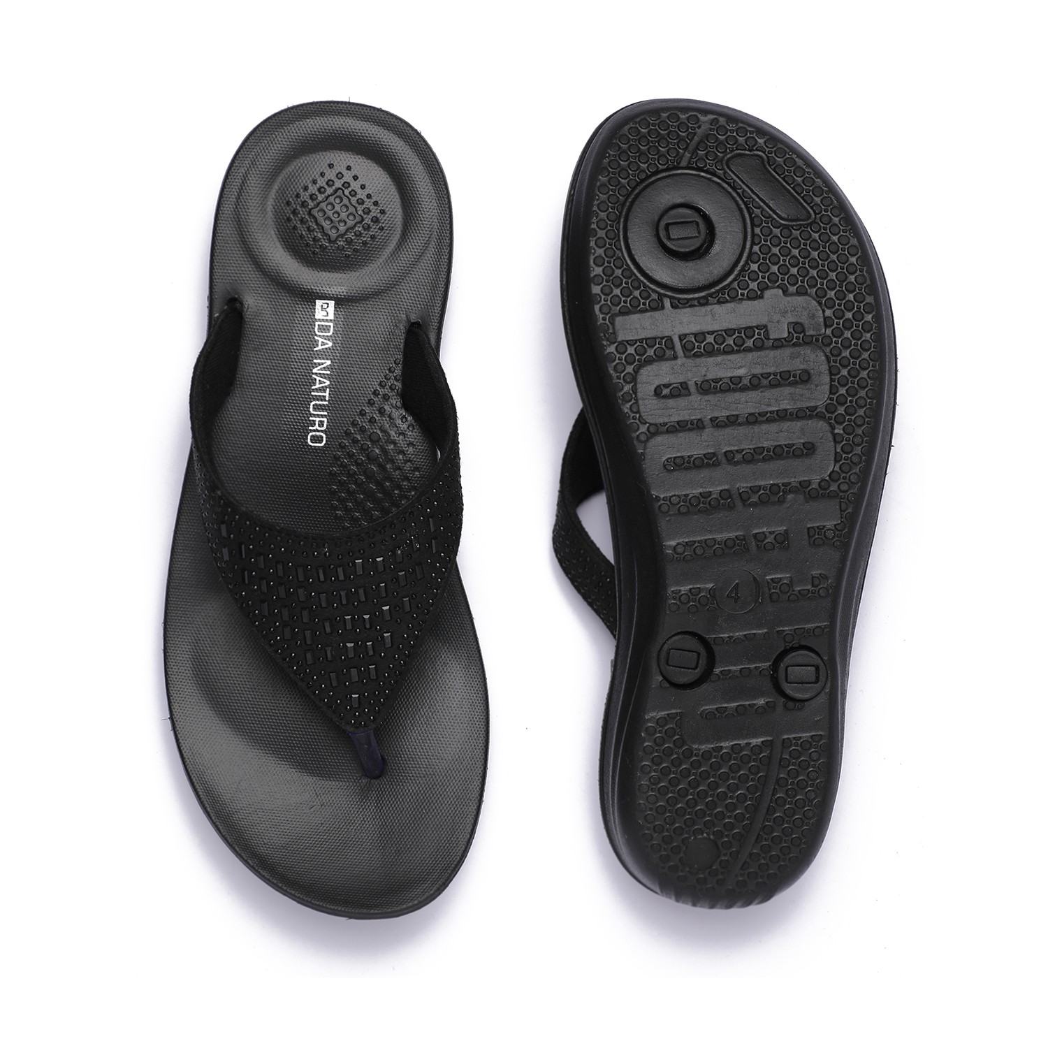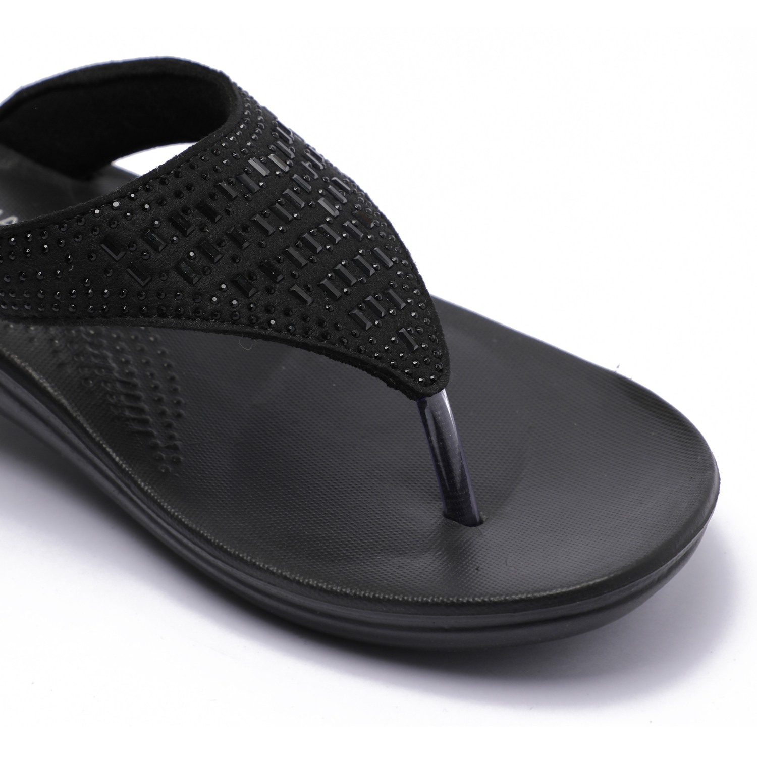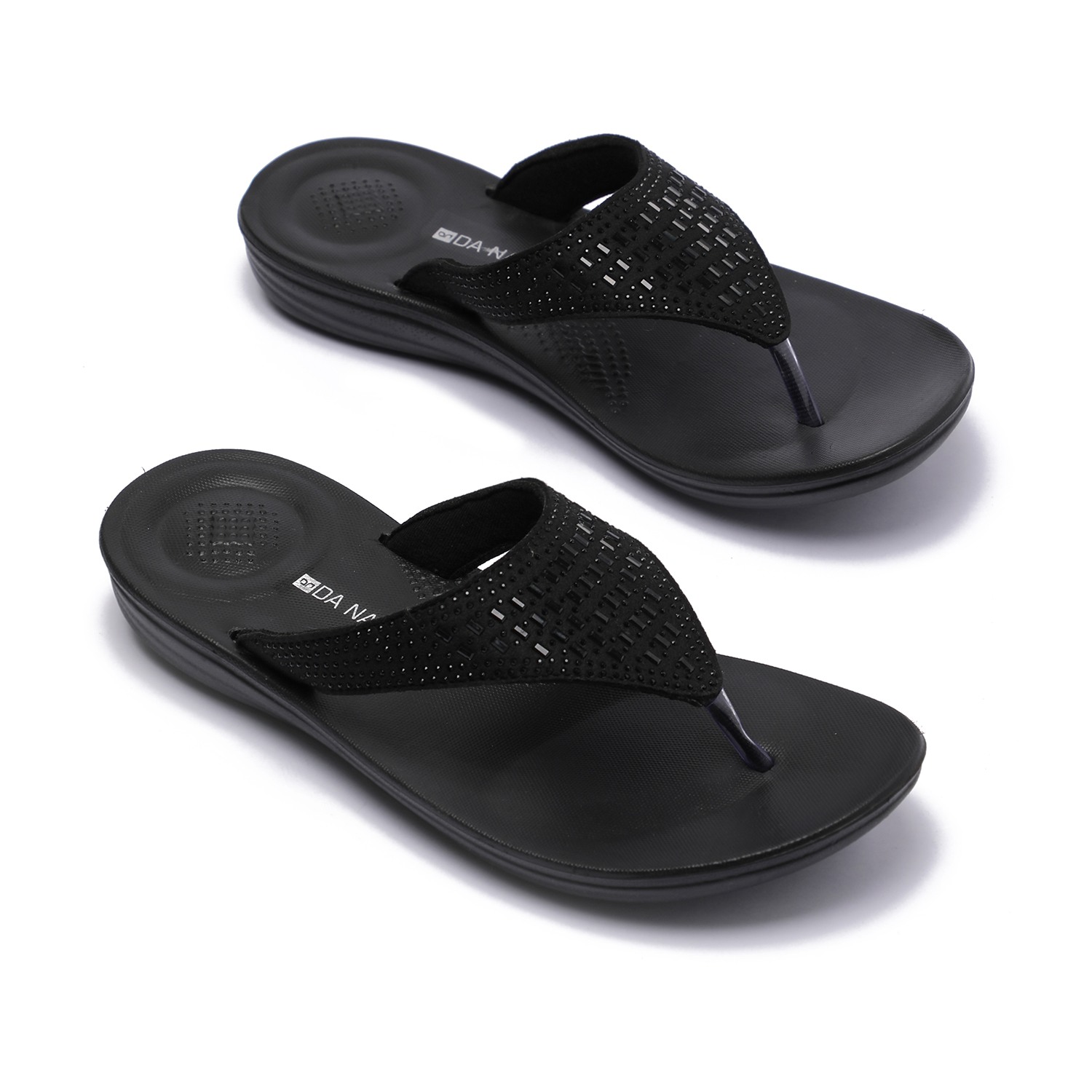 These embellished flip-flops for women offer a perfect blend of style and comfort. With a cushioned footbed and sturdy sole, they provide support and elegance, making them ideal for casual outings.