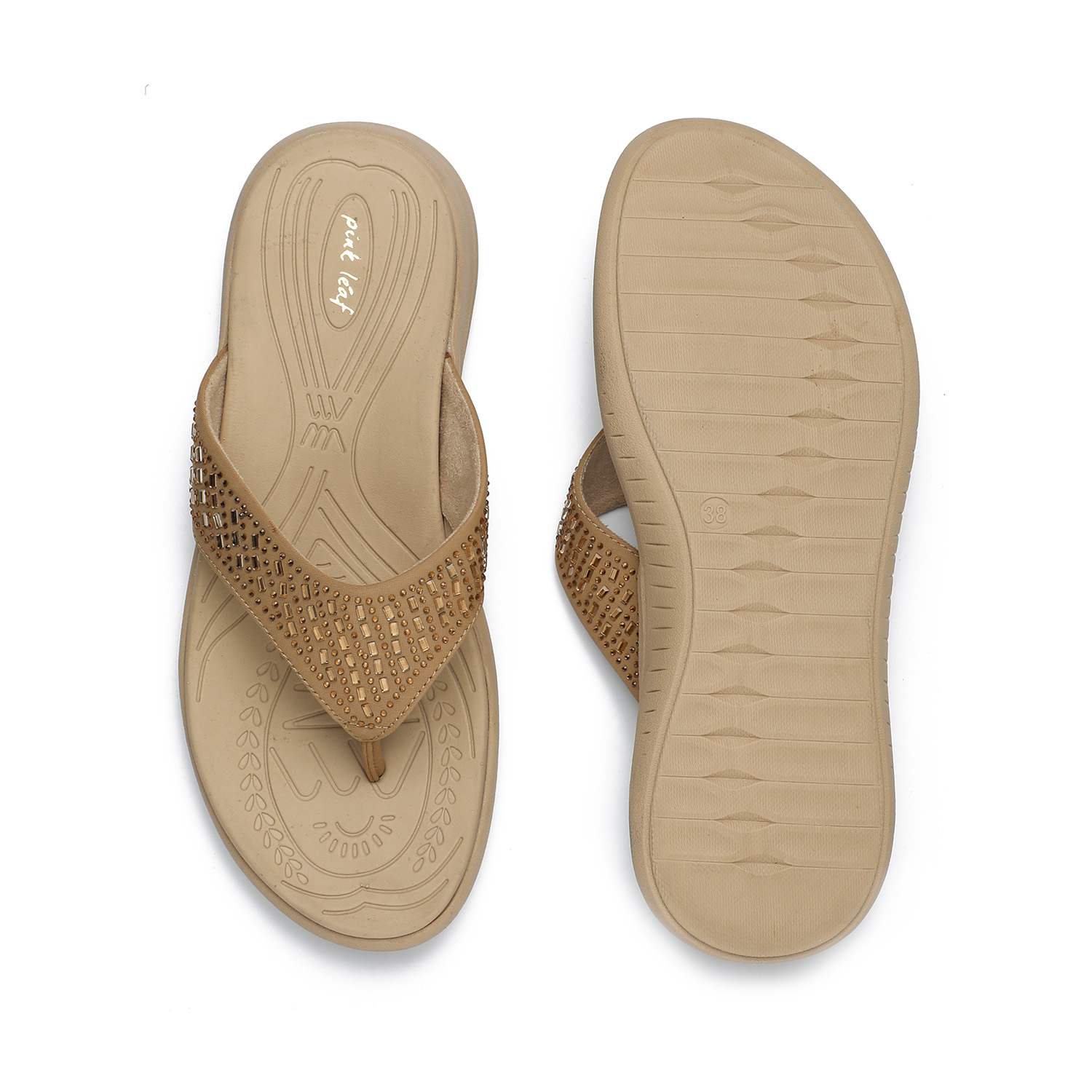 These embellished flip-flops for women offer a perfect blend of style and comfort. With a cushioned footbed and sturdy sole, they provide support and elegance, making them ideal for casual outings.