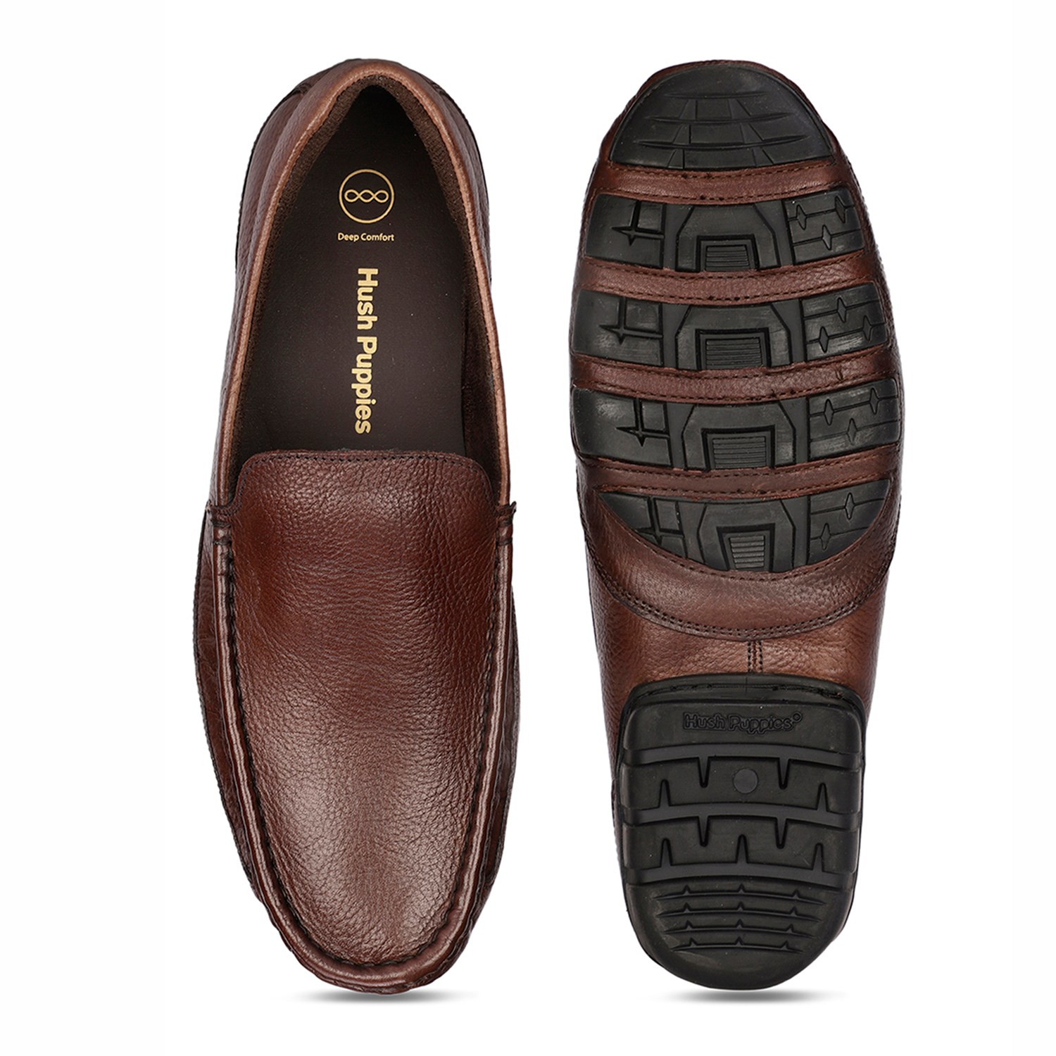 Discover relaxed sophistication with these brown loafers from hush puppies. crafted from premium cow milled leather, they feature a textured design accented with a smooth finish. perfect for casual outings, office wear, or evening gatherings, they offer both comfort and effortless elegance. slip into these versatile shoes and elevate your everyday look.