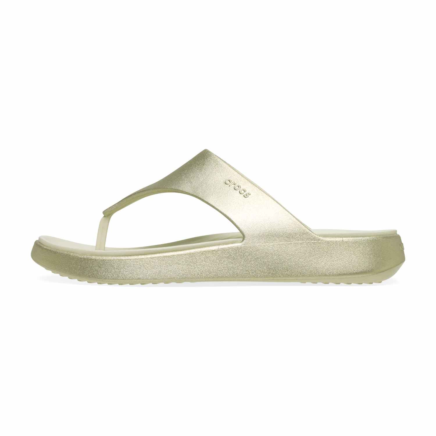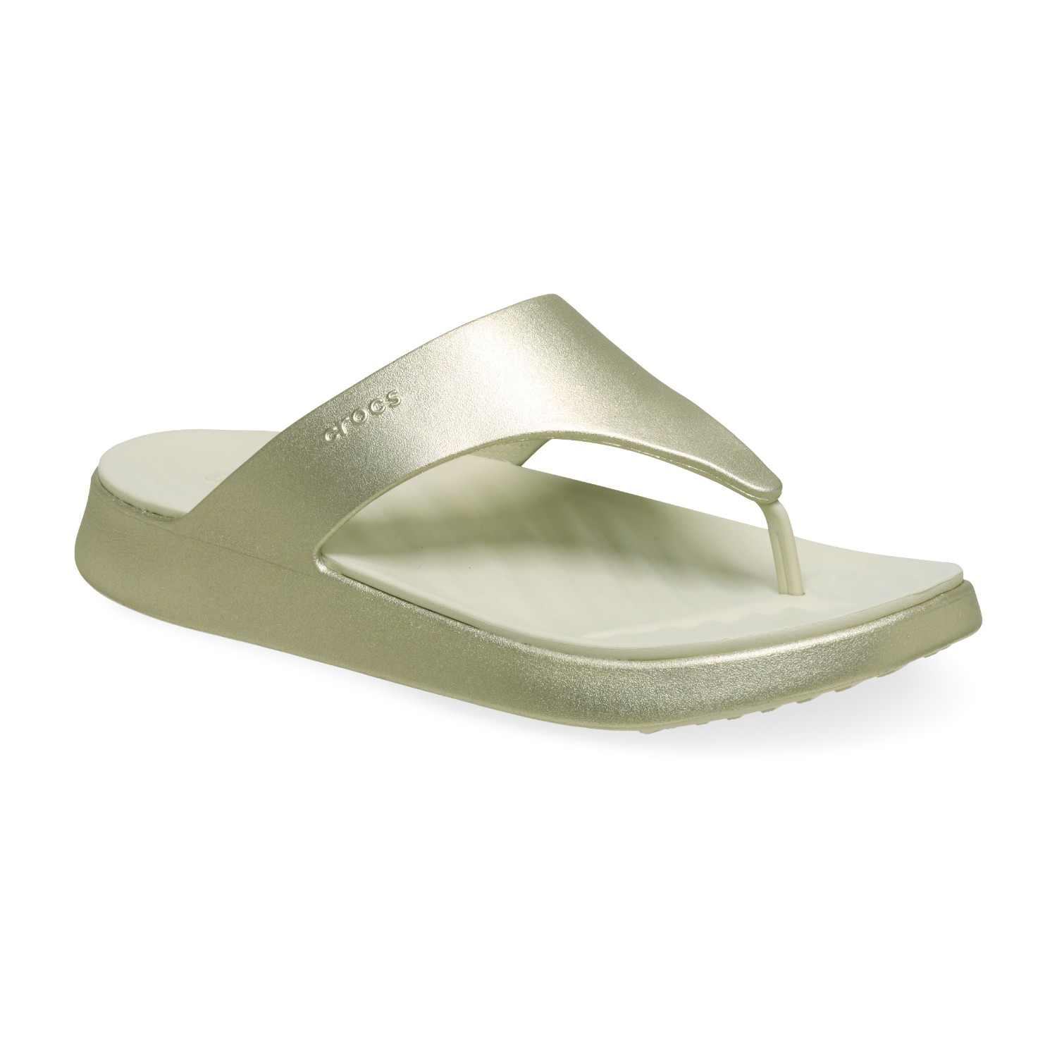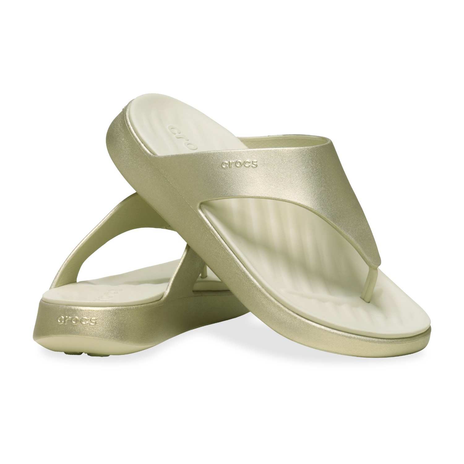 The Crocs Getaway Metallic sandals are a lightweight, flexible, and comfortable footwear option featuring innovative Free Feel Technology uppers and a stylish metallic finish.