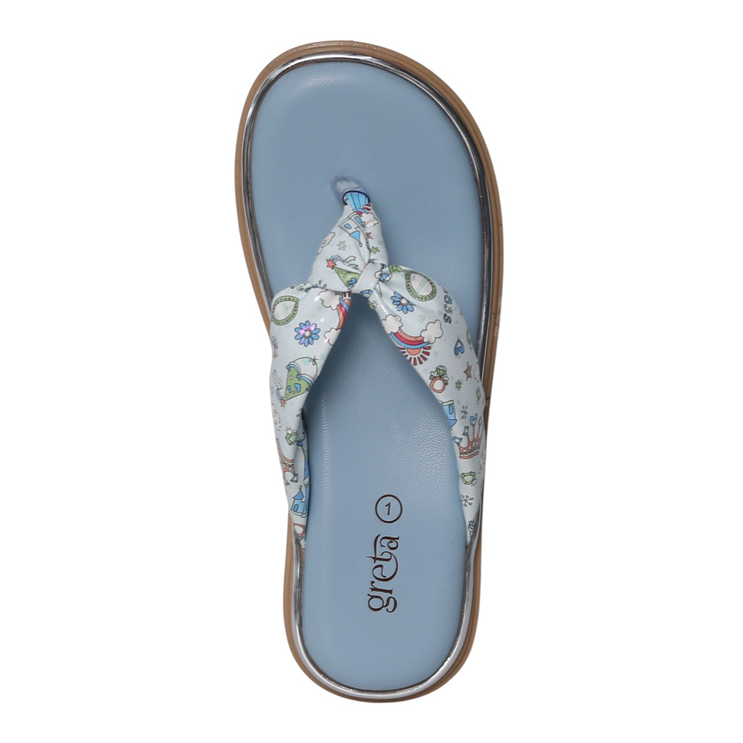 Home / Products / greta / Girls Blue Printed Toe-Post Sandals