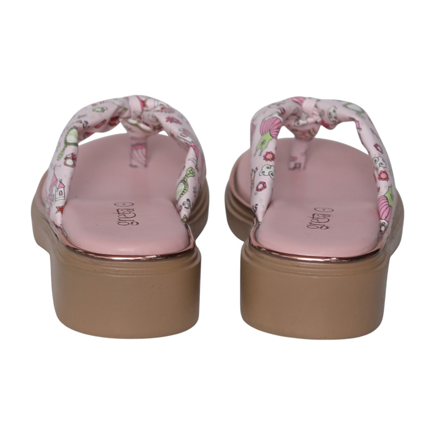 Add a playful touch to your little one’s outfit with these adorable Pink printed toe-post sandals. Designed with a soft cushioned footbed and a lightweight wedge sole, these sandals provide all-day comfort while keeping style in focus. The cute multi-color print on the strap adds a fun, cheerful vibe—perfect for casual outings, summer days, or daily wear. Easy to slip on and designed for a secure fit, these sandals are a must-have for active girls who love both comfort and style.