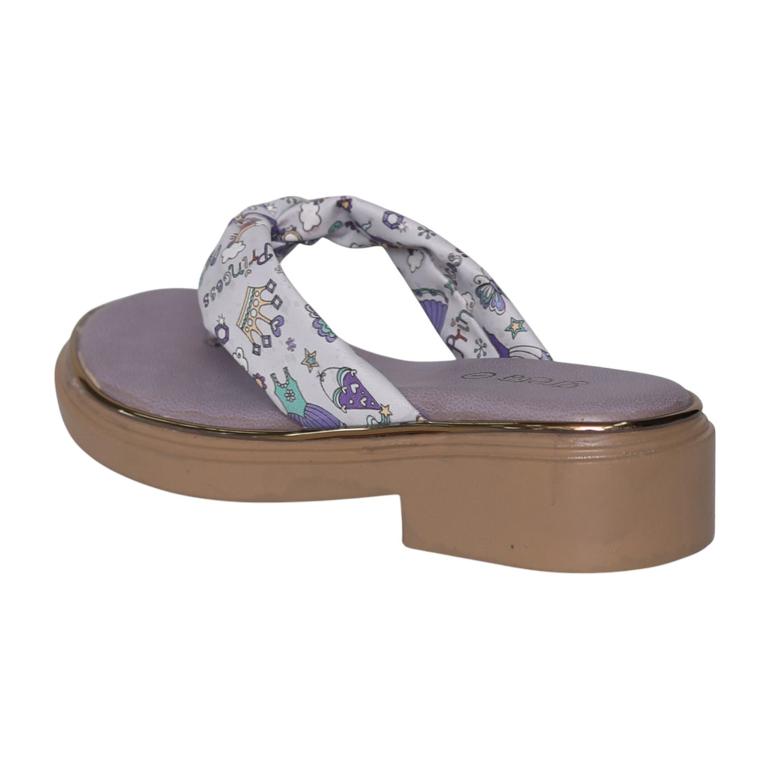 Add a playful touch to your little one’s outfit with these adorable Purple printed toe-post sandals. Designed with a soft cushioned footbed and a lightweight wedge sole, these sandals provide all-day comfort while keeping style in focus. The cute multi-color print on the strap adds a fun, cheerful vibe—perfect for casual outings, summer days, or daily wear. Easy to slip on and designed for a secure fit, these sandals are a must-have for active girls who love both comfort and style.