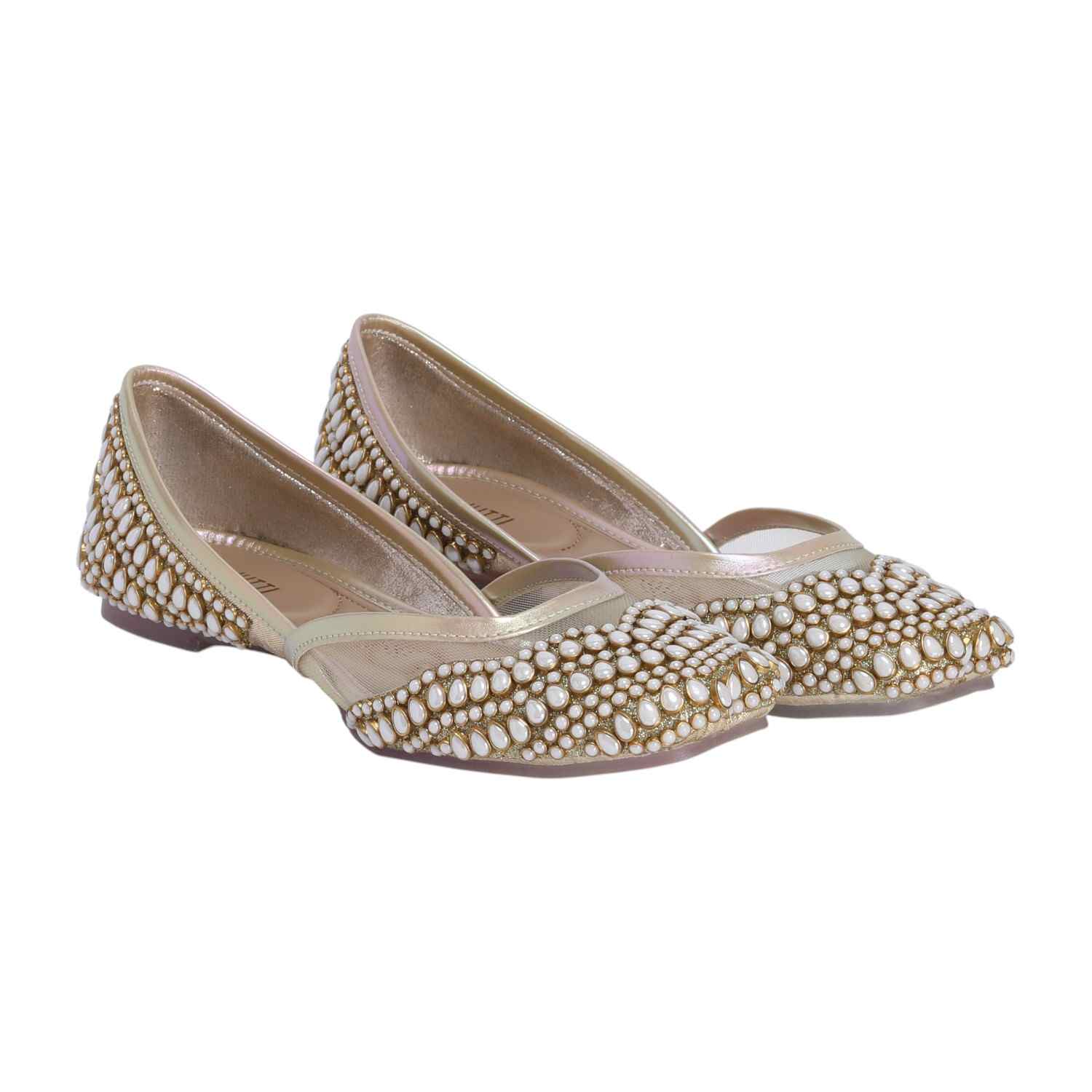 Step into elegance with these handcrafted mojaris, adorned with delicate pearl embellishments.