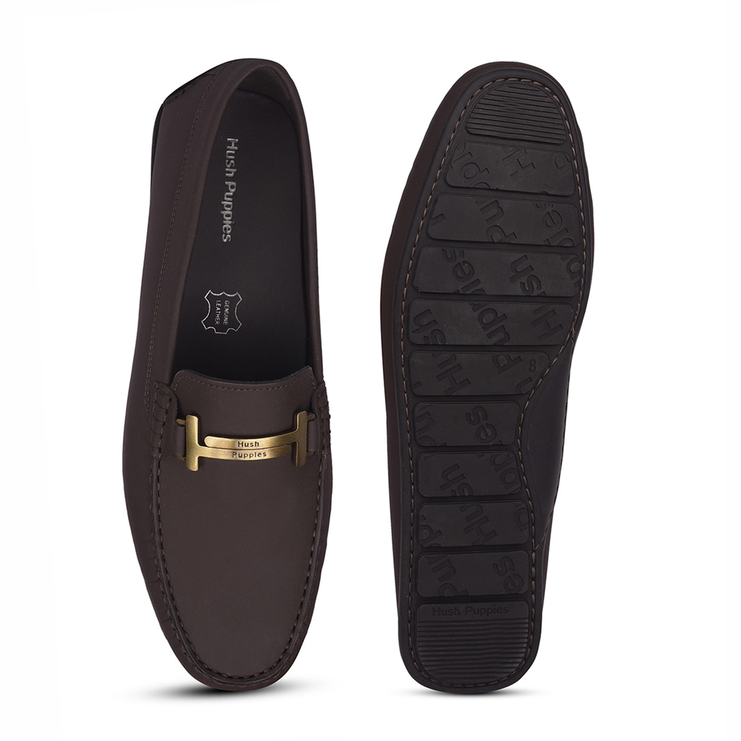 Embrace timeless elegance with these brown loafer shoes from hush puppies. crafted from premium cow nappa leather, they feature a sleek brooch detail for a refined touch. the natural rubber sole ensures durability and comfort, making them ideal for casual outings, office wear, or weekend gatherings. step out with sophistication and ease!