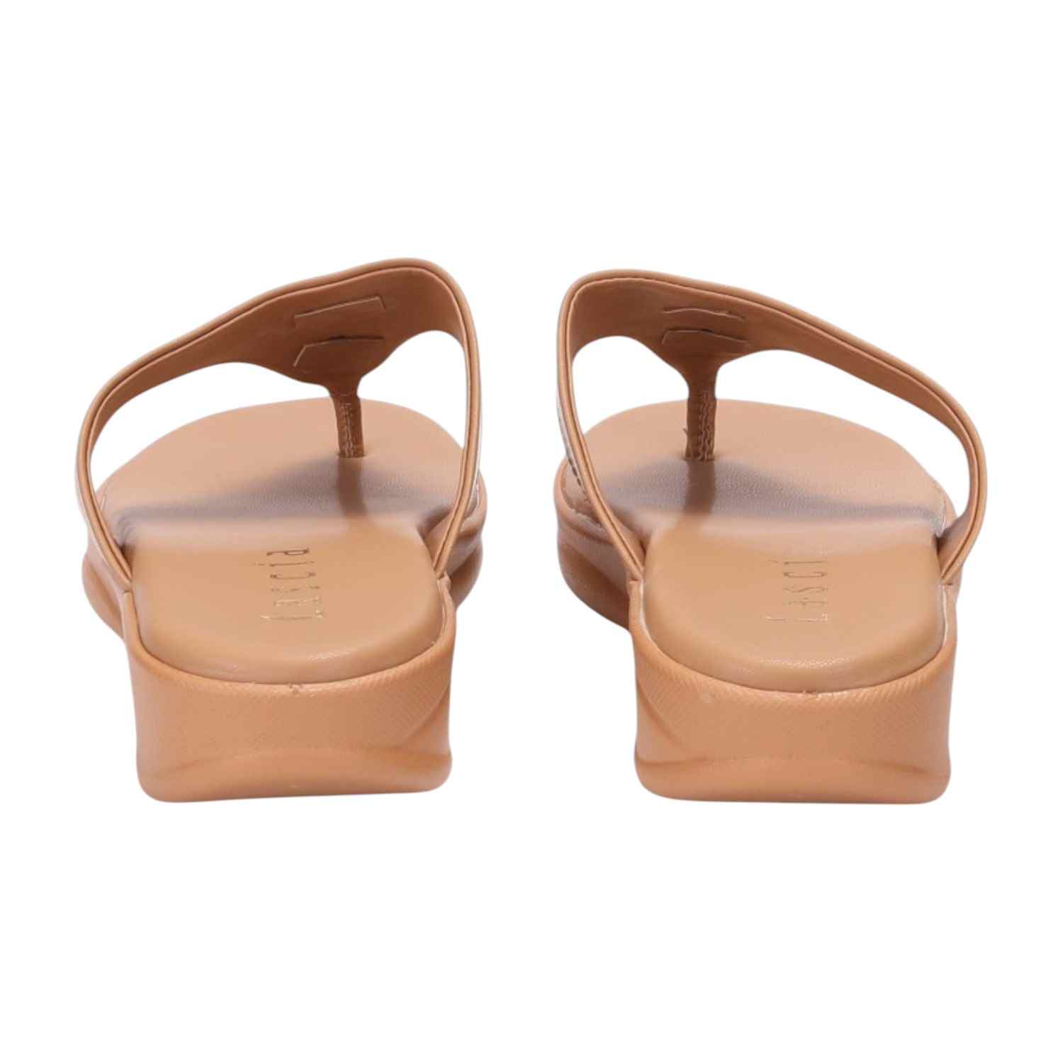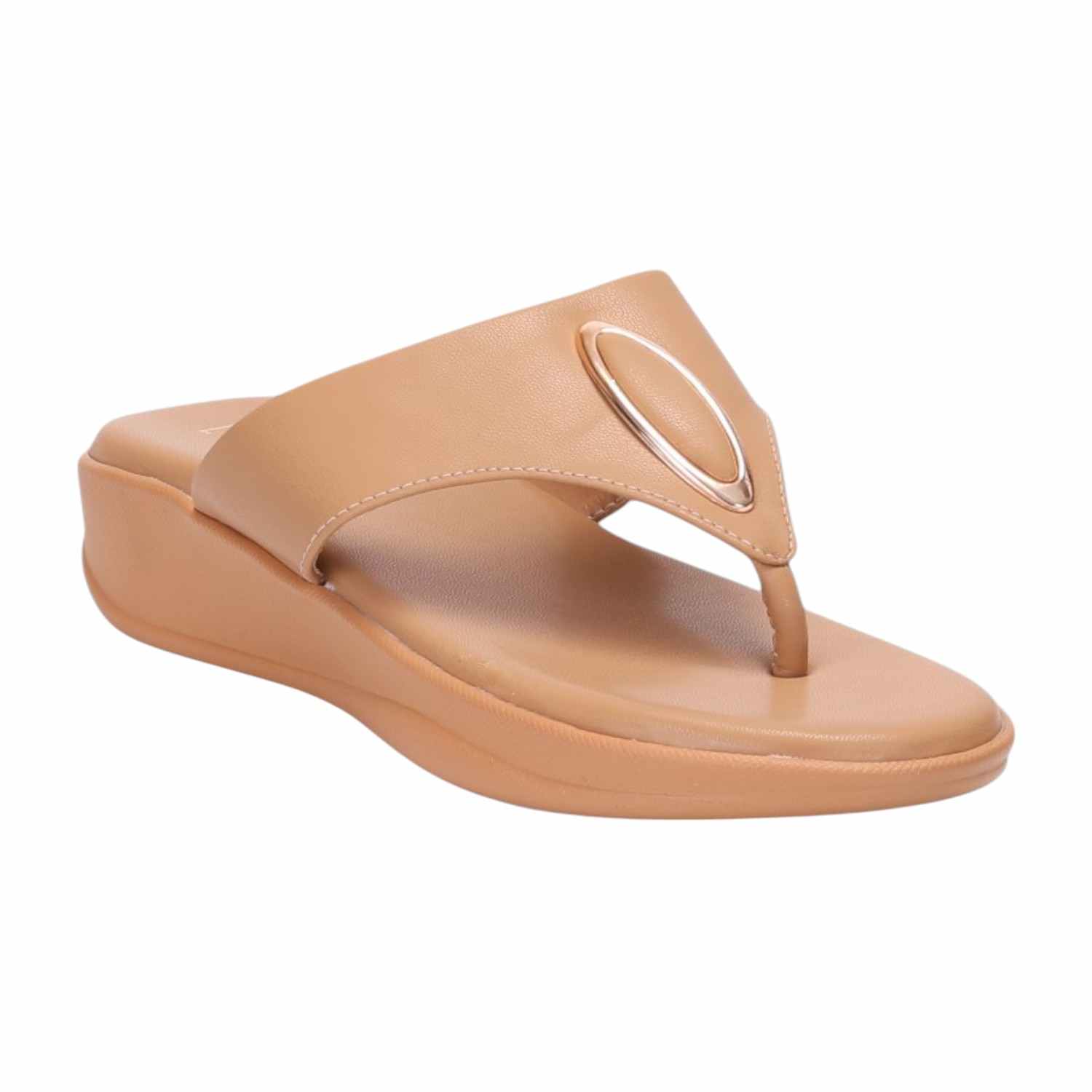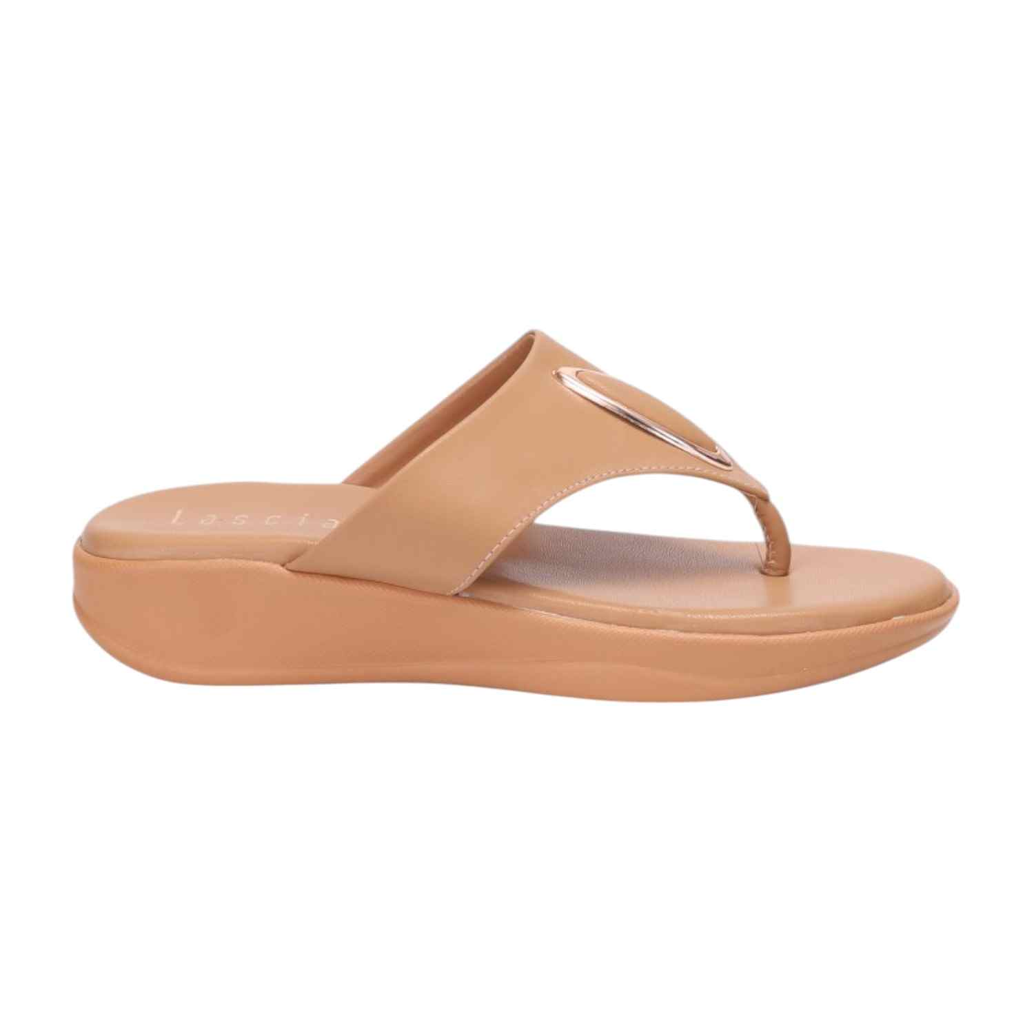 Designed for effortless wear, these chic honey Tan thong slides combine a subtle wedge heel with a distinctive metallic accent. The rich Honey Tan hue pairs beautifully with various ensembles, providing a stylish and comfortable option for your casual footwear needs.