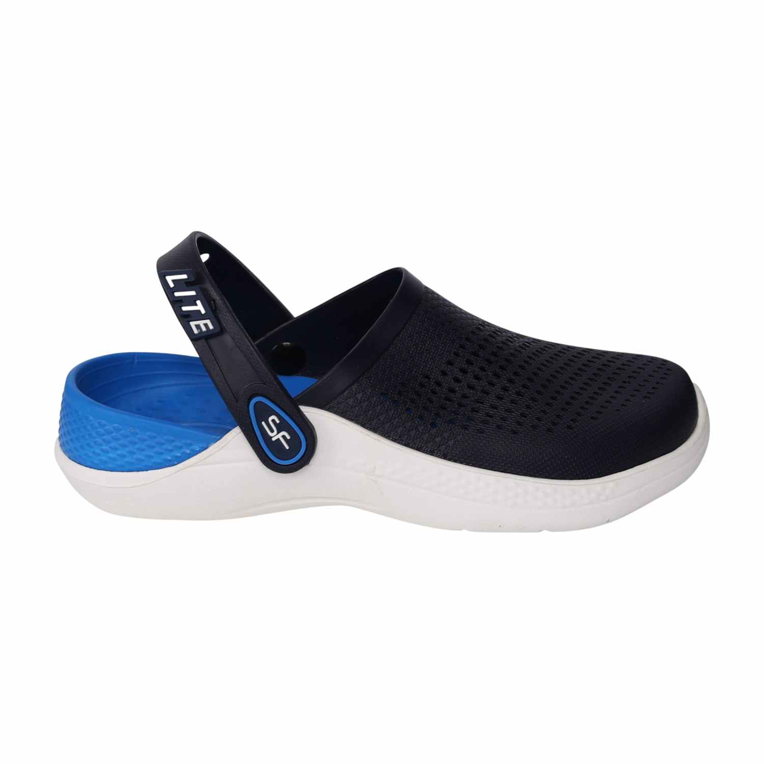 The Marine Vector Clog blends a sleek black upper with a vibrant royal blue interior and a crisp white sole for a dynamic, energetic look. Designed to be exceptionally lightweight and fully ventilated, these clogs maximize airflow and dry quickly. The secure, yet flexible, convertible strap ensures you can quickly transition between a snug fit and a relaxed slip-on style, making them perfect for active days by the water or casual wear.